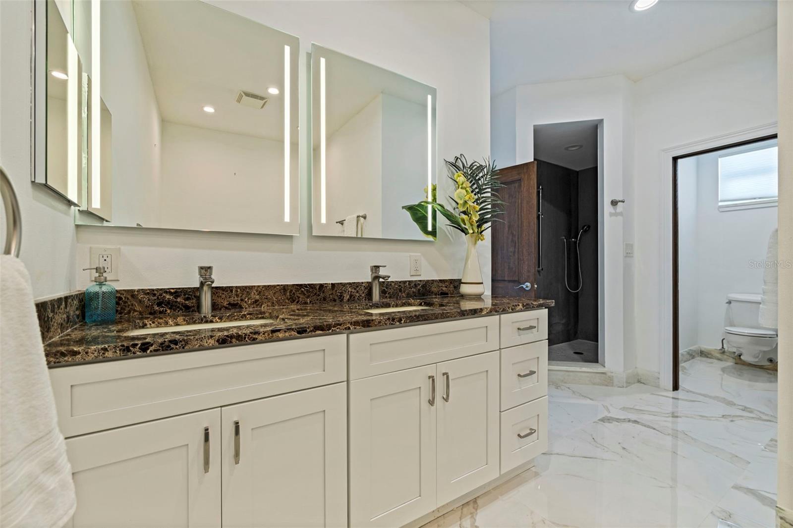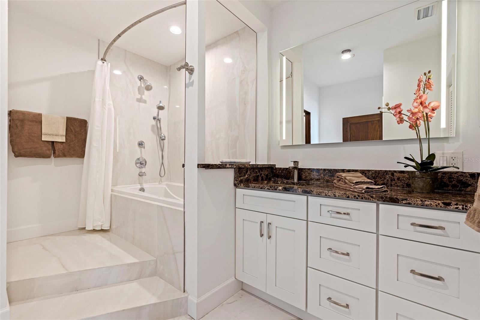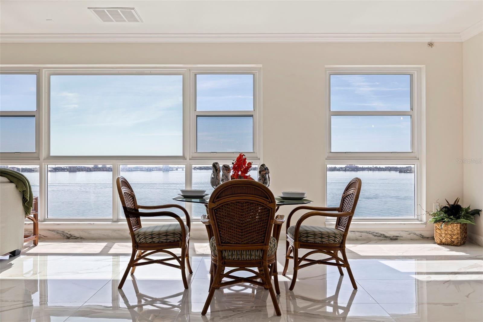 Sweeping, unobstructed views of Boca Ciega Bay define this extraordinary penthouse, with walls of glass capturing shimmering water, dramatic sunrises, and unforgettable sunsets from nearly every room. Rarely found in condo living, this residence includes a true separate one bedroom, one bathroom in law suite with its own private entrance and galley kitchenette, making it ideal for extended family, guests, or a private office or studio. A private keyed elevator delivers you directly to the penthouse lobby and private entry foyer, setting the tone for the level of exclusivity this home offers. Extensively built out in 2021, this nearly 3,500 square foot residence features a main living area with three bedrooms and two and a half baths, plus the separate in law suite, all thoughtfully designed for privacy, flexibility, and comfort. Expansive living and dining areas are oriented to maximize the panoramic bay views and flow seamlessly into the gourmet kitchen, which features leathered granite countertops, abundant cabinetry, a large walk in pantry, beautiful finishes, a dry bar with wine refrigerator, double wall ovens, gas cooktop, and premium stainless appliances. The space is equally suited for everyday living and entertaining on a grand scale. Designer finishes throughout include Italian porcelain flooring, marble baseboards, rich mahogany doors, crown molding, new custom shades, and floor to ceiling windows that fill the home with natural light. The owner’s suite is a private retreat offering tranquil water views and a luxurious bath designed for relaxation. A full size laundry room includes a new washer and dryer. Significant recent upgrades add peace of mind and value, including two brand new HVAC systems, new storm shutters on the water side, a new roof completed within the last six months, and two newly built covered carports completed within the past year. Town Shores offers an active waterfront lifestyle with outstanding amenities including four heated pools, tennis courts, bocce ball, shuffleboard, a fully equipped fitness center, his and hers saunas, and a large clubhouse with billiards and a second story ballroom. A full calendar of social events creates a vibrant sense of community. Just outside the community, the Gulfport Art District offers award winning restaurants, eclectic shops, galleries, studios, a dog park, recreation center, performance theater, and the historic Gulfport Casino. Pasadena Country Club is nearby for golf enthusiasts, Tampa International Airport is approximately thirty minutes away, and the beautiful Gulf beaches of St. Pete Beach, Treasure Island, and Fort De Soto are only minutes from your door.