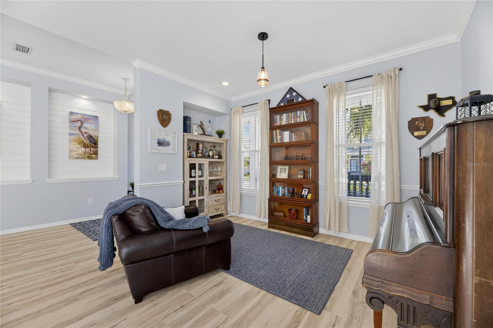 5240 Brighton Shore Drive, Apollo Beach, FL | 4 Bedrooms | 3 Bathrooms | 3,049 Sq Ft | Single-Story | Pool & Spa | Gated MiraBay 5240 Brighton Shore Drive is a single-story, four-bedroom, three-bathroom pool home offering 3,049 square feet of living space, located in the gated waterfront community of MiraBay in Apollo Beach. The home includes a fenced backyard, a two-car garage, and a functional floorplan designed for everyday living and entertaining. Inside luxury vinyl flooring runs throughout complimented by crown molding, tray ceilings, recessed lighting, arched doorways, and custom art niches. The home features a natural gas fireplace, built-in mudroom, ceiling fans, a neutral finishes, attic flooring for added storage, and a whole home water softener and filtration system. The kitchen is a standout featuring quartz countertops, 42-inch upper cabinets with crown molding, new stainless steel appliances, a built-in oven and microwave, natural gas cooktop, wine refrigerator, French-door refrigerator, herringbone backsplash, large basin sink, and a center island with breakfast bar seating. The kitchen opens to the main living areas. Smart-home features include keypad entry, a WiFi-enabled garage door opener, WifFi-enabled thermostat with multi-zone HVAC, Ring doorbell, WiFi irrigation system, and integrated interior and exterior speakers. The primary suite offers a private retreat with a walk-in closet, dual split-sink vanities, a freestanding soaking tub, and a frameless glass shower with a rain shower head and full tile surround. Outdoor living is highlighted by a covered and screened patio with ceiling fans and space for a mounted television, overlooking a pavered pool and heated spa. The pool equipment was fully replaced and the pool was resurfaced in December 2024. The backyard is fully fenced, and additional exterior features include outdoor lighting and hurricane shutters. Major system updates include a roof replacement in August 2023 and replacement of both HVAC units in July 2024. MiraBay offers gated access and amenities including two heated community pools, a two-story 24-hour fitness center, clubhouse, tennis and pickleball courts, walking and biking trails, and golf-cart access to MiraBay Village shopping and dining.