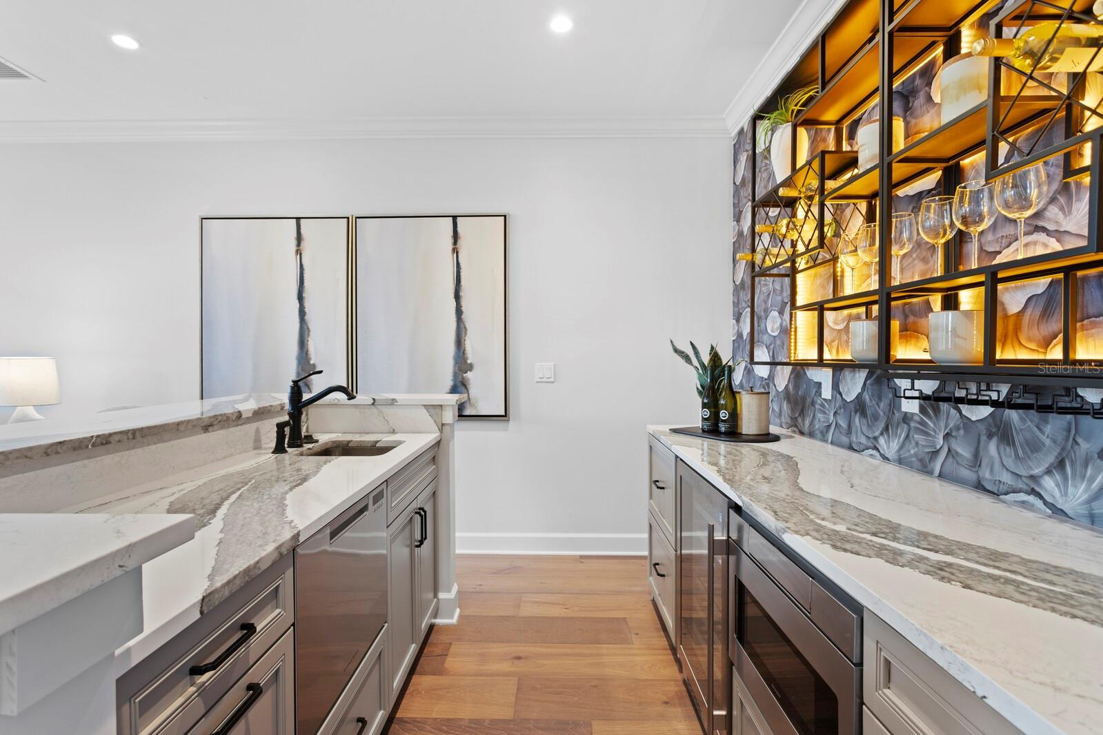 - Bar Fridge, Dishwasher, Disposal, Exhaust Fan, Gas Water Heater, Microwave, Range, Range Hood, Refrigerator, Tankless Water Heater, Wine Refrigerator