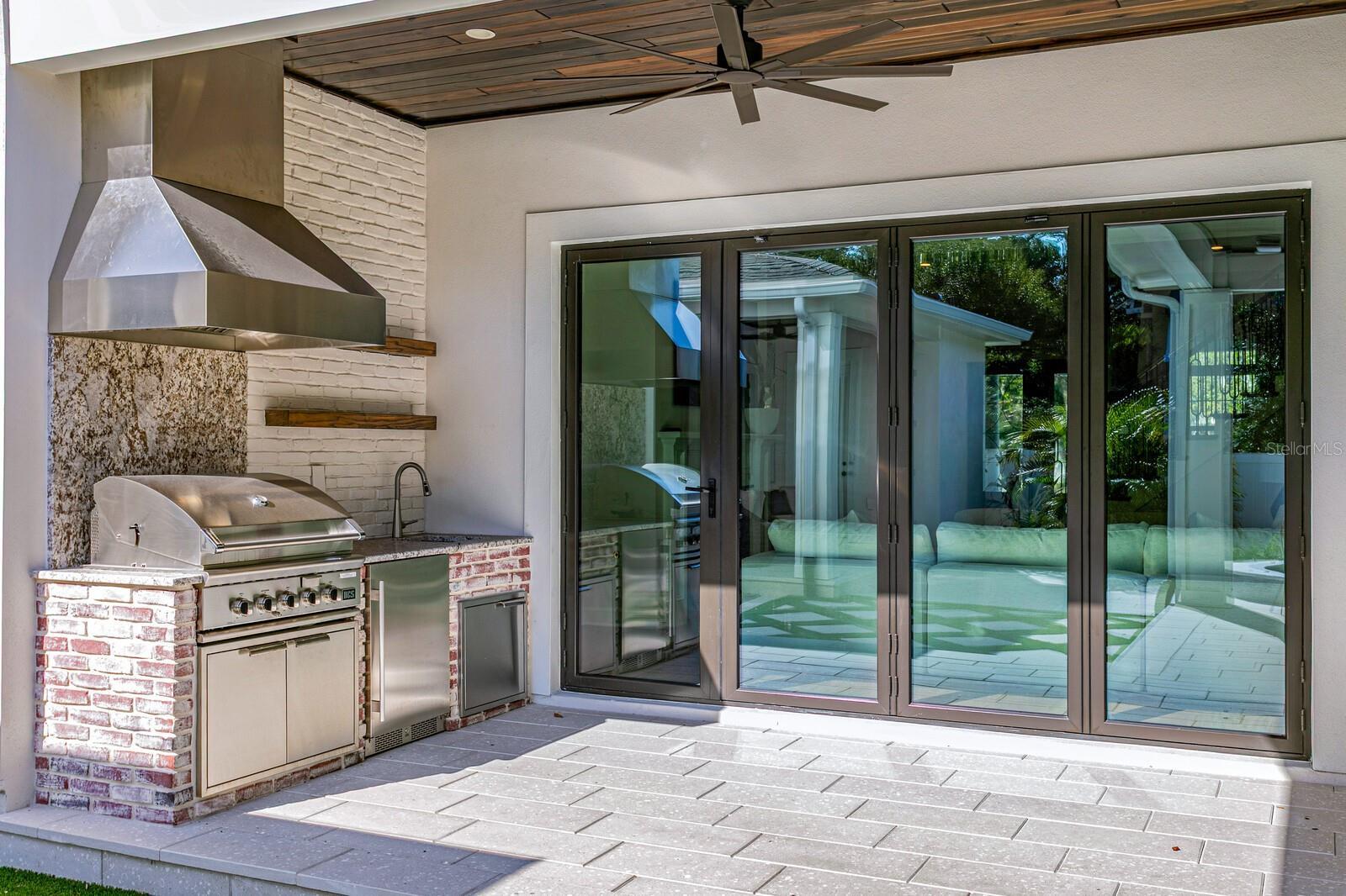 - Lighting, Outdoor Grill, Outdoor Kitchen, Rain Gutters, Sidewalk, Sliding Doors, Sprinkler Metered