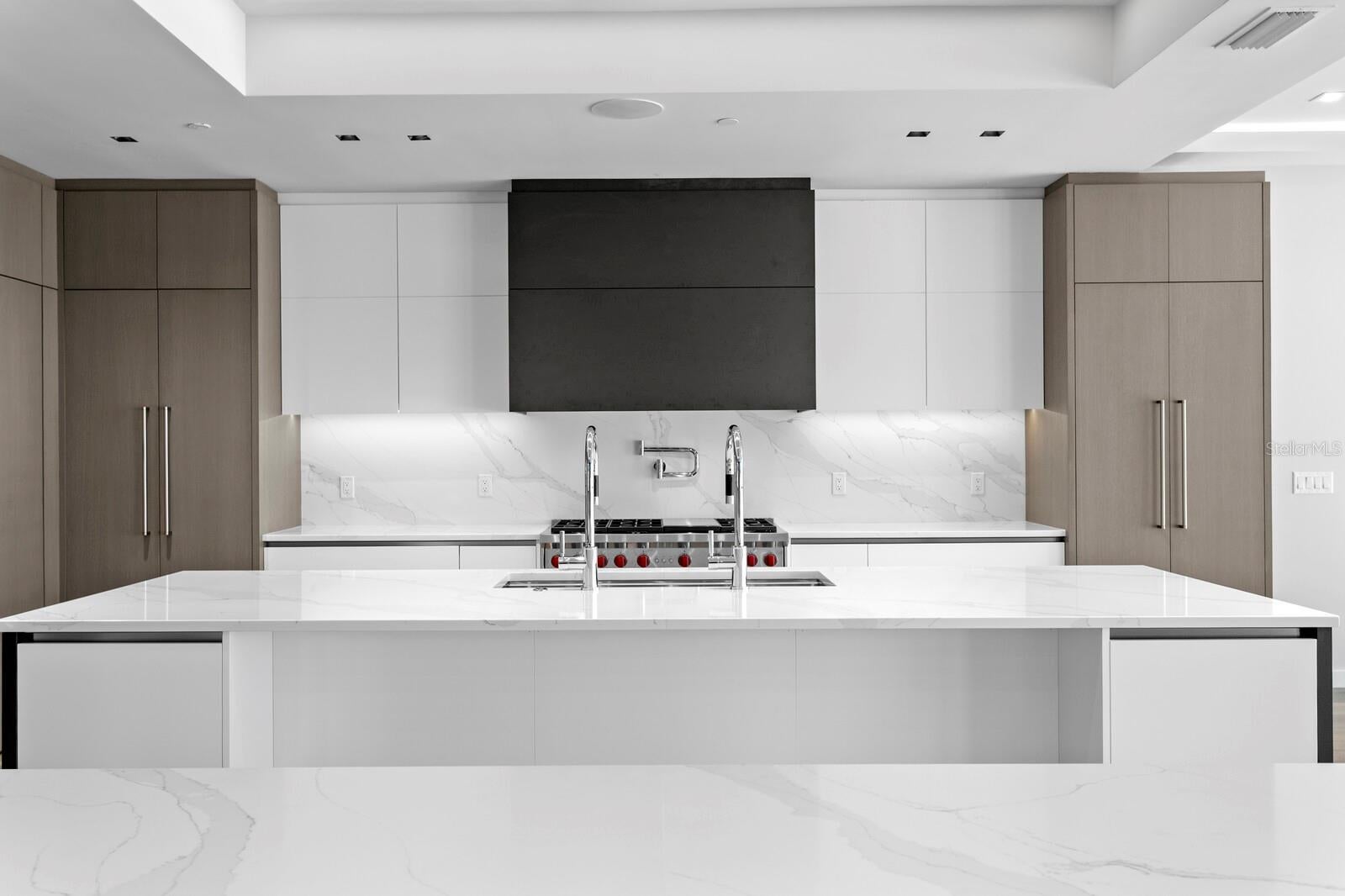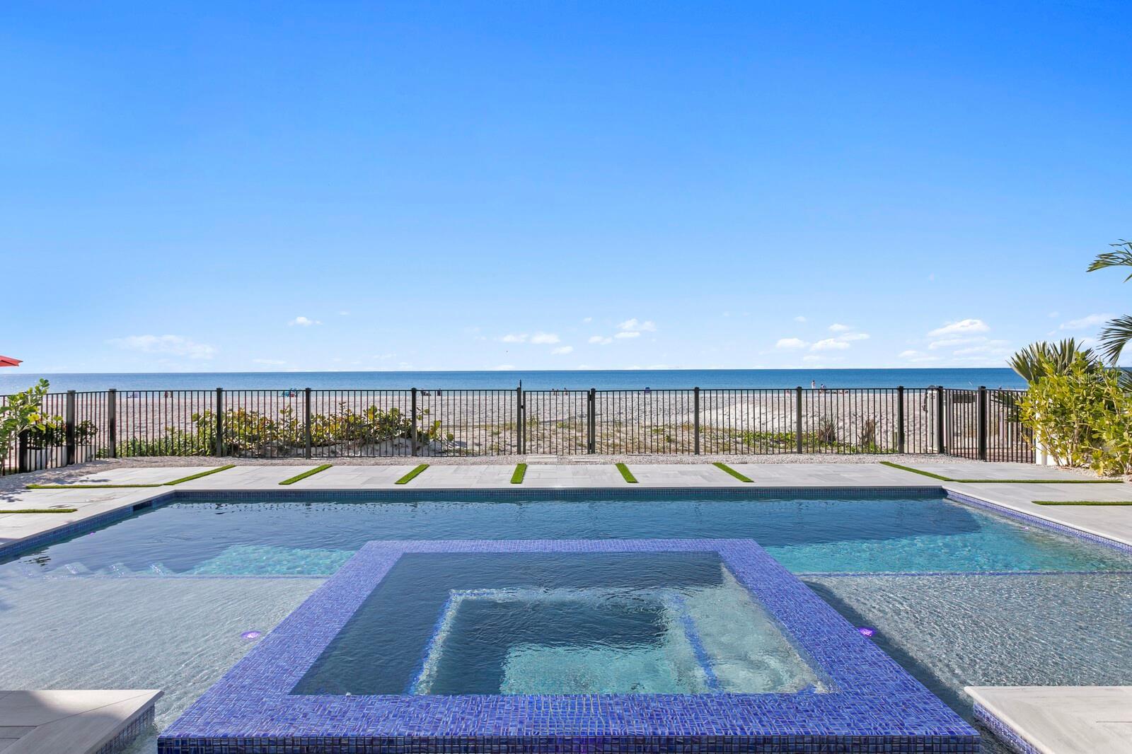 Designed for elevated coastal living, this exceptional New Construction by Tulia Home Designs delivers modern beachfront luxury. An artful blend of architectural distinction, state-of-the-art design, and modern innovation provides the ultimate in beachfront living. With 8,042 AC sq ft combined, the gated estate includes a Main House with 7,000 AC sq ft and an attached Guest House with 1,042 AC sq ft, each with its own private entrance (per builder plan). The first level provides flexible spaces for living and entertaining with an expansive game room and full entertaining bar, sweeping beach views and expansive sliders to the pool. The first level continues with a private office, gym with sauna, full bath and guest bedroom, with elevator access to the remaining floors. The second living level boasts a light-filled living area, highlighted by a striking fireplace feature and framed by magnificent Gulf beach views that create a breathtaking backdrop for luxury living and entertaining. A custom floating staircase and glass-enclosed wine cellar make an immediate statement of refined design, while wall-to-wall glass sliders assure panoramic beach views at every turn. Designed for elevated entertaining experiences, a sleek dual-island chef’s kitchen showcases Wolf and Miele® gas appliances, custom cabinetry, a formal dining room and statement lighting. Purposeful design on the second level includes a state-of-the-art home theater with full surround sound and wet bar, library, ensuite guest bedroom with terrace. The gracious primary suite is a tranquil escape, where sweeping beach views greet you through wall-to-wall glass doors that open to a private terrace. Appointments include a morning bar, an opulent custom closet/dressing room, and a luxuriant spa-inspired bath with deep soaking tub and refined finishes. Outdoors, a true oasis and your private coastal escape provides the ultimate in Florida coastal living with a custom 15’ x 30’ pool, floating spa and sun deck. The pinnacle of this beachfront lifestyle is found on the rooftop terrace where you’ll find unparalleled vistas of sea and sky for unforgettable entertaining. The two-level attached guest space offers a living area and kitchenette, along with a bedroom, bath, laundry room, and wrap-around terrace. The attached guesthouse offers a living area, kitchen, 1 ensuite bedroom, a powder room, x space, and rooftop terrace. Construction features include pilings, concrete block exterior walls and impact-rated windows and doors. Smart living features include an Elan home audio system. Completing this statement of distinction is a four-car garage, concrete drive and pool deck with artificial turf inlays, and meticulous attention to detail throughout—delivering a Gulf front estate that provides elevated luxury and coastal refinement. Located in a golf-cart-friendly coastal community with nearby parks, dining, shopping, an art center, library and convenient access to regional airports. Short-term rental use may be permitted pursuant to local regulations; buyer to independently verify all restrictions. Boat Dock located across the street is currently in permitting status; buyer to verify permit approval and final specifications.