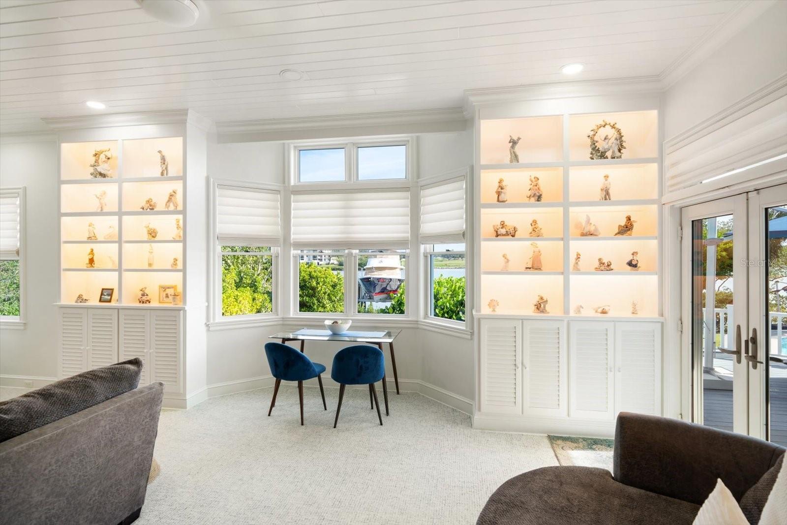 Florida luxury living reaches its pinnacle behind the private, guarded gates of coveted Belleview Island in beautiful Belleair, where this extensively remodeled and thoughtfully renovated residence makes a striking first impression with exceptional curb appeal and a paver driveway welcoming you home. Perfectly positioned to capture both breathtaking sunrises and glowing sunsets, the home is wrapped in balconies that frame sweeping water, golf course, and tropical views at every turn. Inside, an open and inviting interior unfolds in soothing neutral tones, enhanced by custom ceilings, detailed moldings, and an abundance of natural light. The desirable floor plan offers a formal living room anchored by an electric fireplace for cozy evenings, while the dining room is adorned with custom built-ins and showcases panoramic Intracoastal views stretching across to the bluffs of Belleair. A lower-level guest bedroom enjoys serene pond views and a private ensuite with a quartz vanity, offering comfort and privacy for visitors. The spacious family room features built-ins, a gas fireplace, and stunning water views, flowing seamlessly into a truly dream-worthy kitchen complete with a quartz island with seating, top-of-the-line stainless steel appliances including a natural gas cooktop, Viking refrigerator, and two dishwashers, plus a private desk overlooking lush tropical foliage. A generous laundry room with sink, abundant storage, dumbwaiter, and access to a screened “catio” adds both convenience and charm. Upstairs, the primary suite is a peaceful retreat with spectacular Belleair Country Club golf course views and sunrises over the Intracoastal enjoyed right from bed, complemented by a huge custom closet, electric blinds, and a spa-like ensuite featuring custom tile, a double sink vanity, walk-in shower, and a luxurious soaking tub. Additional bedrooms are equally well appointed, each offering its own unique luxury, from tranquil pond views to pool and Intracoastal vistas, ensuring family and guests enjoy both privacy and refined comfort. A versatile bonus room with pond views and a private balcony provides the perfect space for a home office or creative studio. The downstairs uninsurable area is designed for enjoyment and flexibility with a theatre and entertainment space, room for three cars and a golf cart, and ample space for a home gym, while a brand-new three-car garage with split A/C brings total covered parking to six vehicles. Outdoors, a resort-style setting awaits with a newly resurfaced pool surround, a 2022 seawall, and a dock inviting endless days soaking up the Florida sunshine on the water. Completing this exceptional offering are a whole-house generator, new outdoor lighting and irrigation, a comprehensive security system with cameras, impact windows and an electric car charger, all just moments from Belleair Country Club, The Pelican Golf Club, local restaurants, boutique shopping, two airports, and the sparkling beaches that make this area so sought after.