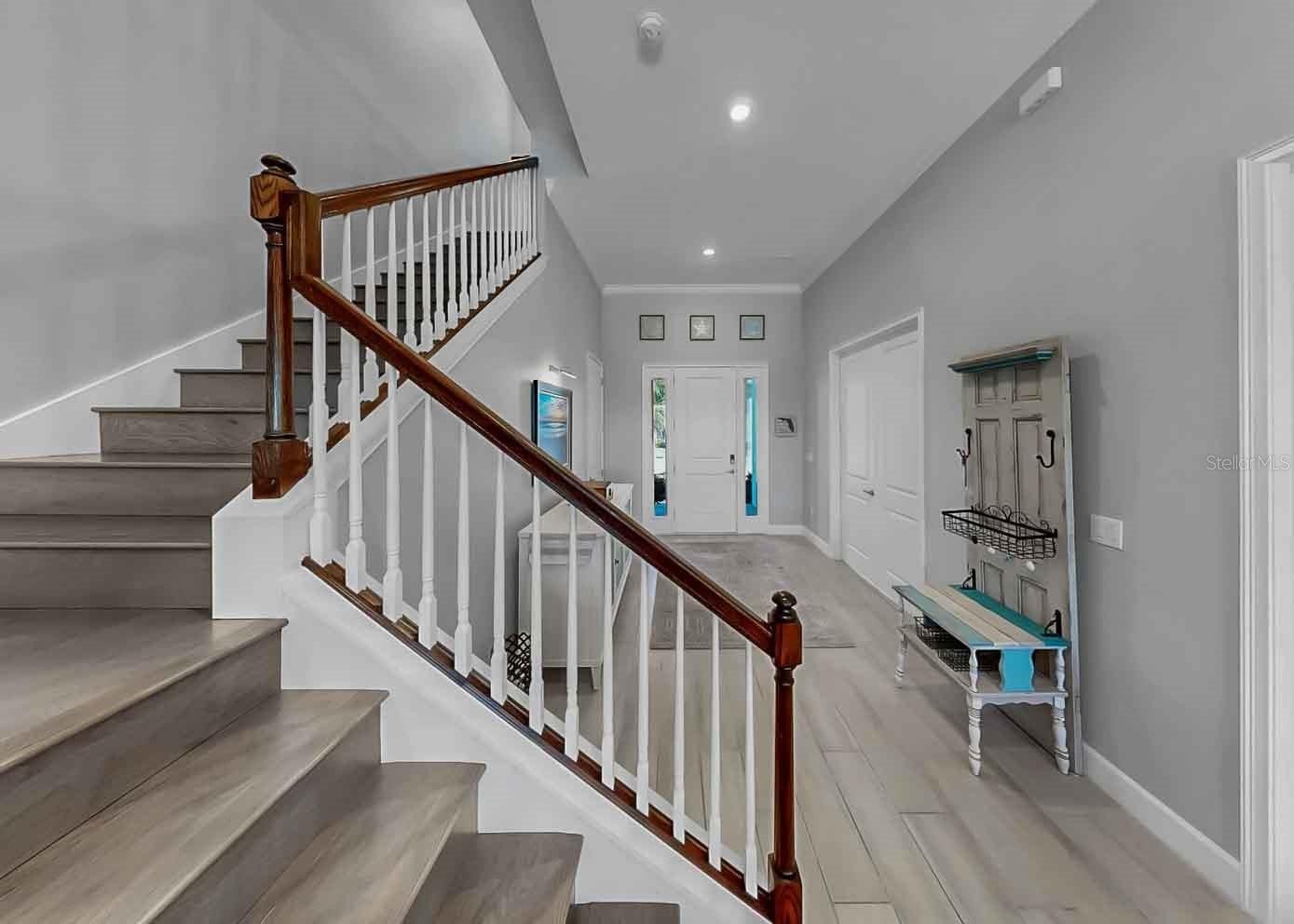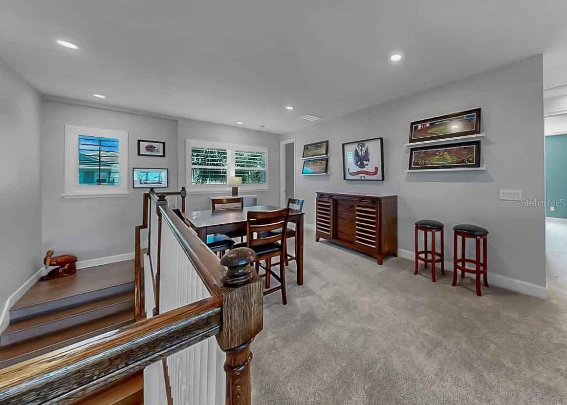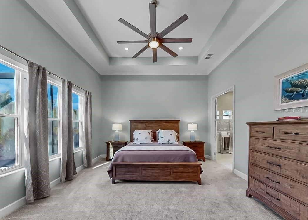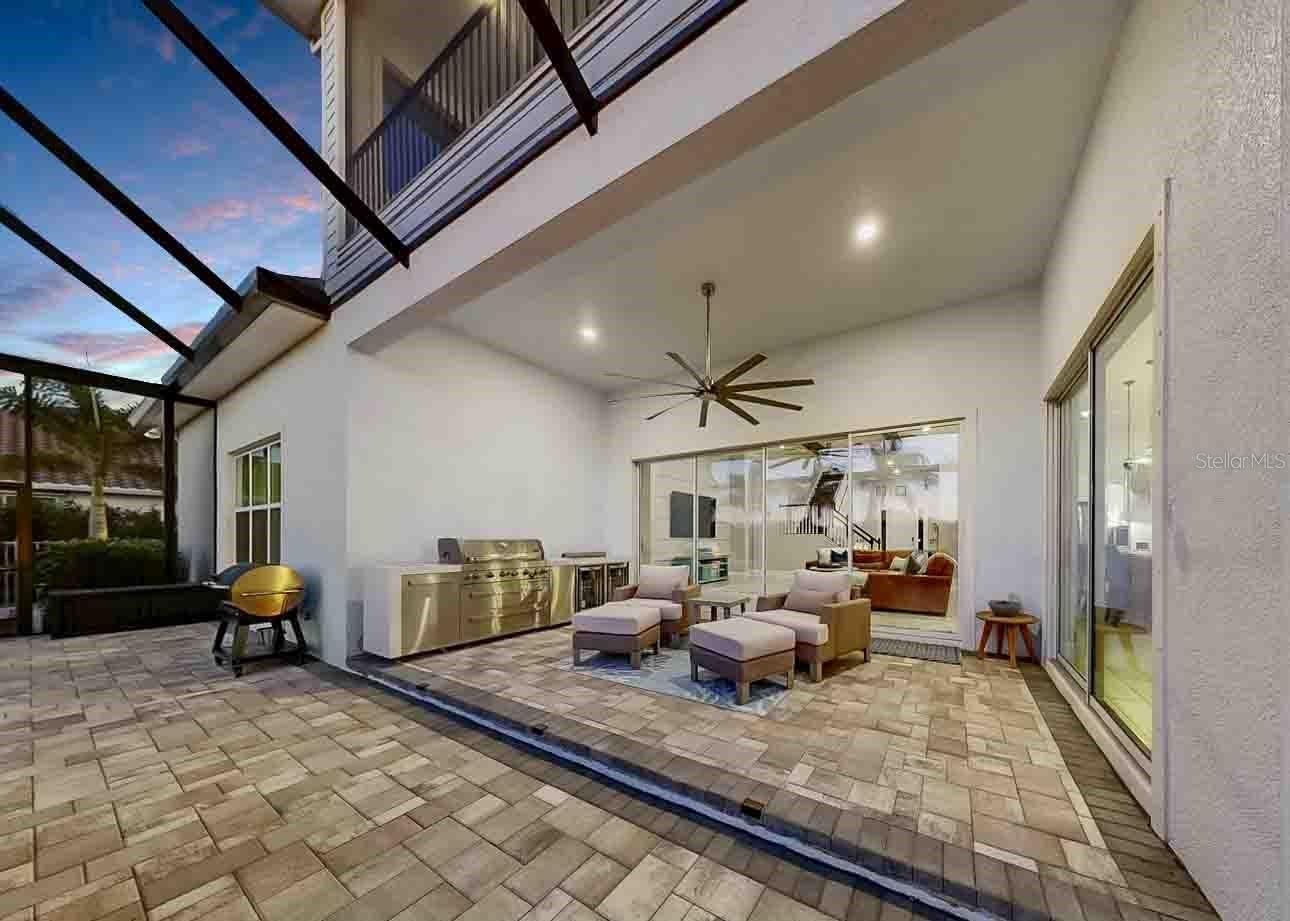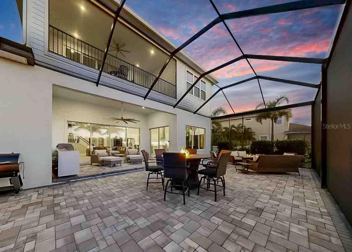 **ASSUMABLE MORTGAGE MAY BE AVAILABLE, SUBJECT TO LENDER APPROVAL AND BUYER QUALIFICATION** Welcome to refined coastal living in the beautiful, resort-style community of MiraBay, nestled in Bay Estates Preserve. This exceptional 4-bedroom, 4.5-bath residence, situated on an oversized lot, blends timeless design with modern luxury, offering an elevated Florida lifestyle in one of Tampa Bay’s most sought-after communities. The primary retreat is conveniently located on the main floor, while two of the three upstairs bedrooms are ensuite, with an additional bathroom near the bonus room and remaining bedroom, providing flexibility and comfort for family and guests. Enjoy spectacular sunsets from the expansive second-story screened balcony, featuring sweeping views of Tampa Bay and the downtown St. Petersburg skyline. Inside, the home showcases extensive upgrades and custom details throughout. Soaring ceilings reach 11’–12’ on the first floor and 9’ on the second, complemented by elegant 5 1/4" crown molding in the foyer, dining room, kitchen, family room, and primary retreat. Custom wood beams, designer wall accents, upgraded flooring, and enhanced lighting add warmth and architectural sophistication to every space. The gourmet kitchen is a true showpiece, featuring upgraded quartz countertops, wood cabinetry, stainless steel appliances, a double wall oven, built-in microwave, energy-efficient dishwasher, and a 36" gas cooktop with wall-mounted hood and pot filler, ideal for both everyday living and entertaining. Indoor and outdoor living blend seamlessly with an oversized screened lanai with outdoor kitchen, perfect for Florida living. Enjoy looking at the extensive upgraded landscaping accented by low-voltage landscape lighting. Additional highlights include plantation shutters, motorized shades, upgraded lighting throughout, and a dedicated Christmas light package with timer for effortless seasonal décor. This smart home is equipped with a Z-Wave automation package, central smart hub, Wi-Fi and remote thermostat access, a 16-SEER A/C system, and a tankless gas water heater. The exterior is equally impressive with a brick-paved driveway and entry patio, along with a classic barreled tile roof. Residents enjoy resort-style amenities including a clubhouse, café, resort-style pool, fitness center, pickleball, basketball, and tennis courts. Embrace the coastal lifestyle with community access to kayaking, paddleboarding, and fishing. A rare opportunity to own a private, beautifully upgraded home in one of Mirabay’s most desirable settings, where nature, luxury, and an active waterfront lifestyle come together seamlessly.
