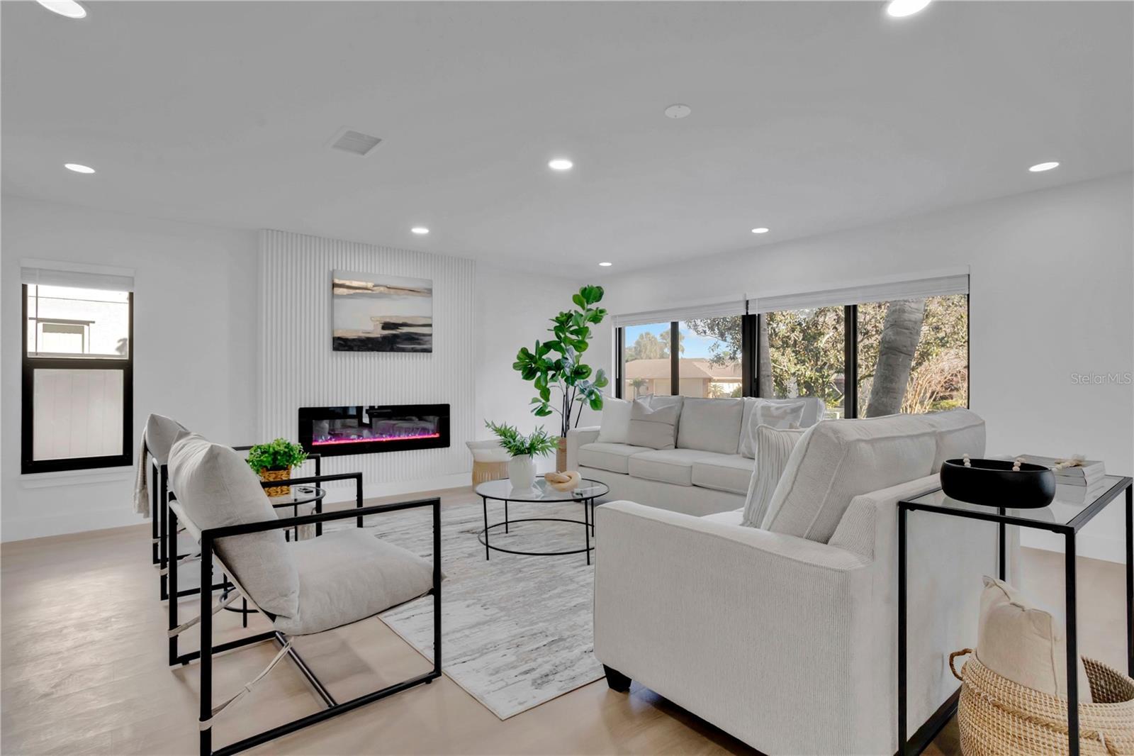 **Seller is offering up to $15,000 towards rate buydown or closing cost assistance with an acceptable offer.** Prepare to be impressed by this fully remodeled Clearwater gem, ideally located off Rollingwood and Landmark Drive. From the moment you arrive, the curb appeal and prime corner-lot setting set the tone. Situated on a fenced ¼-acre cul-de-sac lot, this home offers space, privacy, and a location that immediately excites buyers. The updated French entry doors welcome you into a home that truly opens up. Inside, expansive ceilings and a wide-open layout create an immediate sense of light and flow. The oversized dining room makes a statement, complemented by knockdown texture throughout and energy-efficient LED lighting that enhances the modern design. The kitchen anchors the home, seamlessly connecting to the living area-perfect for entertaining and everyday living. Featuring all-new two-tone cabinetry with abundant pull-out drawers, this space is designed to satisfy the home chef. Quartz countertops, stainless steel appliances, and a sleek contemporary backsplash complete the look. The living room is elevated by a custom built-in entertainment center with an electric fireplace and dedicated space for home entertainment. The primary suite offers tranquil poolside views and a stunning, fully updated en-suite bathroom with a glass-enclosed shower and tub. Dual vanities with modern finishes and lighted mirrors bring both style and function. Just off the primary suite, the fourth bedroom provides incredible flexibility ideal for a home office, nursery, sitting room, or additional bedroom. A true split floor plan places two additional bedrooms on the opposite side of the home, along with a beautifully updated hall bath featuring contemporary charm. Impact-rated windows enhance energy efficiency while improving storm readiness and peace of mind. Major systems have been updated in 2025 and 2026, including the main electrical panel, HVAC water heater, roof, pool pump and windows, offering buyers confidence and long-term value. Step into the backyard and see where this home truly shines. The oversized pool has just been refinished with a durable Diamond Brite surface for years of low-maintenance enjoyment. The pool deck and entry walkway feature contemporary stamped concrete, flowing seamlessly to the covered back patio. Rain or shine, outdoor living continues with an expansive covered entertaining space just off the kitchen, complete with an outdoor refrigerator to keep gatherings effortless. The large two-car garage easily accommodates vehicles and even fits a golf cart (sold separately). This is a rare opportunity to own a turnkey, fully remodeled home with space, style, and a backyard built for Florida living, all in a desirable Clearwater location.