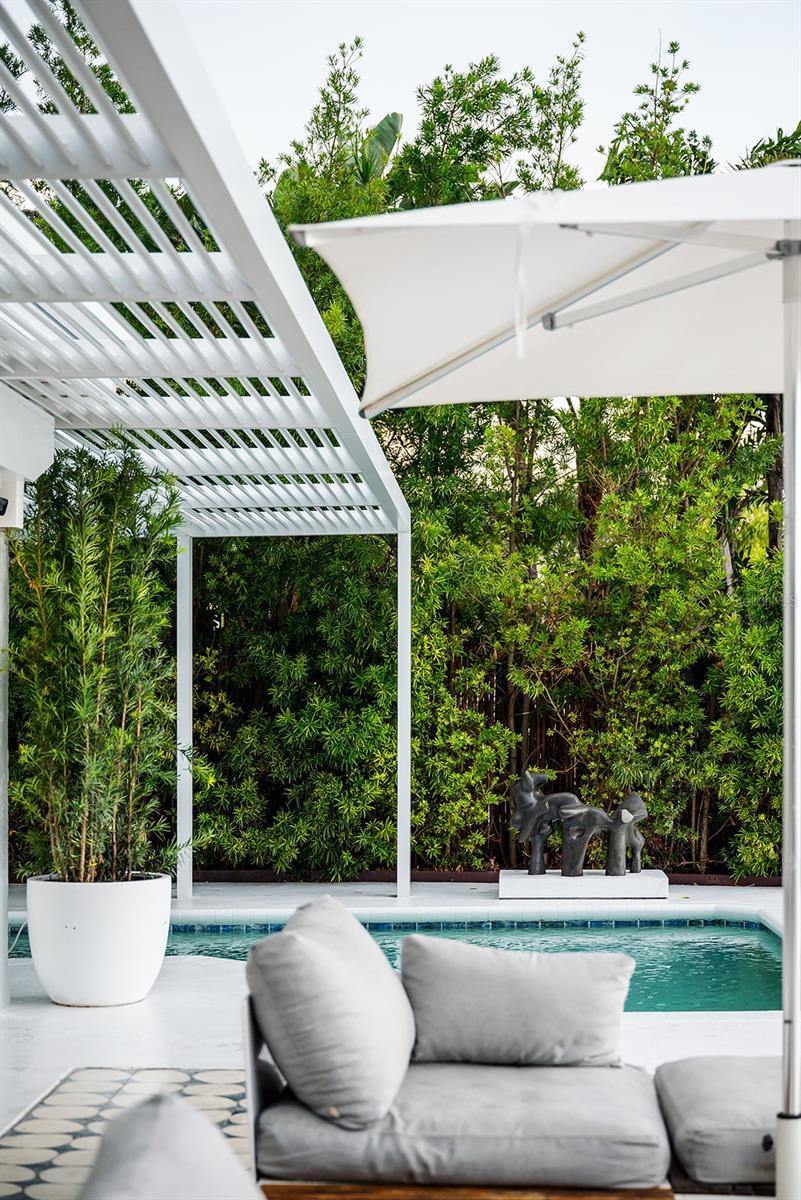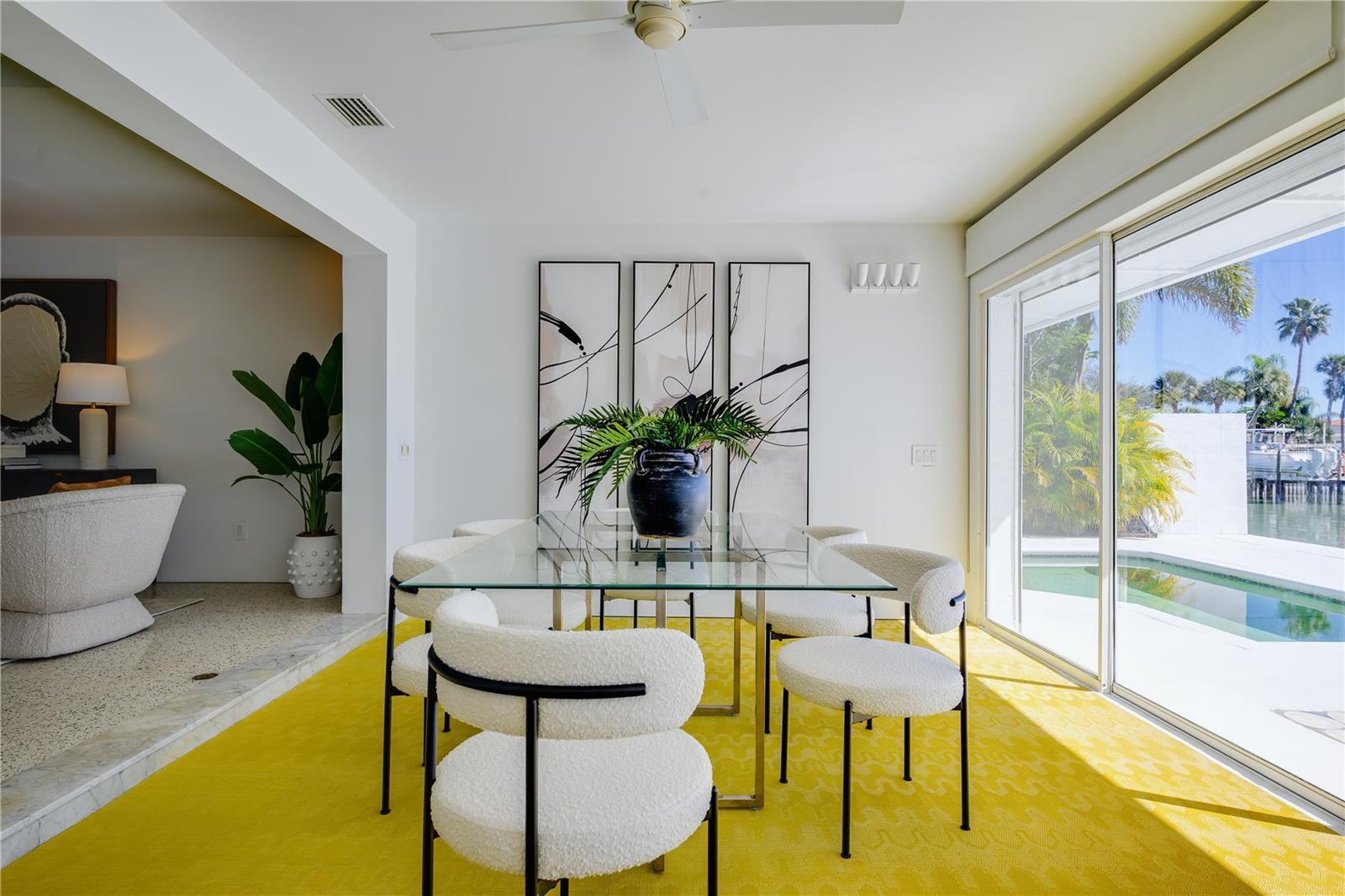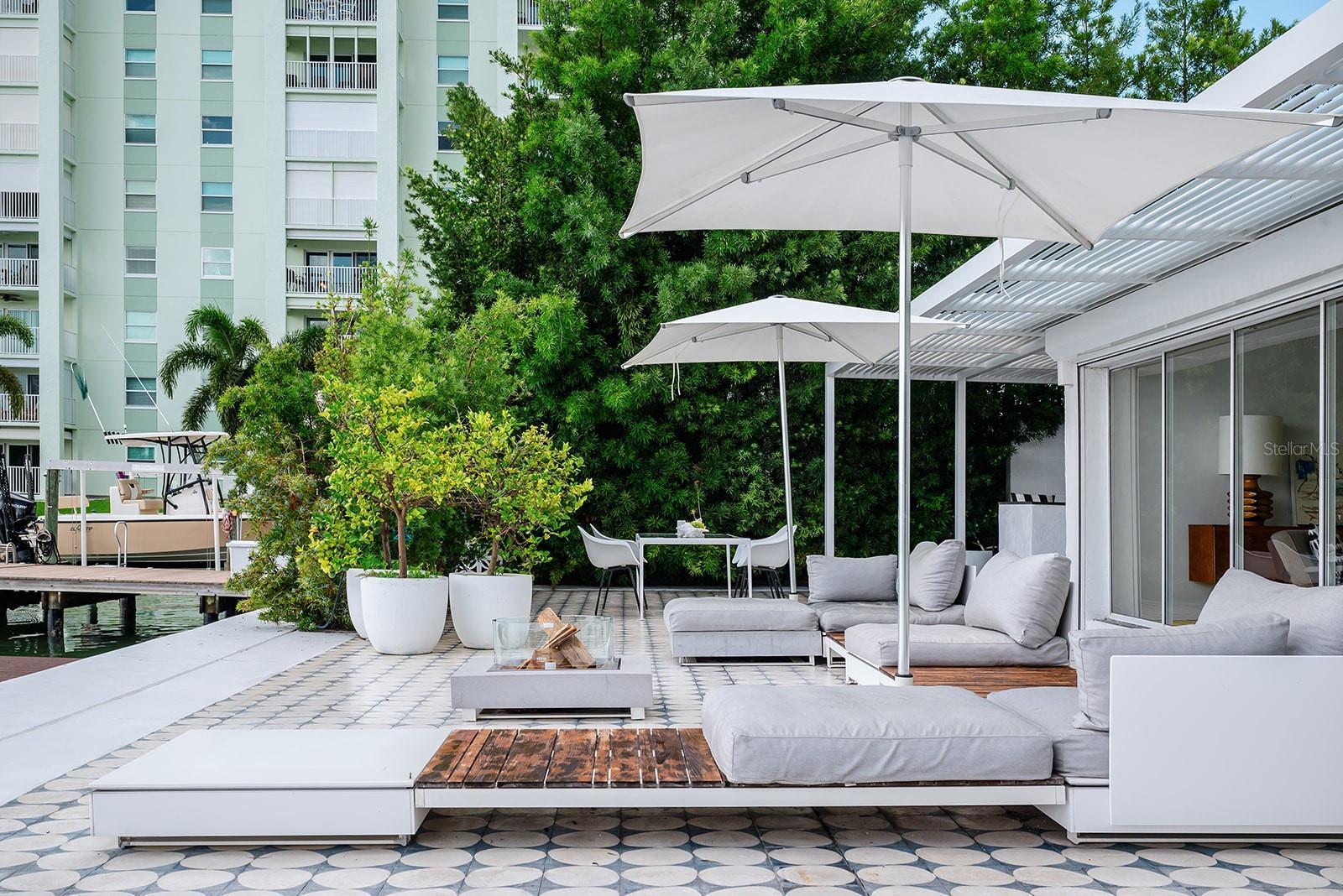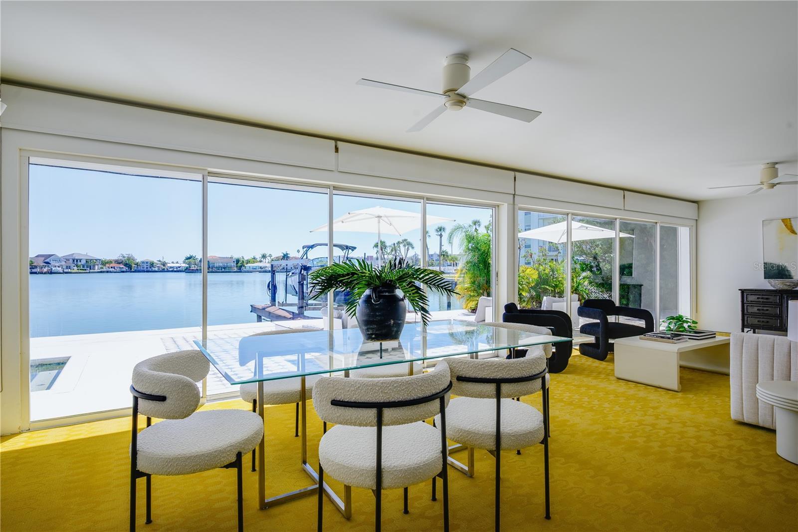 Welcome to this Exquisite 4 bed 2.5 bath Waterfront Pool Home located in the heart of St Pete Beach. This Residence exudes the seamless integration of Mid-Century Modern and Contemporary Coastal Chic vibes. This uniquely designed home harmonizes with its lush surroundings and captivating water views, and has been thoughtfully curated to embody a chic, vibrant, and welcoming atmosphere. Thoughtfully designed by a distinguished New York design and lighting consultant (clients include Ritz Paris, Cipriani & Ralph Lauren), every detail of this home screams style and sophistication. The lushly landscaped circular driveway invites you into the first of two private outdoor courtyards. As you step through the modern double doors, the open-concept layout unfolds, blending living, dining, and entertaining spaces with the vast expanse that is your pool, patio and captivating water views. The 40-foot expanse of glass pocket slider doors seamlessly blurs the boundaries between indoors and outdoors, in classic Mid-century style. For Enhanced security and privacy, the roll-down hurricane shutters on exterior doors and sliders provides convenience as needed. With a southern exposure ensuring abundant natural light and dynamic sky views throughout the day, this home is characterized by clean lines, original polished terrazzo, MissoniĀ® BolonĀ® flooring, Balinese Tile in the primary, and contemporary lighting fixtures. Each element has been meticulously designed for the property's distinctive aesthetic. Luxurious bathrooms, including a guest outdoor shower and a private patio with an outdoor tub and shower off the primary bedroom, showcase modern updates. The exquisitely updated kitchen features modern cabinetry, double wall oven/microwave, glass cooktop in the new stainless steel appliance package. This Mid-Century Modern Contemporary work of art is one a kind. From the custom Moroccan Pavers, outdoor dining and kitchen, and lounge style seating around the wood burning fire pit (VITEO), to the solar heated pool(2022) and private deck, the afternoon breezes will be tastefully accented by the dolphins swimming by. This property portrays the boating paradise most only dream of; 10,000lb lift with composite deck, 77ft seawall (2014), and floating dock for water toys! HURRICANE PROTECTION: this home has 5' aluminum flood panels installed for all the doors and windows. Panels can be stored off-site and installed as needed (for a fee) or the homeowner can store and install themselves. Flood insurance discounts may apply (see attachments) Nestled in Three Palms Point, this property imbues beauty, elegance and comfort within a vibrant and bustling beach community. This property is close to everything, from the pristine beaches of St Pete and Clearwater, the 65-mile Pinellas Trail, Beachfront Dining, Shopping, Live Music Venues, Historic parks such as Fort De Soto, and within 30 minutes to Tampa International and St Pete Clearwater Airports. Elevate your lifestyle and schedule a private showing today!!!