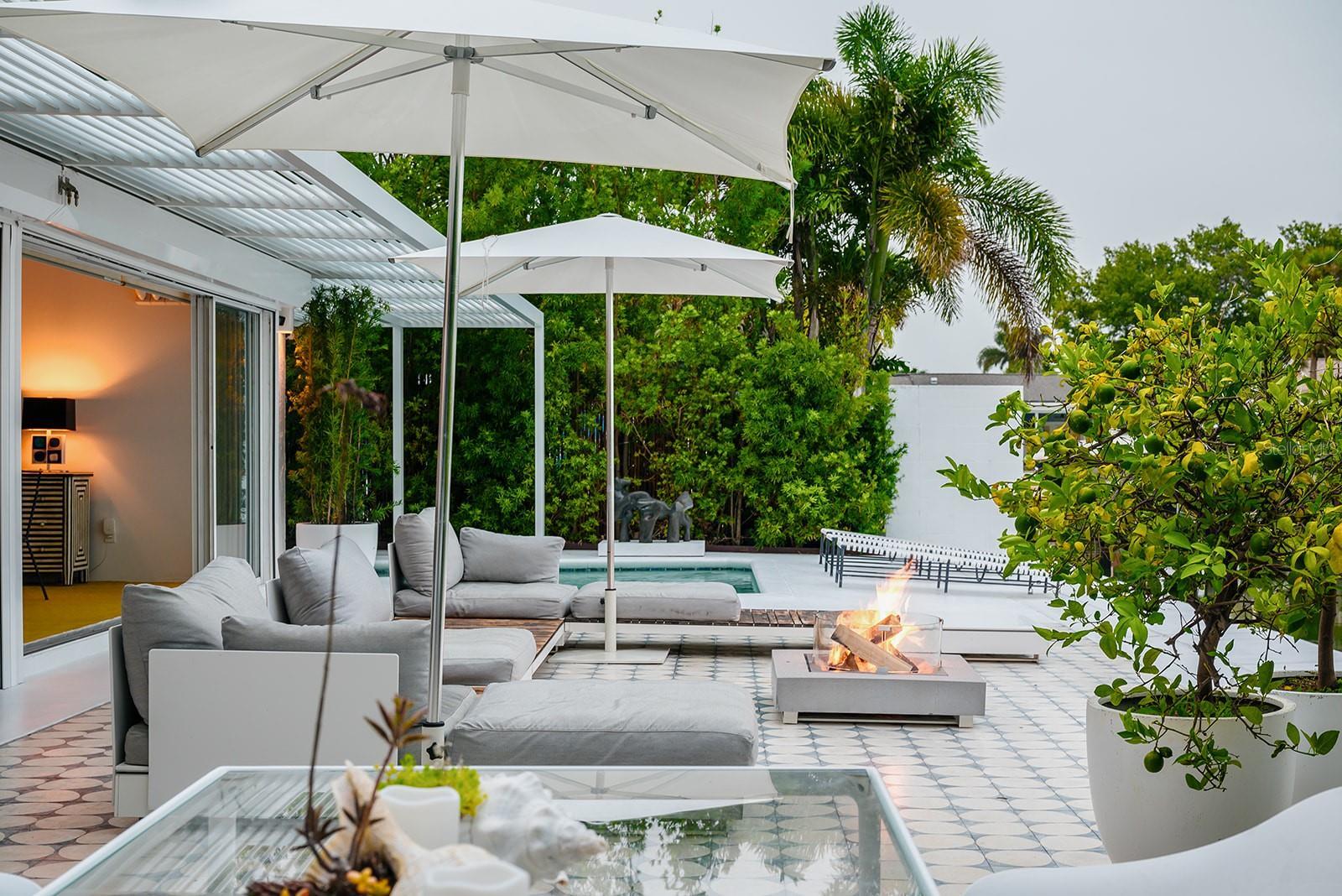 - Fire Pit, Gray Water System, Hurricane Shutters, Lighting, Outdoor Grill, Outdoor Kitchen, Outdoor Shower, Rain Gutters, Sliding Doors, Storage