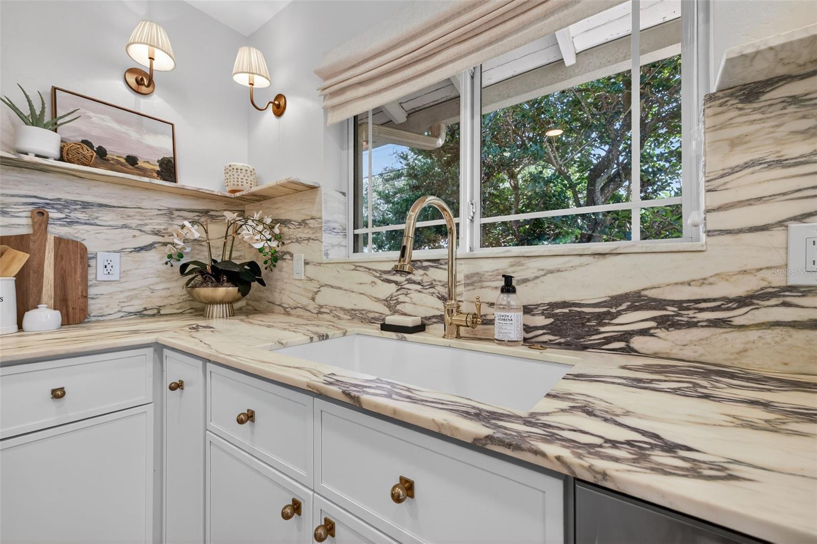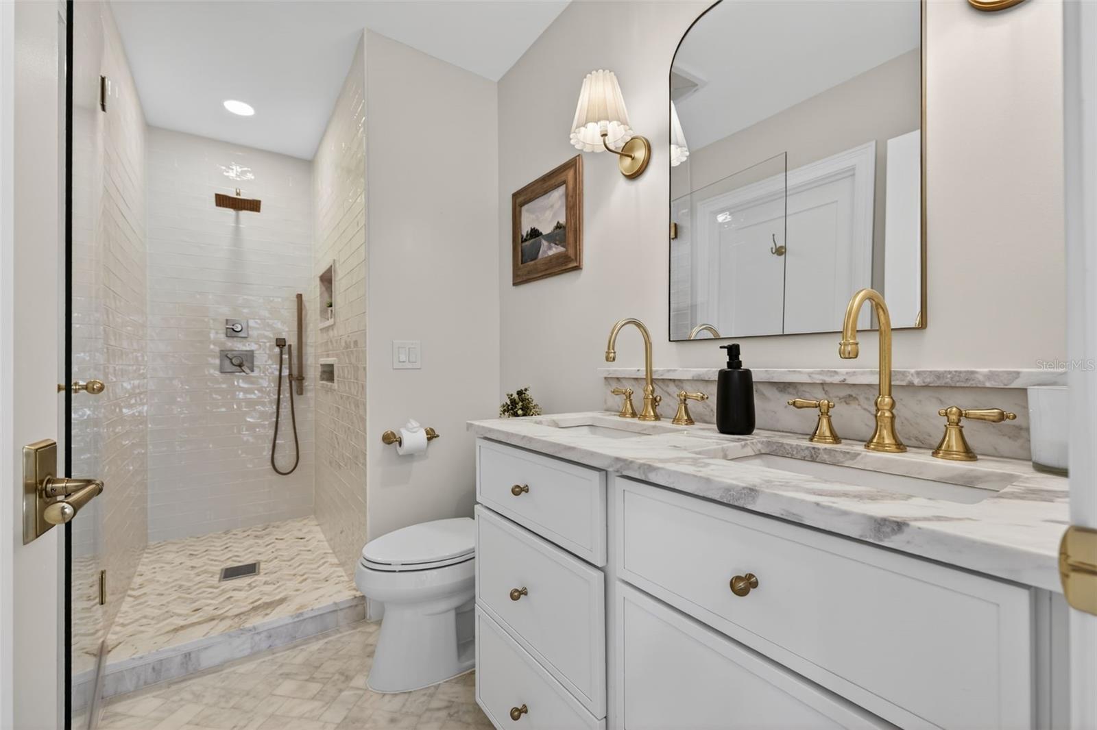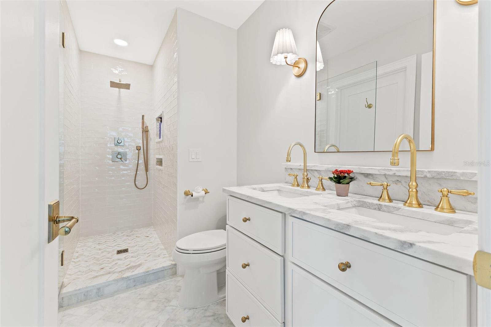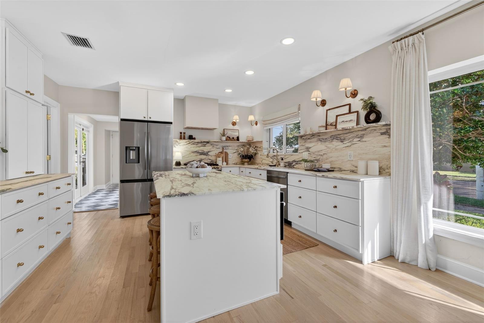Luxury, masterfully reimagined, at 101 27th Avenue North. NO HURRICANE DAMAGE! This exceptional residence has been completely transformed from head to toe with uncompromising attention to detail, craftsmanship, and timeless design. Offering 3 bedrooms plus a den, 3 bathrooms, and a 2-car garage, this block-construction home spans 1,717 square feet of impeccably curated living space, perfectly positioned on a generous corner lot in one of St. Petersburg’s most coveted neighborhoods. At the heart of the home, the bespoke chef’s kitchen is both striking and functional, featuring soft-close modern shaker cabinetry with custom organizers, a gas LG range, high-end Samsung appliance suite, Cosmo microwave drawer, and dramatic Calacatta Viola marble countertops and full-height backsplash—a true statement in luxury design. Each bathroom rivals a boutique spa, finished with marble floors and countertops, solid brass fixtures, and custom modern shaker vanities, creating spaces as indulgent as they are beautiful. Throughout the home, refined upgrades abound, including Emtek solid brass door hardware, Rejuvenation brass cabinet knobs, refinished oak hardwood floors with a custom stain, fresh designer paint, recessed LED lighting, custom closet systems, and elegant Pottery Barn wall sconces. Additional highlights include a wood-burning fireplace, whole-home Generac generator, lush new landscaping with architectural uplighting, and a full irrigation system, ensuring both comfort and peace of mind. The private backyard retreat offers a tranquil, tropical setting with ample room to add a pool. Nestled beneath a majestic oak canopy along iconic brick paver streets in Historic Old Northeast, just steps from Coffee Pot Bayou, this home combines classic neighborhood charm with modern luxury. This is a rare opportunity to own a turnkey residence of this caliber in one of St. Petersburg’s most prestigious enclaves. Homes like this are seldom available. Schedule your private showing today.