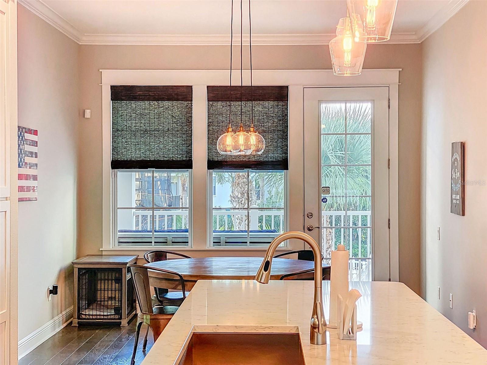 - Ceiling Fans(s), Crown Molding, Eat-in Kitchen, Elevator, High Ceilings, In Wall Pest System, Kitchen/Family Room Combo, Stone Counters, Thermostat, Walk-In Closet(s), Window Treatments