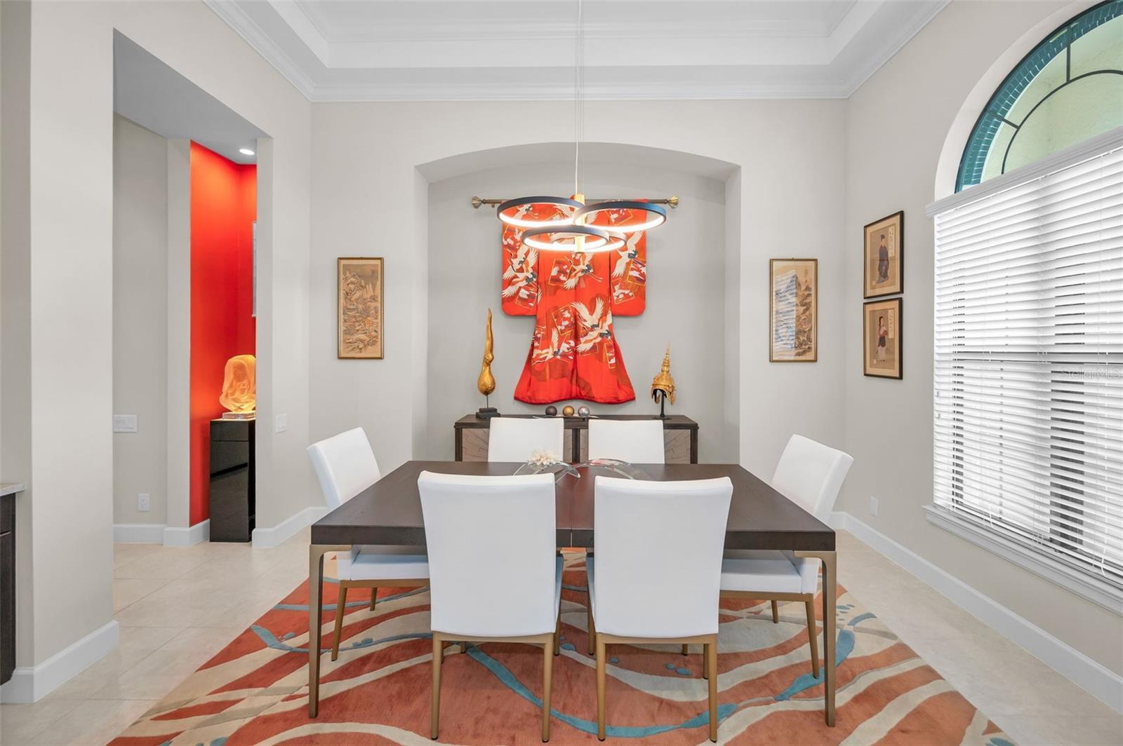 - Ceiling Fans(s), Crown Molding, Dry Bar, Eat-in Kitchen, High Ceilings, In Wall Pest System, Kitchen/Family Room Combo, Open Floorplan, Pest Guard System, Solid Surface Counters, Solid Wood Cabinets, Split Bedroom, Stone Counters, Tray Ceiling(s), Walk-In Closet(s)