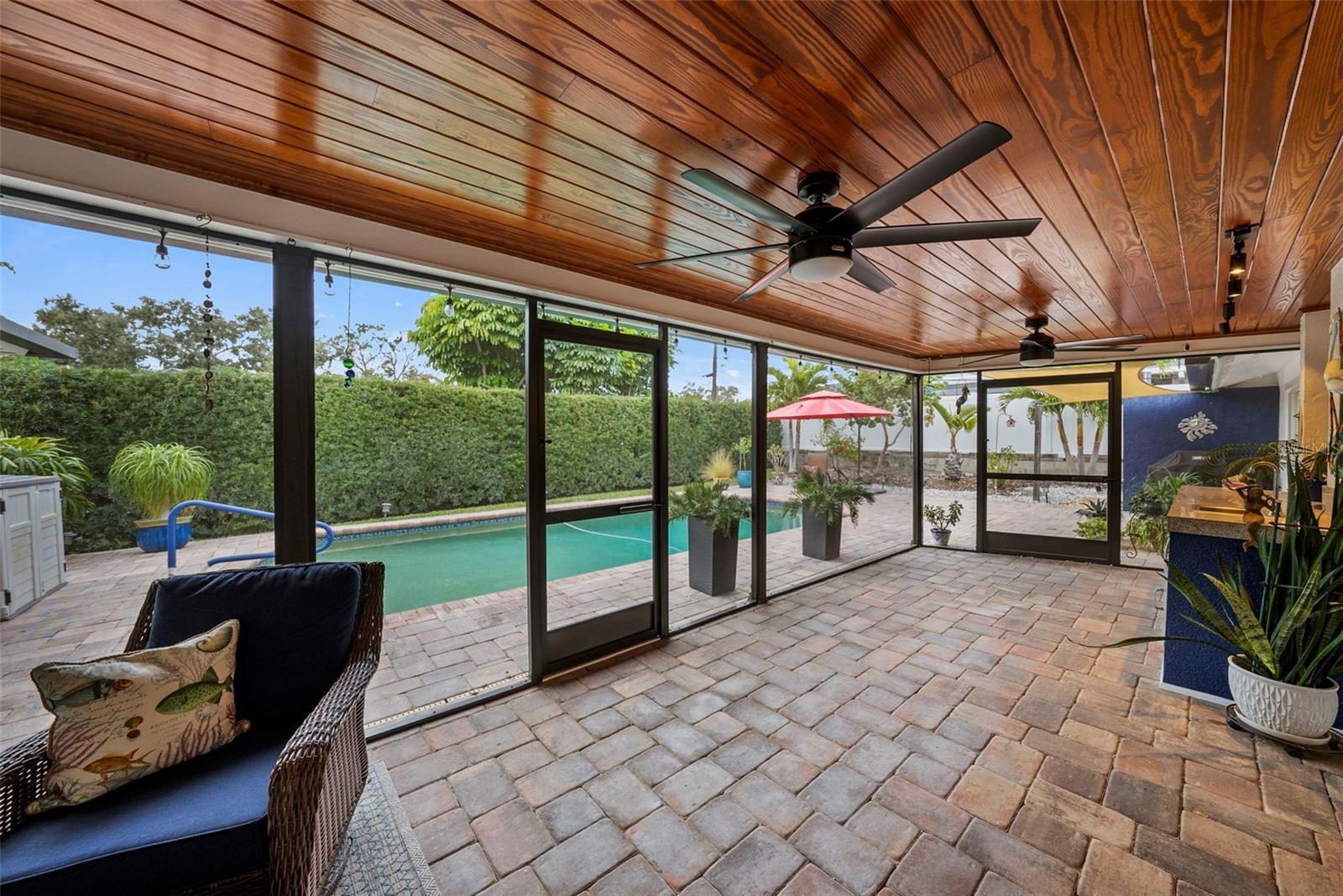 One or more photo(s) has been virtually staged. Perched on a picturesque hill and set behind lush landscaping, this beautifully maintained four-bedroom residence is approached by a circular driveway and immediately conveys pride of ownership. The thoughtfully designed split floor plan offers both functionality and timeless appeal, with formal living and dining rooms that add classic character. The open kitchen is ideal for everyday living and entertaining, featuring an island with seating and excellent potential for a future butler’s pantry to enhance storage and prep space. Anchored by a cozy wood-burning fireplace, the main living area opens to serene views of the private pool and outdoor entertaining space, creating a seamless indoor–outdoor flow. The four-bedroom configuration provides exceptional flexibility and privacy. The expansive primary suite serves as a true retreat, complete with a generous walk-in closet and two separate dressing areas. On the opposite side of the home, secondary bedrooms share a fully remodeled bathroom, while a separate rear bedroom and bath combination offers an ideal guest suite or mother-in-law arrangement. Outdoor living is further enhanced by pavers surrounding the pool and a covered back porch with tongue-and-groove ceilings, offering an inviting setting for year-round relaxation or entertaining. Meticulously cared for, the home has seen significant upgrades recently, including a fully remodeled secondary bathroom, electric tankless water heater, interior and exterior paint, whole-house HVAC filtration system, water softener, and water filtration system among more. The property also includes a designated electric panel for a portable generator, which may convey, providing added peace of mind. A detailed brochure will be available on site during your visit including all of the home's updates and improvements. Set within the highly desirable Fairway Estates of Dunedin, this home enjoys charming streets, an elevated setting, and the rare advantage of no flood insurance requirement. Moments from the Dunedin Causeway, Honeymoon Island State Park and beaches, waterfront dining, marinas, and the historic Dunedin Golf Club, the area offers an effortless blend of recreation, coastal living, and everyday convenience. Whether heading out by golf cart to the course, clubhouse, or downtown Dunedin’s acclaimed restaurants and nightlife, this property delivers the lifestyle that continues to make Dunedin one of Pinellas County’s most coveted communities.