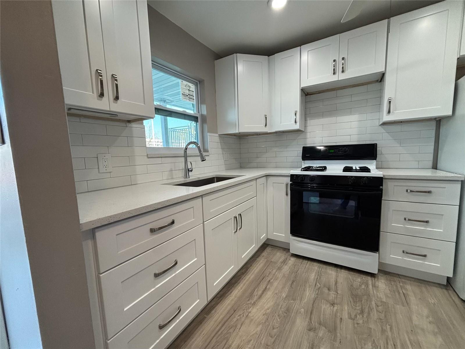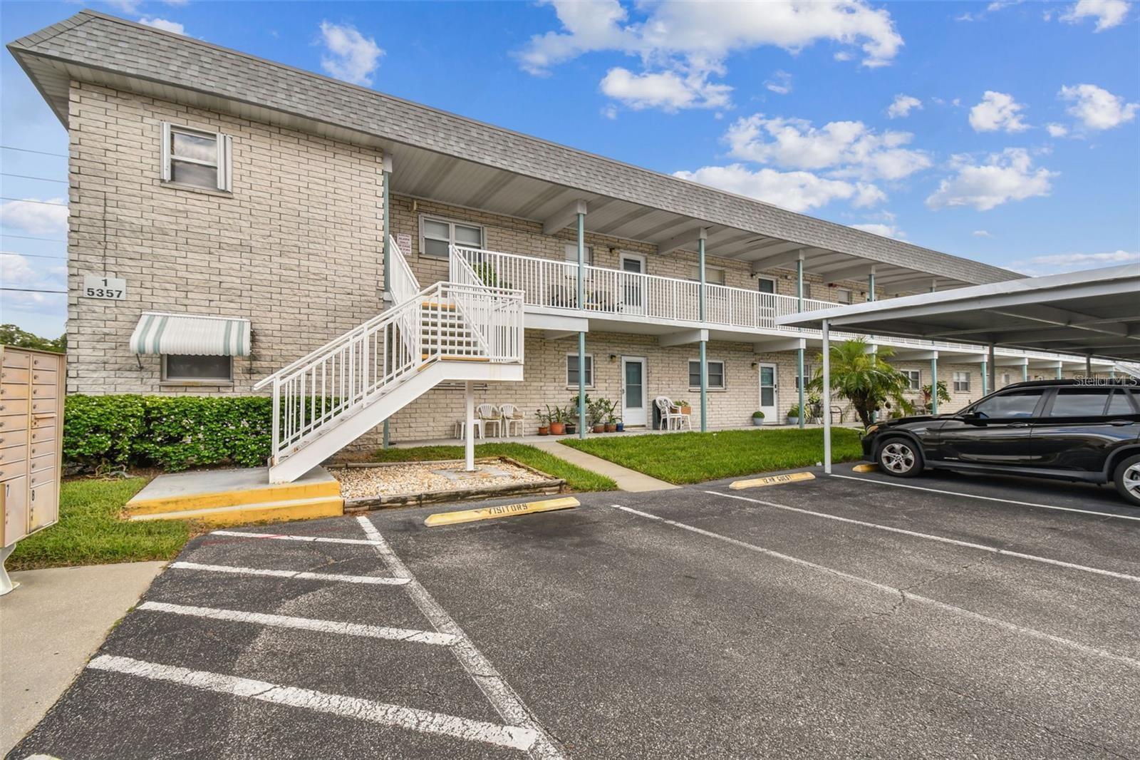 Paradise Shores 55+Community! Updated 1-bedroom, 1 bath first floor condo with covered parking space. Unit offers an open floor plan with living/dining room combo, renovated kitchen cabinets, backsplash, newly installed wood-look flooring through-out. Bedroom offers spacious walk in closet and walk-in shower. Building exterior has been recently renovated, newer roof, laundry facility, and porches. Amenities includes: clubhouse, swimming pool, and shuffleboard courts. Close proximity to the beautiful Gulf Beaches!