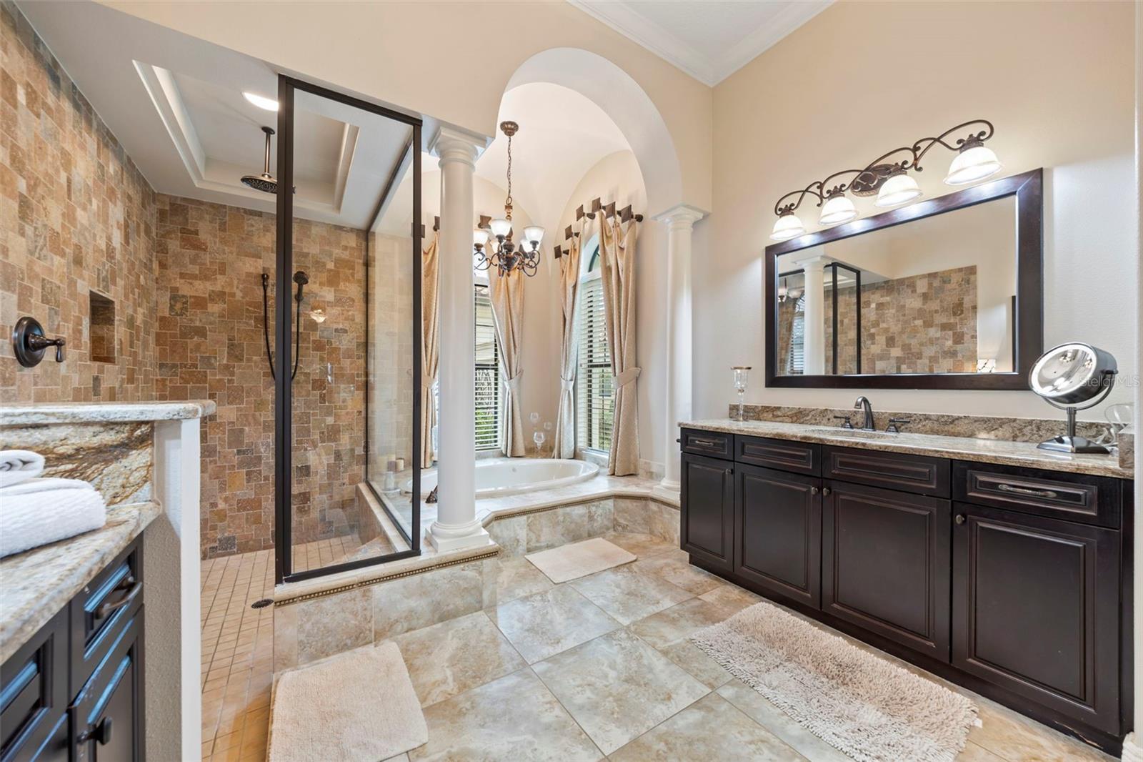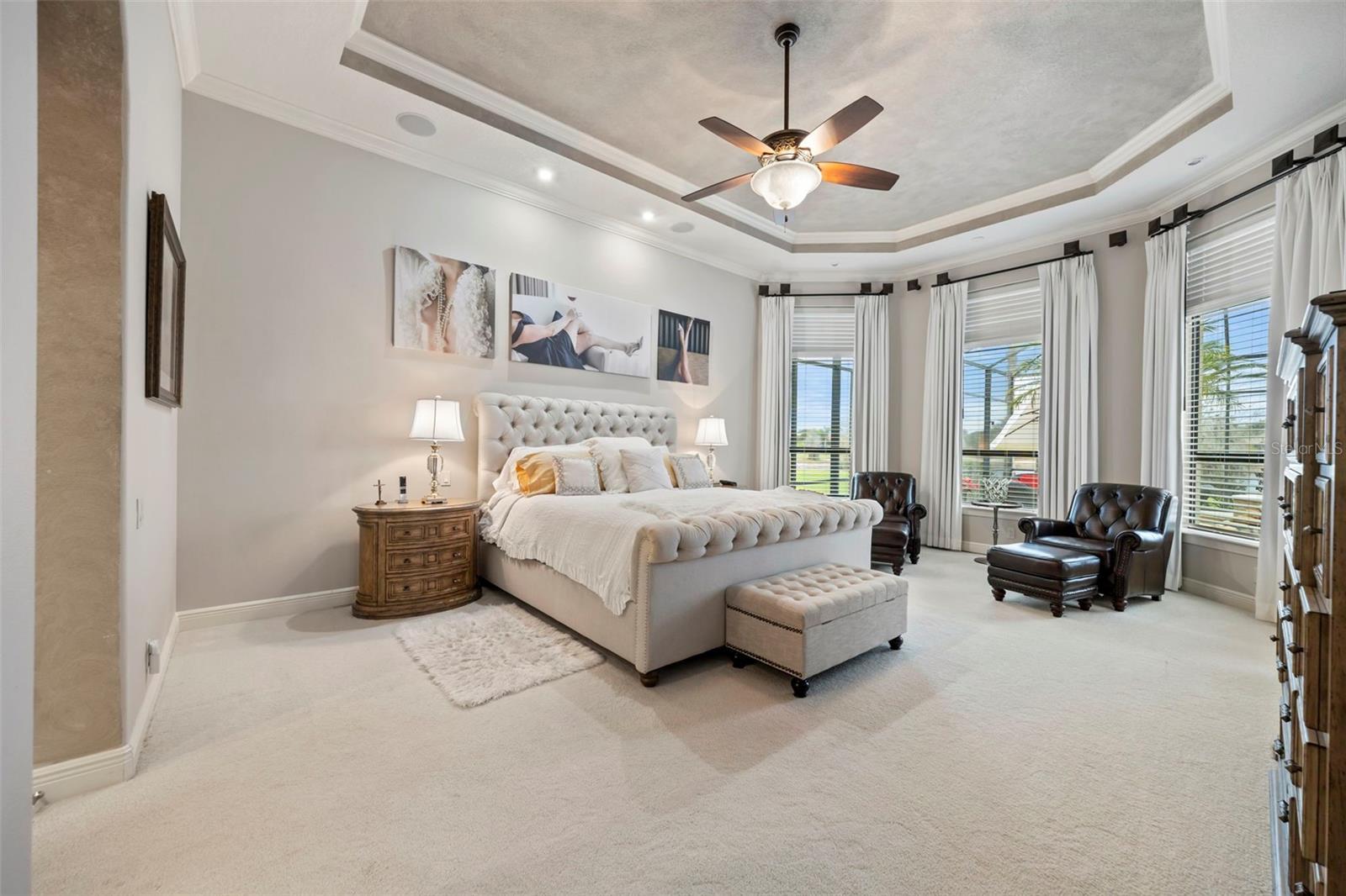 Welcome to 1207 Merry Water Drive, an exceptional Arthur Rutenberg–built estate located in the highly coveted Ladera neighborhood. One of only four Arthur Rutenberg homes in the community—and the only 5-car garage home in Ladera—this residence was proudly featured on the cover of Legendary Homes. Set on a premier large lake lot with low HOA fees and zoned for Steinbrenner High School, this property offers a rare blend of luxury, technology, and thoughtful design. From the moment you arrive, you’ll be impressed by over 2,000 square feet of newly sealed entry pavers (2025), extensive mature landscaping with irrigation and drip systems, dramatic landscape lighting, and nine mature Washingtonian palm trees creating stunning curb appeal—especially at night. Hurricane-impact windows throughout provide peace of mind with no shutters required. Inside, the home is fully integrated with a Control4 smart home system, allowing lighting, audio, security cameras, TVs, climate control, and more to be managed seamlessly from your phone. The gourmet kitchen features custom cabinetry, South African granite, GE Profile gas appliances (all under three years old), reverse-osmosis water, wine bar with refrigerator, and built-in security monitoring. Adjacent living and family spaces showcase custom ceiling details, wood beams, marble gas fireplace, expansive sliding doors, surround sound, and designer drapery—perfect for both entertaining and everyday living. The spacious primary suite offers private pool access, walk-in closets with custom built-ins, Control4 surround sound, and a spa-like bath with oversized dual-head shower. Additional bedrooms include private baths and balconies, while the upstairs family room opens to an outdoor balcony with surround sound and lake views. Outdoor living is exceptional with a full screened pool enclosure, travertine pavers, illuminated pool and spa with dual motors and fountain feature, and a custom gazebo complete with a 2025 built-in grill, cooktop, refrigerator, and TV. Whether hosting gatherings or relaxing lakeside, this space is designed to impress. Additional highlights include three separate AC units (primary unit just six months old), Vivint security system, hurricane protection, dedicated study, smart laundry room with Control4 rack system, and two garages totaling five parking spaces—one with EV-ready high-amp outlet, custom cabinetry, work area, and advanced lighting and irrigation controls. This is a truly rare opportunity to own a technologically advanced, meticulously maintained luxury home in one of the area’s most desirable communities. Schedule your private showing today.