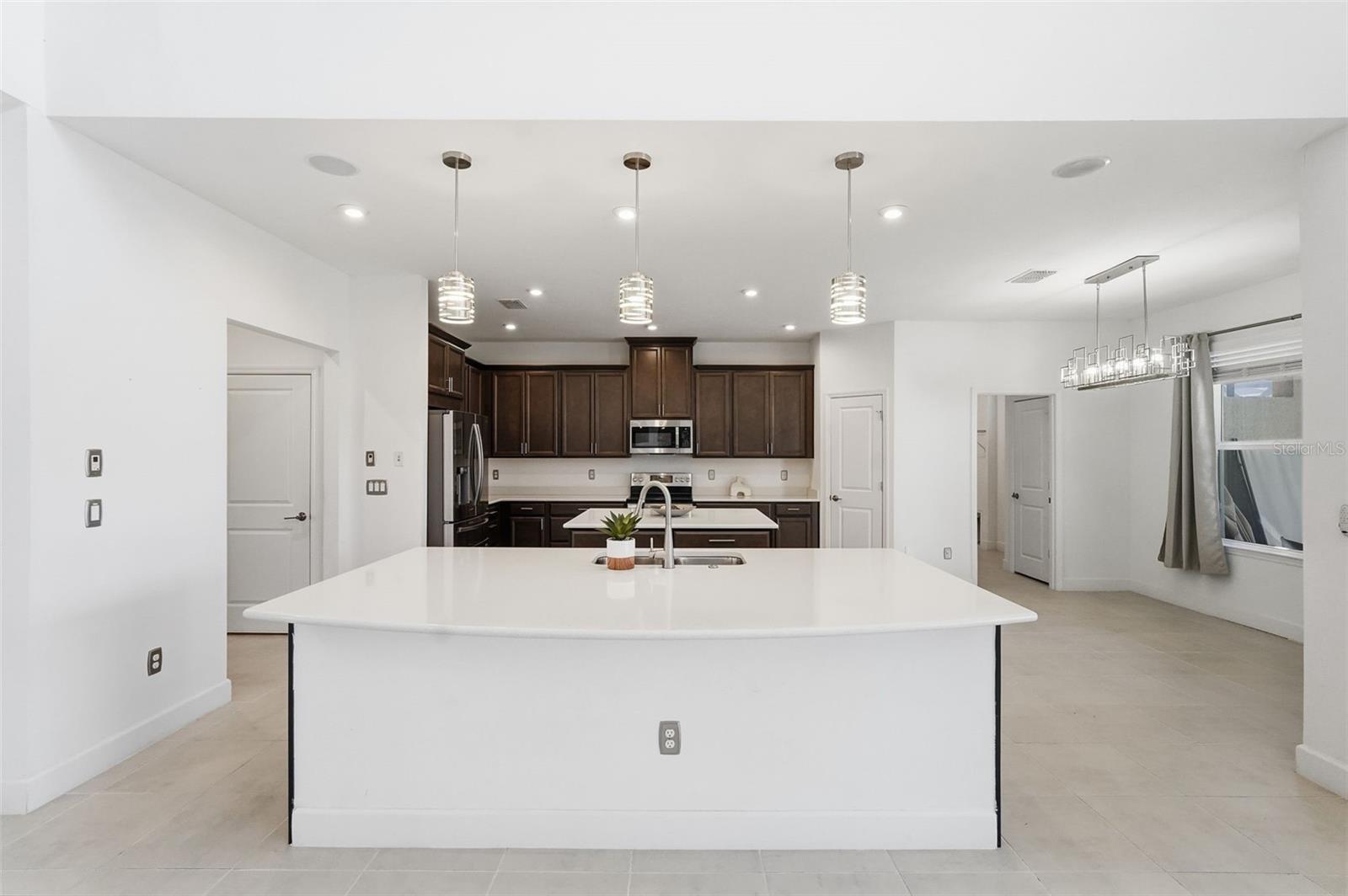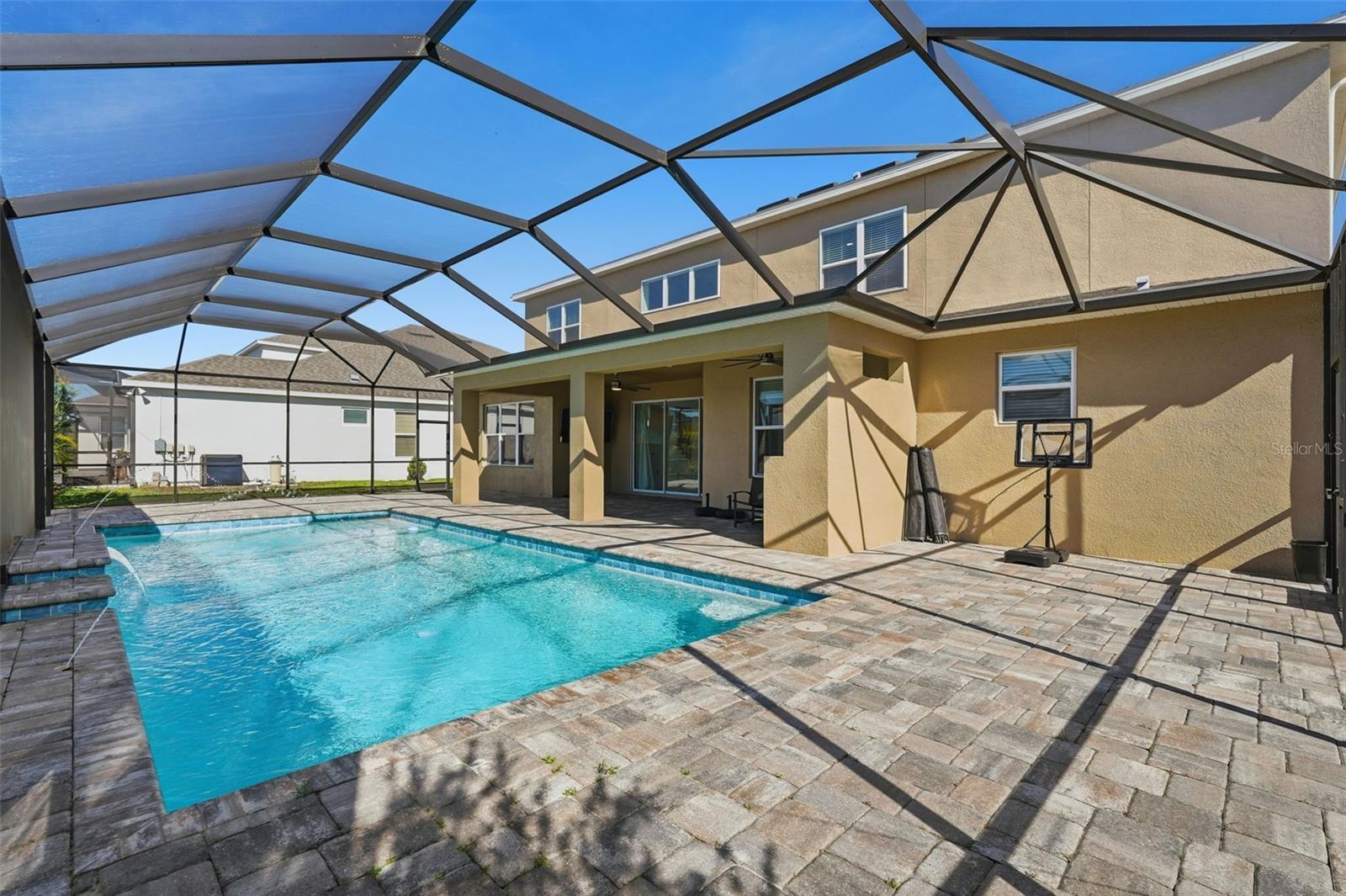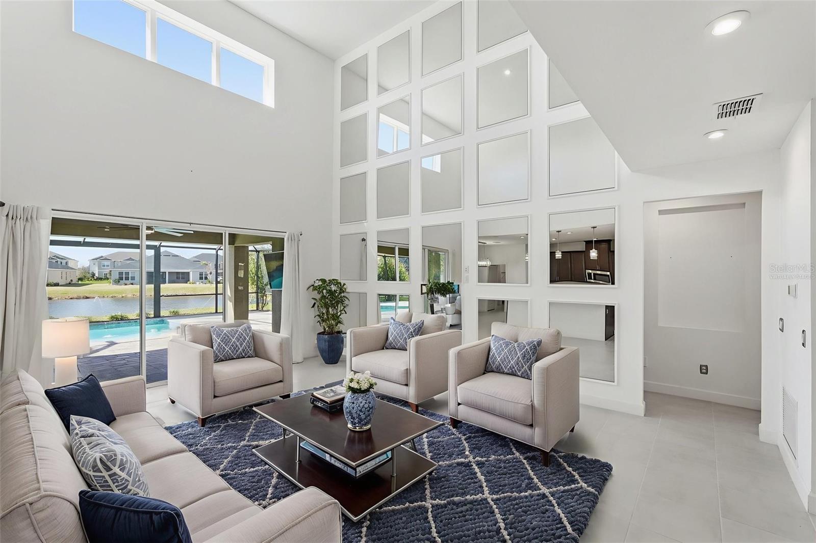 Under contract-accepting backup offers. Welcome to this stunning Bimini model by award-winning Taylor Morrison, located in the gated Bradbury neighborhood of the sought-after Watergrass community. Built in 2022, this 6-bedroom, 3.5-bathroom, 3-car garage pool home offers over 4,100 square feet of luxurious living space and is perfectly situated on a serene waterfront lot with breathtaking views. Step inside to discover an open and airy layout featuring soaring 20-foot ceilings, abundant natural light, and elegant upgrades throughout. The main floor boasts ceramic tile in all living areas, a formal dining room, a private office/study or den, and a gourmet kitchen equipped with stainless steel appliances, quartz countertops, a butler’s pantry, and double islands—ideal for entertaining. The kitchen seamlessly flows into a spacious dining nook and the expansive gathering room, highlighted by a dramatic floor-to-ceiling mirror accent wall and a striking catwalk view from above. Sliding glass doors open to your private panoramic screen-enclosed lanai, where you’ll find a saltwater chlorinated pool with custom lighting and Wi-Fi controls, a large smart TV and ceiling fans to keep the space breezy and comfortable. The pool area is also pre-plumbed for a future outdoor kitchen—perfect for Florida living. The first-floor owner’s suite is a peaceful retreat, complete with a spa-like ensuite bathroom featuring granite counters, double vanities, a soaking tub, separate shower, and a generously sized walk-in closet. A whole house surge protector has been recently added for peace of mind, and you’ll find new ceiling fans throughout the home, including on the lanai. Upstairs, you'll find five additional spacious bedrooms—two sharing a Jack and Jill bath—plus an additional full bathroom, a large loft, and a separate media room, offering plenty of space for work, play, and relaxation. Located in one of the area’s premier master-planned communities, Watergrass offers resort-style amenities including a clubhouse with gym, multiple parks, tennis courts, three pools, walking trails, and more! Plus, you're just 1 mile from a brand-new Publix and retail plaza, with shopping, dining, and daily conveniences right at your fingertips. Quick access to I-75, Epperson Lagoon, and top-rated schools makes this location as convenient as it is beautiful. Don’t miss your chance to own this show-stopping home—schedule your private showing today!