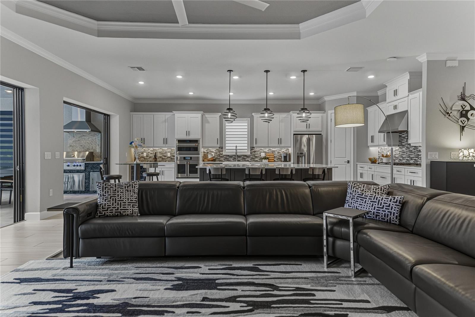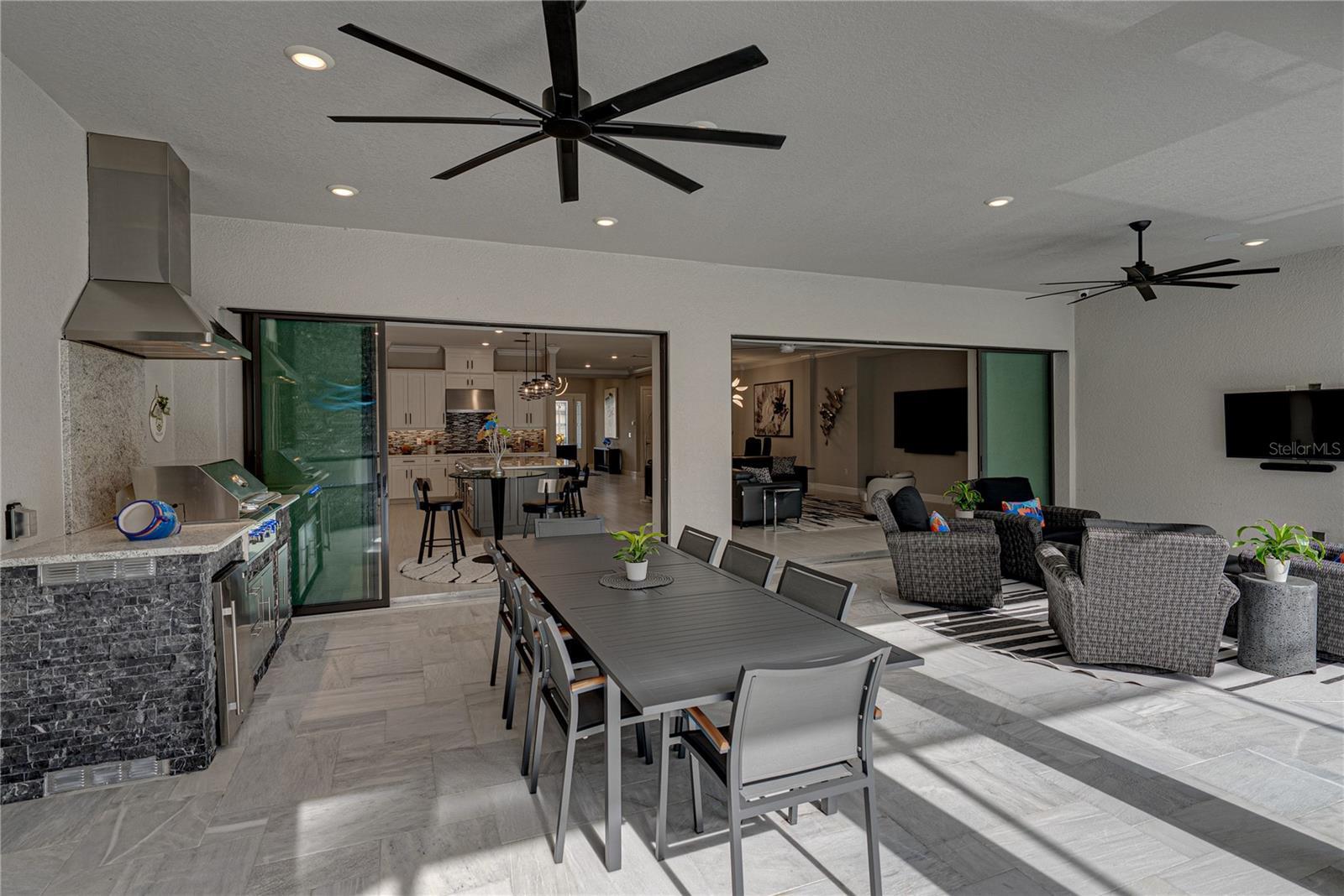 - Lighting, Outdoor Grill, Outdoor Kitchen, Rain Gutters, Sidewalk, Sliding Doors