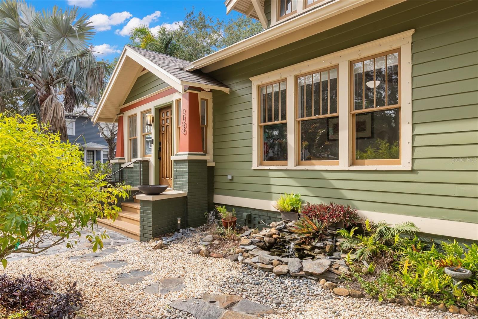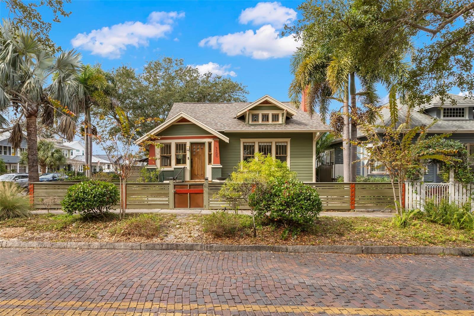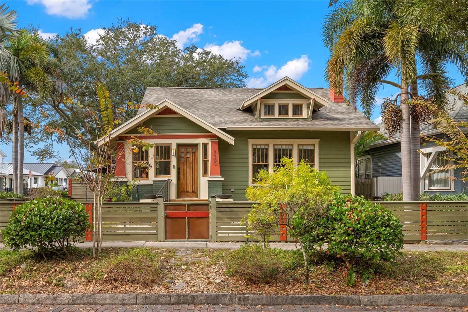 Under contract-accepting backup offers. Charming 1925 Craftsman bungalow situated on a corner lot just steps to 4th Street and downtown! This 2 bed/2 full bath, 1359 sq/ft home has been lovingly restored with recent updates to include a new roof, A/C and interior painting in 2025. The fenced exterior with lush landscaping and botanical gardens features multiple sitting areas with pavers and stones to create the perfect sanctuary for entertaining or relaxation! The exterior paint color is true to the era of the home and a well appointed nod to the 1920's. Greet your guests in the welcoming sunny sitting room and home office with lots of natural light. Continue on in the living room, which has a beautiful original fireplace with built-ins that opens to the dining room and kitchen for casual entertaining. The kitchen boasts stainless steel appliances featuring a gas range, granite countertops, custom cabinets and a built-in desk nook. The primary bedroom is spacious with highlights to include a large walk-in closet, an updated bathroom with marble flooring/vanity and walk-in shower. The second bedroom features a murphy bed/desk combo with a hall bath that has also been updated with new flooring and modern glass shower doors. Plenty of off street parking in the detached garage or on the parking pad behind for 2 cars. Additional garage features include lots of storage cabinets, attic with cargo lift, epoxy floors, a wall unit to heat and cool should someone desire an art studio, gym or home office. Other features include Brazilian cherry hardwood floors, 5 panel solid craftsman doors, 9 ' ceilings, crown molding, inside laundry, sprinkler system on a private well, security cameras and a gas/tankless water heater. Located outside the flood zone you will be sure to have peace of mind when storms approach. Schedule a private showing today to see one of Old Northeast charming bungalows!
