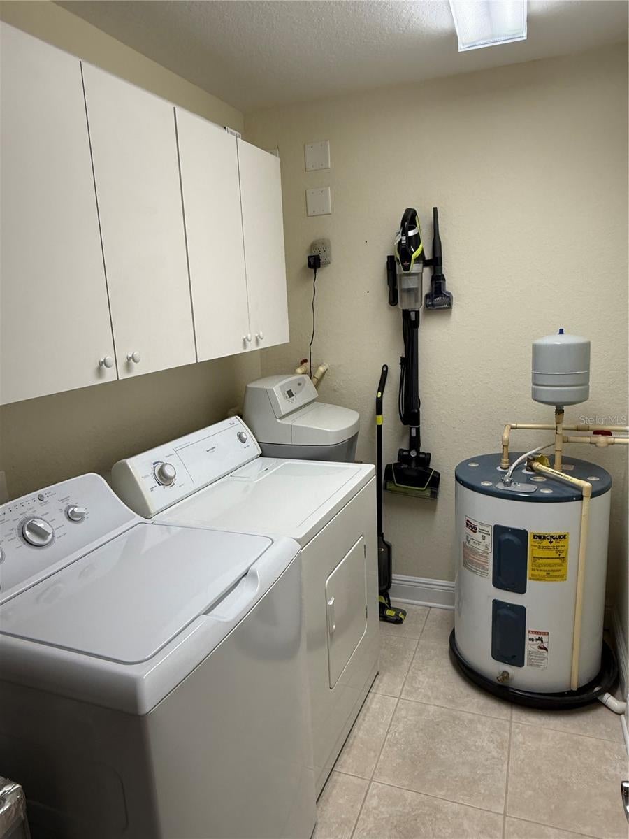 - Dishwasher, Disposal, Dryer, Electric Water Heater, Ice Maker, Kitchen Reverse Osmosis System, Microwave, Range, Refrigerator, Washer, Water Softener
