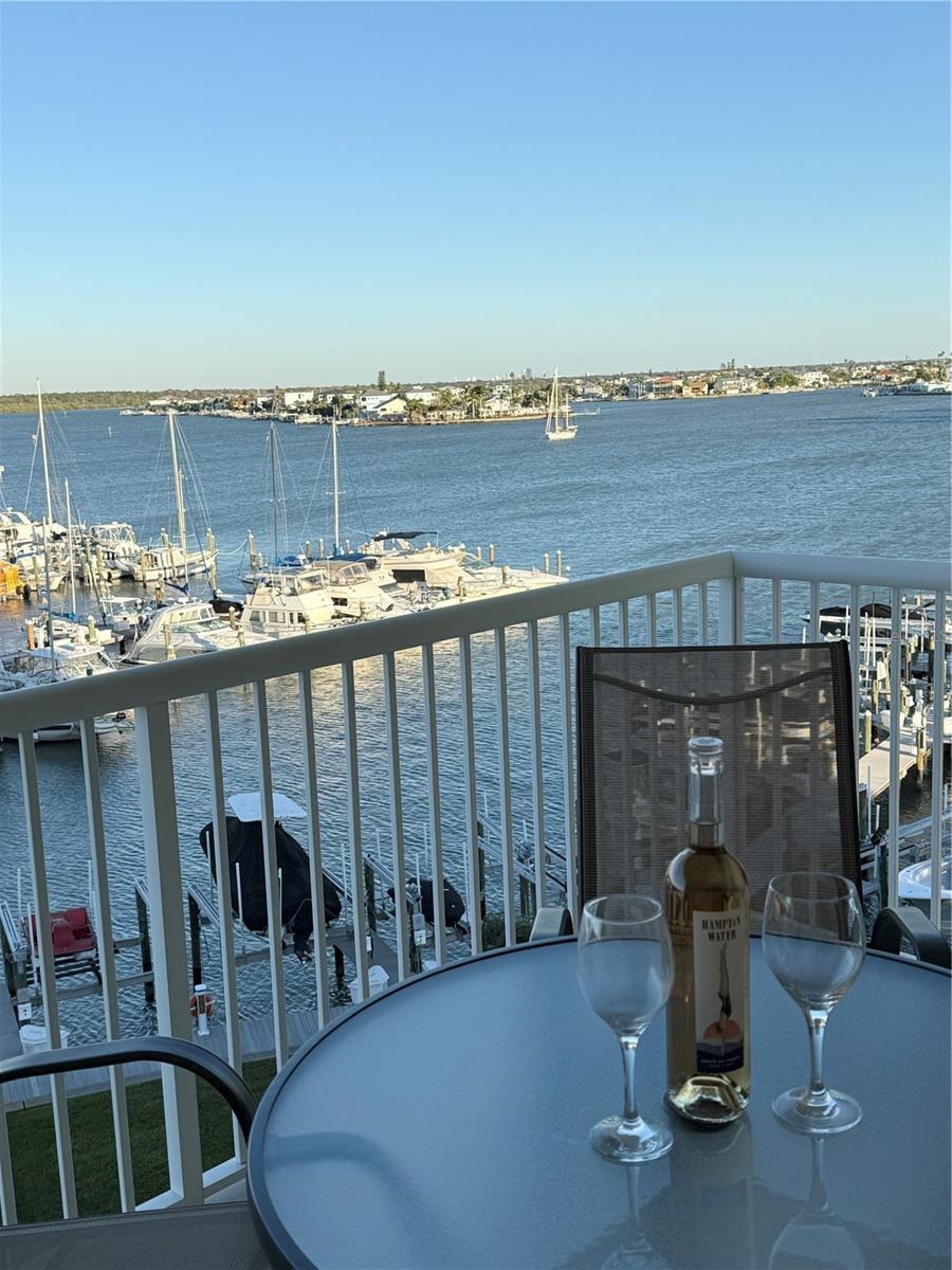 ULTIMATE LUXURY WATERFRONT LIVING FROM THE TOP FLOOR! Enjoy the stunning water views from your large covered balcony. This 2 bedroom, 2 bath plus den/office flex room comes FULLY FURNISHED. The spacious kitchen is nicely equipped including a Boos butcher block island. Water softener system a well as a Reverse Osmosis (R.O.) for the kitchen. Crown molding and plantation shutters throughout add to the elegance. Enjoy high ceilings and an open floor plan. Large Primary bedroom with water views, 2 walk in closets and spacious bathroom makes for a relaxing retreat. Tile flooring with cork underlay for reduced noise in the kitchen, living room, dining room and other common areas. Unit comes with a deeded boat slip and a 16,000 lb. boat lift. Also, an oversized one car garage \. Enjoy the pool and spa as well as the clubhouse. Easy walk to shops, restaurants and the beach. JUST BRING YOUR TOOTHBRUSH AND COME LIVE THE SALT LIFE!