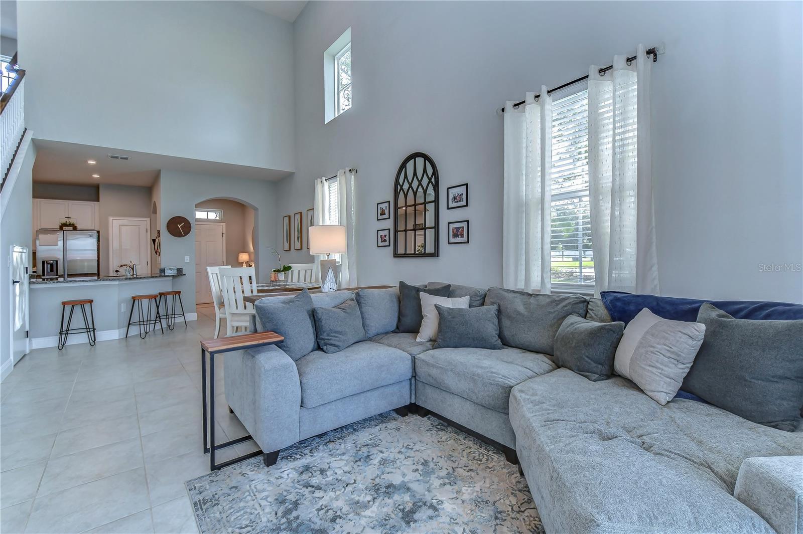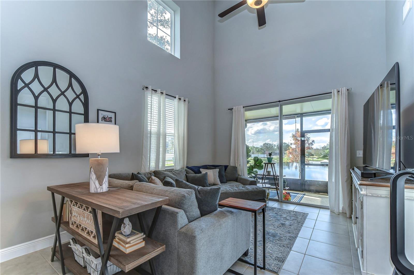 - Cathedral Ceiling(s), Ceiling Fans(s), High Ceilings, Primary Bedroom Main Floor, Thermostat, Window Treatments