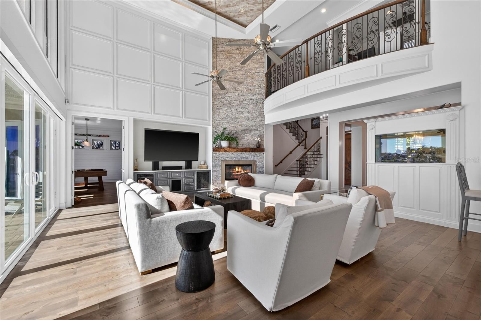 - Built-in Features, Cathedral Ceiling(s), Ceiling Fans(s), Crown Molding, Dry Bar, Eat-in Kitchen, High Ceilings, In Wall Pest System, Kitchen/Family Room Combo, Open Floorplan, Pest Guard System, PrimaryBedroom Upstairs, Solid Surface Counters, Solid Wood Cabinets, Split Bedroom, Stone Counters, Thermostat, Tray Ceiling(s), Vaulted Ceiling(s), Walk-In Closet(s), Wet Bar, Window Treatments