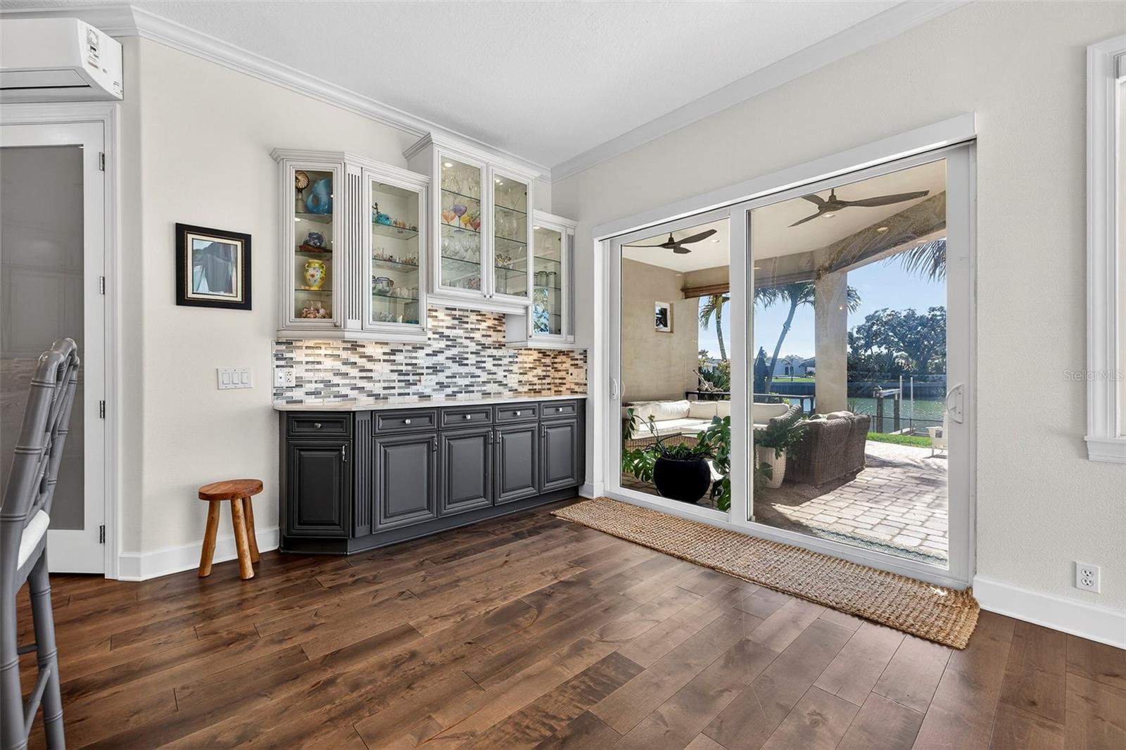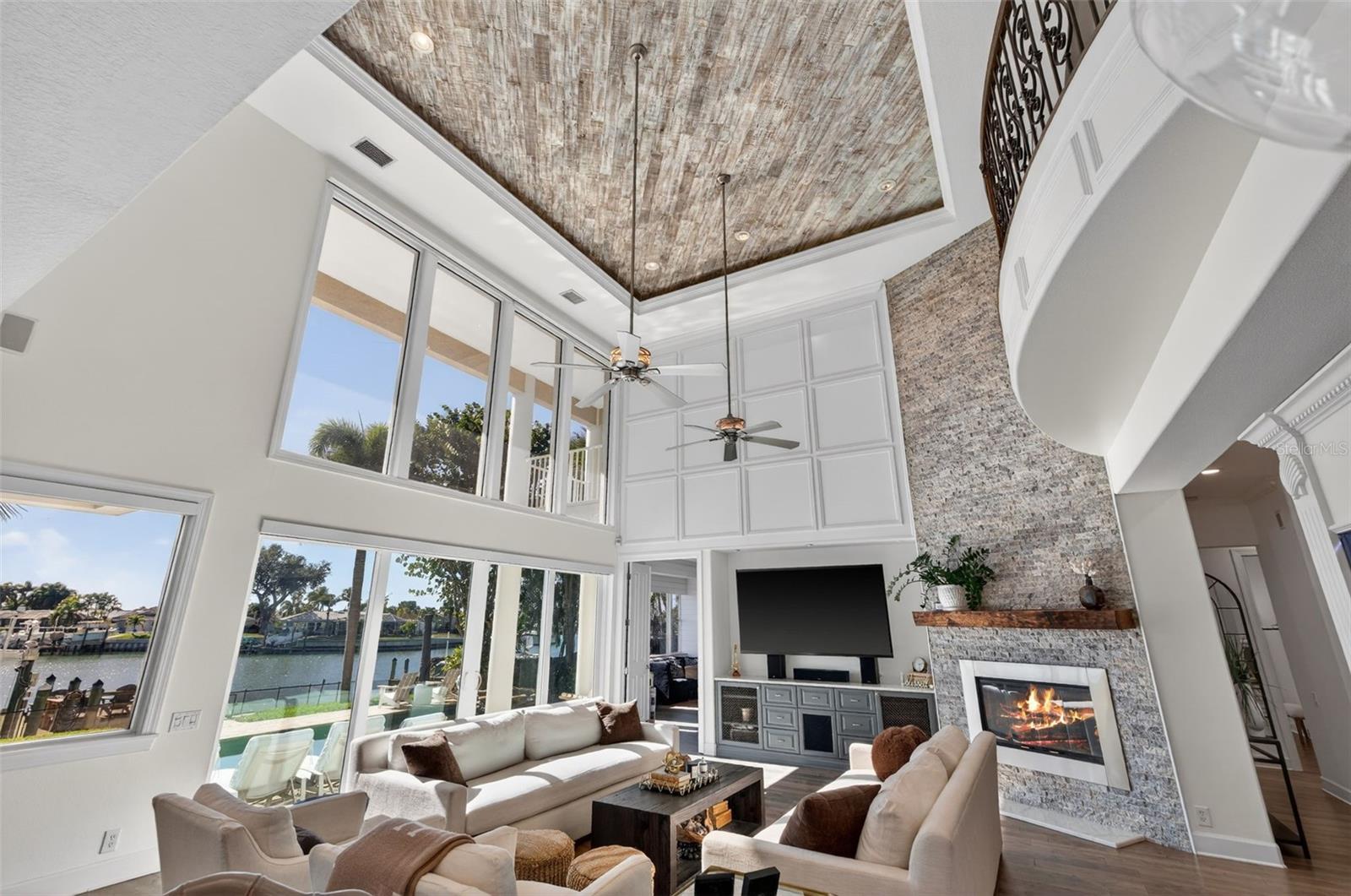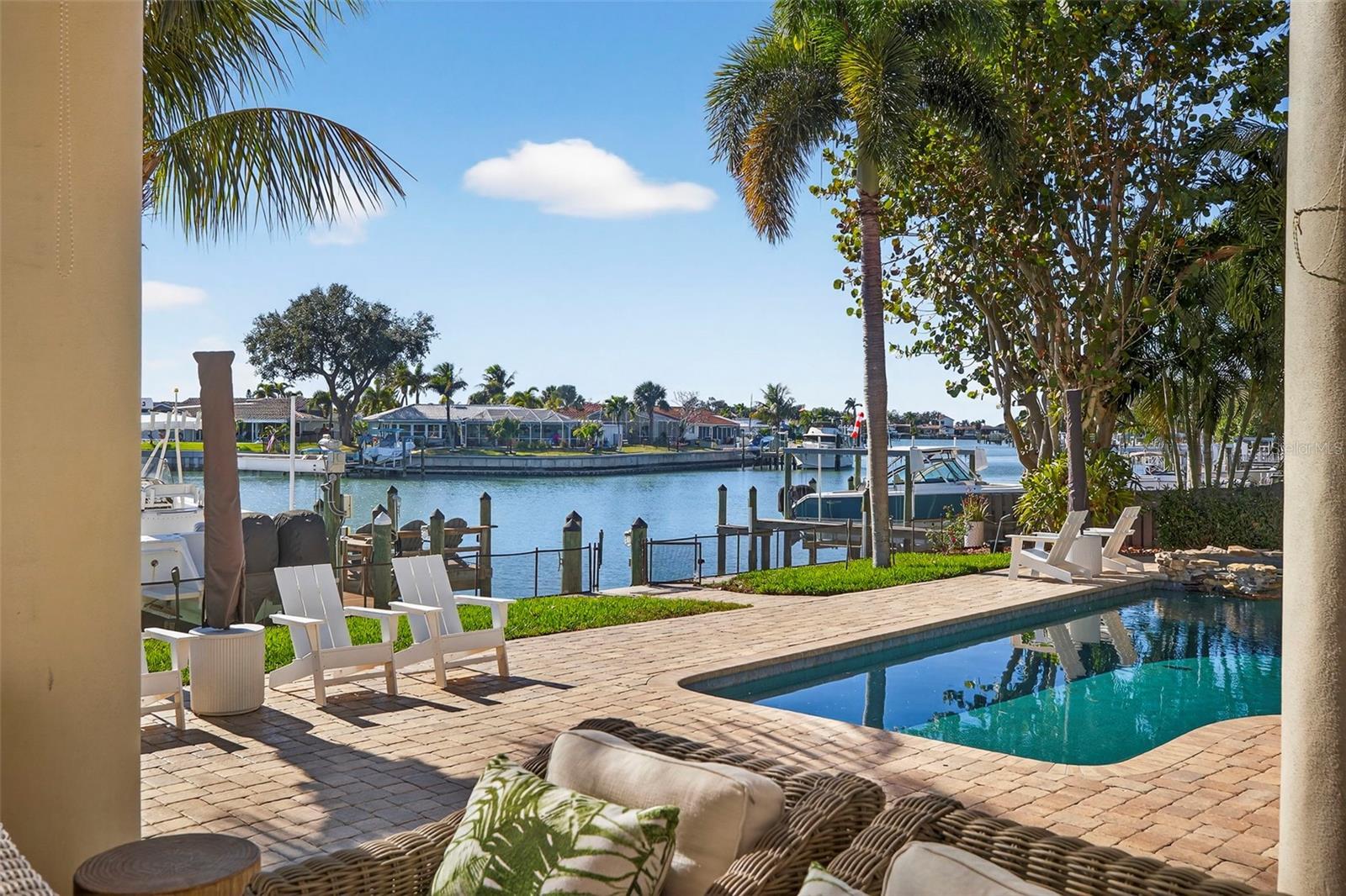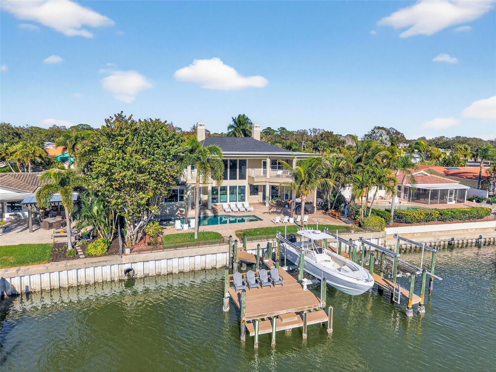 Welcome to this LUXURY WATERFRONT residence in the gorgeous Broadwater neighborhood of St. Petersburg, a highly sought-after boating community known for deep-water canals, quick access to the Gulf, and a peaceful residential setting just minutes from downtown St. Pete and the beaches. This beautifully landscaped home welcomes you immediately to this exceptional contemporary estate, where superior craftsmanship and refined finishes are evident throughout. This expansive home has 4 bedrooms, 3 full and 2 1/2 baths along with a large 2 car garage. The great room impresses with soaring custom ceilings, a tumbled marble gas fireplace, custom built-in entertainment center, and walls of windows framing stunning waterfront views. The gourmet kitchen is designed for both form and function, featuring quartz countertops with ogee edge detailing, glass tile backsplash, elegant custom cabinetry, stainless steel appliances, gas cooking, a center island prep area, walk-in pantry, and a multi-level wrap-around breakfast with bar seating. Casual waterfront dining is complemented by a built-in serving buffet and flows seamlessly into the formal dining room. The first level also offers a waterfront game room/den with a wet bar. Downstairs there are two generously sized bedrooms connected by a beautifully appointed Jack-and-Jill bath, and a built-in study center. Upstairs, a dedicated fitness area accompanies two bedroom suites, each with private covered balconies overlooking the water. The owner’s suite is a true retreat, featuring hardwood floors, custom wainscoting, a tumbled marble gas fireplace, a waterfront sitting area, and a spacious walk-in closet with custom cherry cabinetry. The spa-inspired owner’s bath includes dual granite and cherry vanities, a dedicated cosmetics area, a Jacuzzi soaking tub, and a large multi-head steam shower. Outside the outdoor living is equally impressive, offering a private waterfront oasis with lush tropical landscaping and Malibu lighting. The expansive brick paver deck surrounds a Pebble Tec pool and spa, pool bath entered from outside, multiple seating areas, and a large elevated covered deck ideal for entertaining. Boating enthusiasts will appreciate the updated seawall, composite dock with shore power, and both 16,000-lb and 7,000-lb boat lifts. Additional highlights include a 22KW whole-house generator and numerous recent updates throughout. Enjoy plenty of shopping near by, a new Sprouts and a new Publix along with restaurants and the new Maximo Marina with Tiki Docks Skyway Bar and Grill restaurant. Here you are only a few minutes to some of St Petersburg's most beautiful beaches around. I-275 is minutes away making commuting to Tampa or over the Skyway a breeze. Make your appointment today!