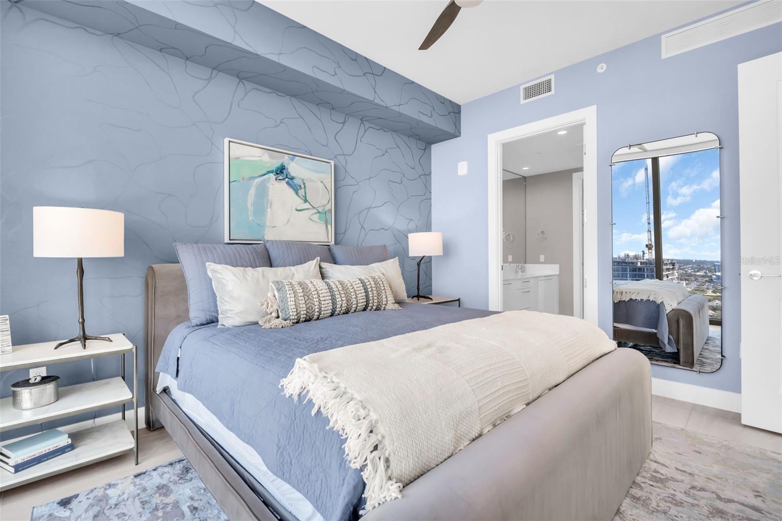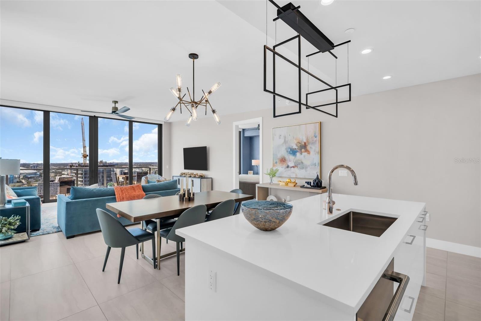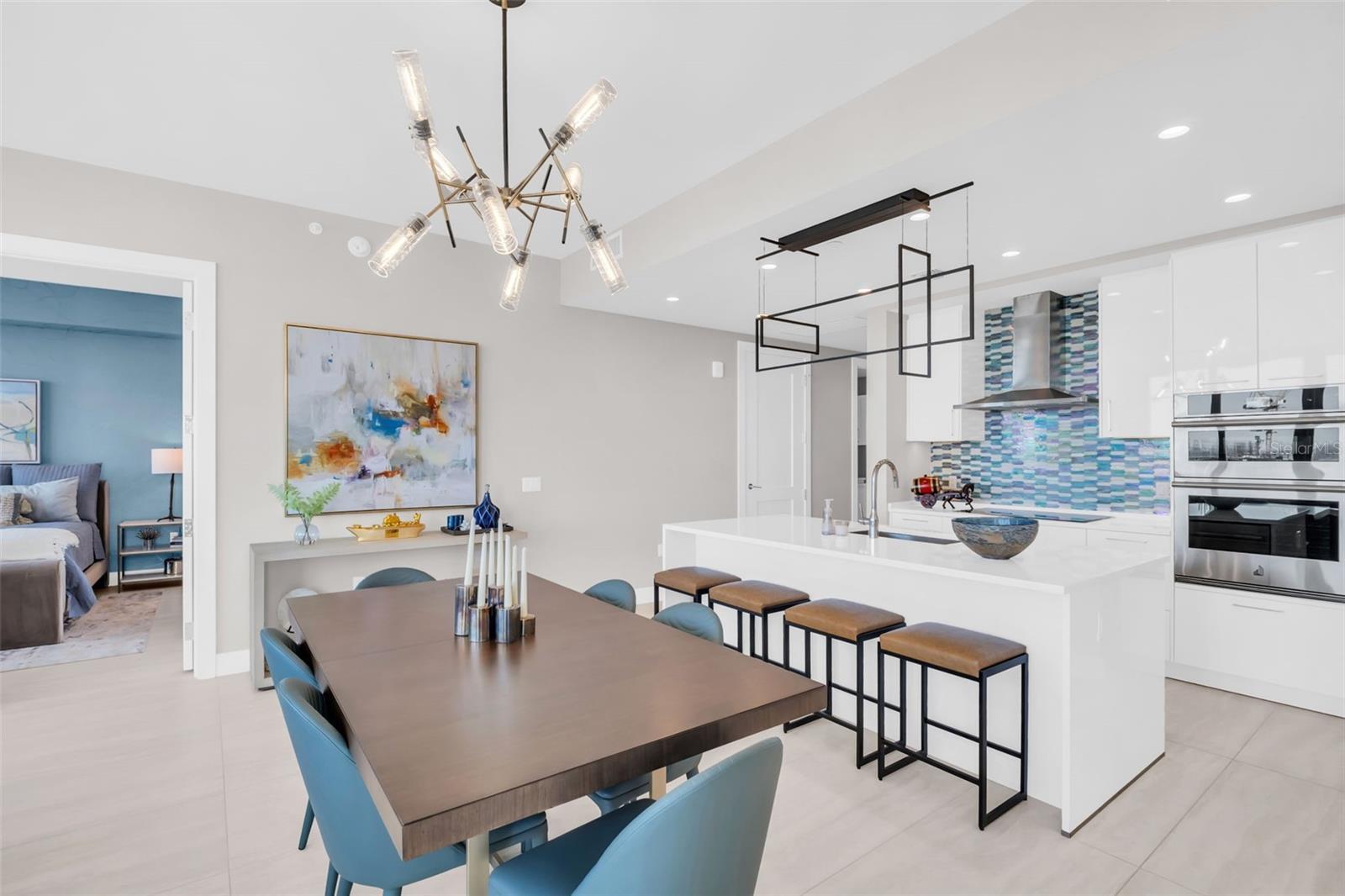 Experience elevated downtown living in this professionally designed 2-bedroom plus den, 2.5-bath residence at Saltaire, offering 1,663 square feet of refined interior space and breathtaking, sky-high views. From sunrise over the water and marina to sweeping city skyline vistas and the dynamic backdrop of Albert Whitted Airport, this home delivers a front-row seat to St. Petersburg's most iconic scenery. Inside, sophisticated design and thoughtful upgrades create an effortlessly luxurious atmosphere. Porcelain tile flooring throughout, designer lighting, and high-end wallpapered accent walls elevate the space, while a striking coastal-style backsplash and wine chiller add both beauty and function to the gourmet kitchen. Electric blinds enhance comfort and convenience, allowing you to tailor light and privacy with ease. Furniture is negotiable, offering flexibility for a truly turnkey experience. This residence also includes two convenient parking spaces and a private storage unit, a rare and valuable perk in downtown living. Beyond your front door, Saltaire offers a lifestyle defined by world-class amenities: a resort-style pool and spa, multiple elegant club rooms for entertaining, a full-service fitness center, and a dedicated dog park for four-legged residents. The seventh-floor open-air deck provides panoramic views of Tampa Bay and the downtown waterfront-an unforgettable setting for sunsets and gatherings. Ideally located in the heart of downtown St. Petersburg, enjoy effortless access to waterfront parks, marinas, acclaimed dining, boutique shopping, and cultural destinations just steps away.