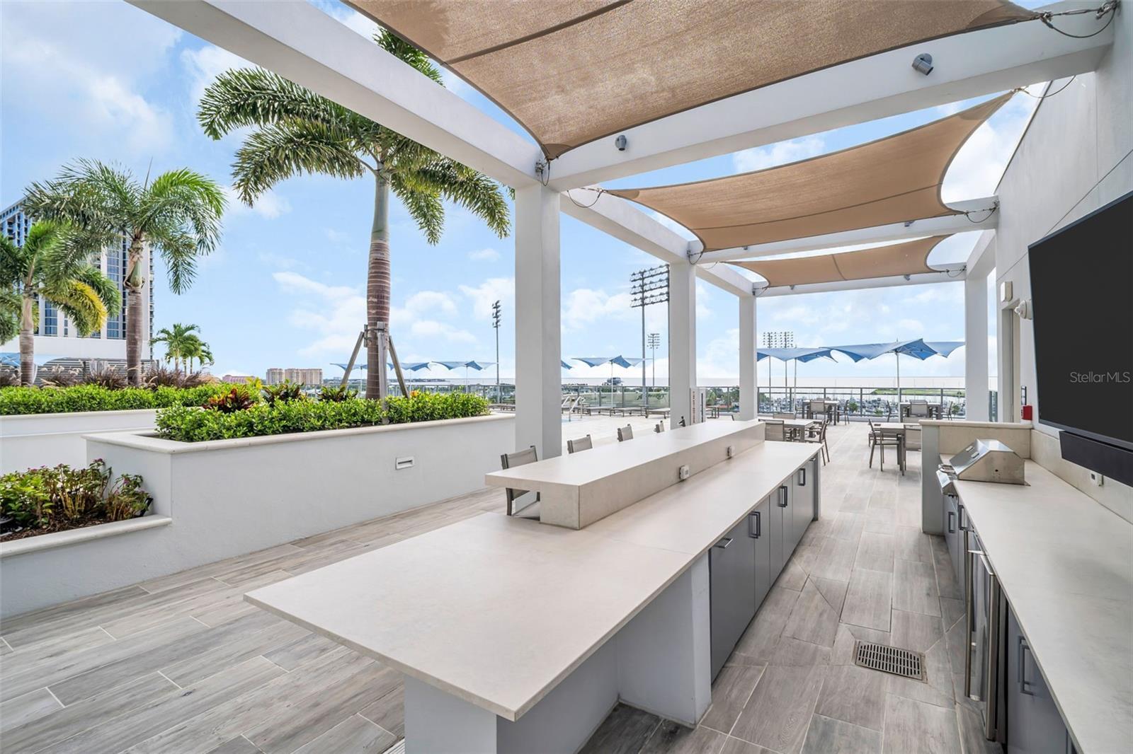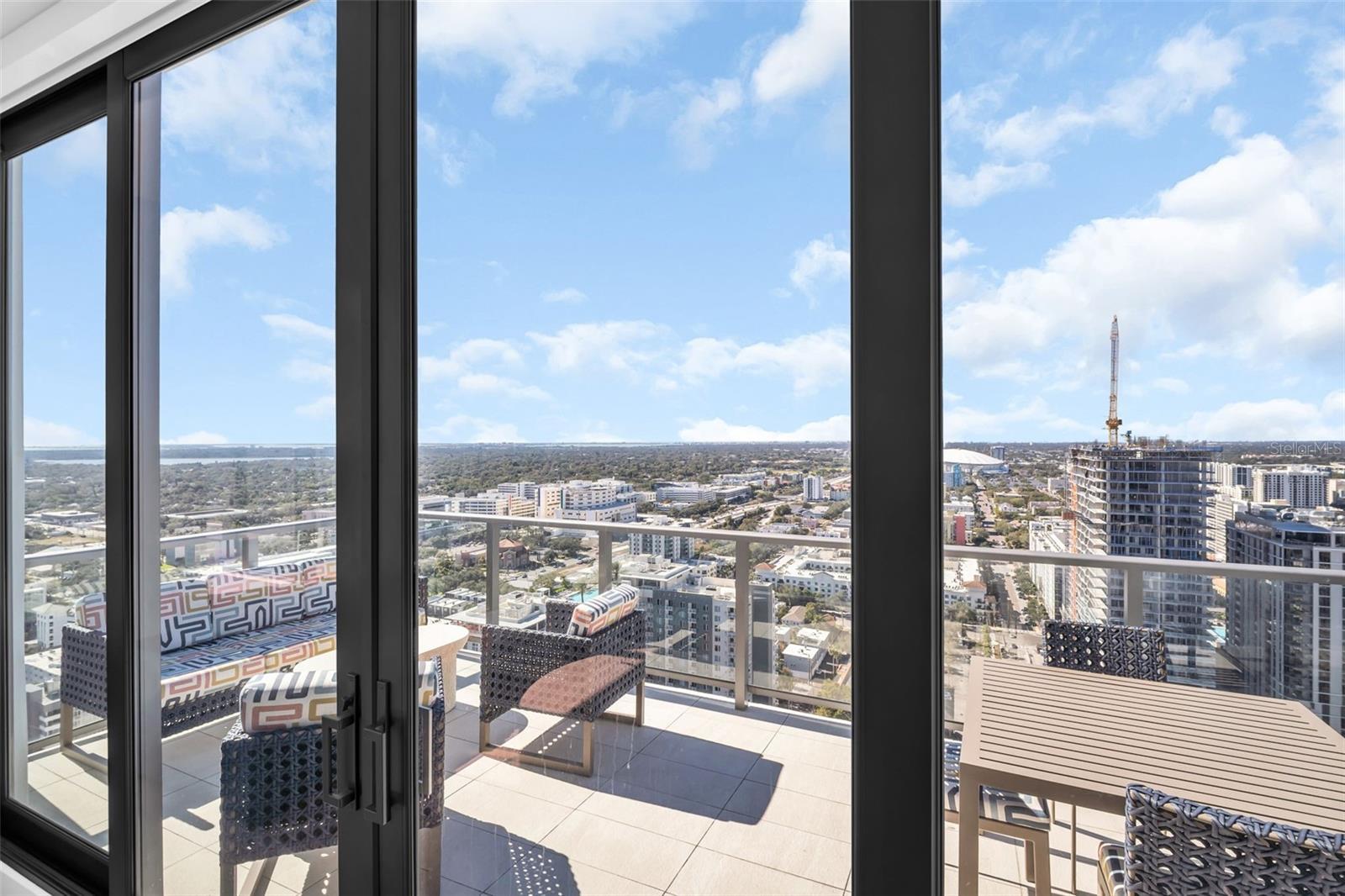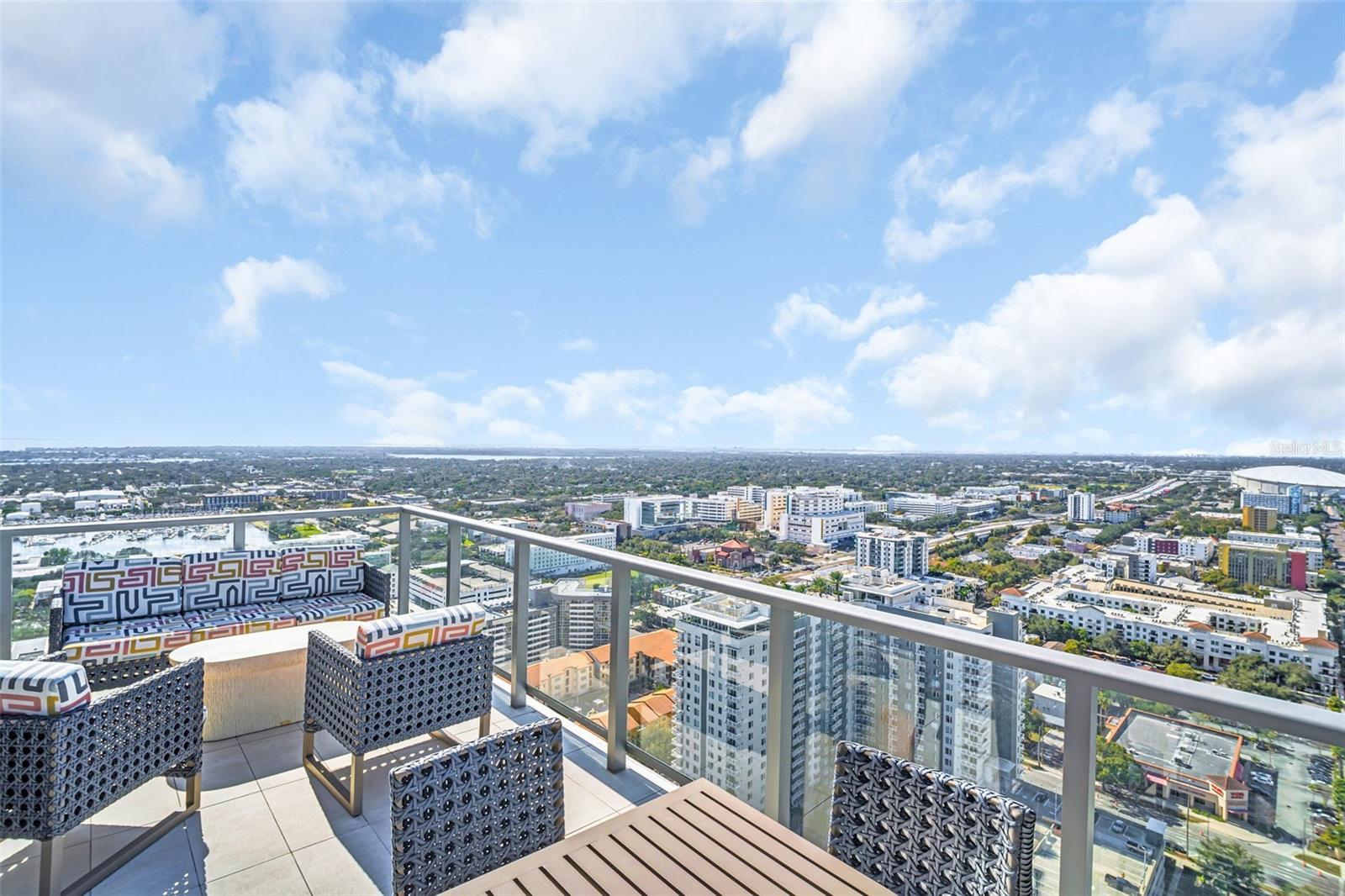 Experience elevated downtown living in this professionally designed 2-bedroom plus den, 2.5-bath residence at Saltaire, offering 1,663 square feet of refined interior space and breathtaking, sky-high views. From sunrise over the water and marina to sweeping city skyline vistas and the dynamic backdrop of Albert Whitted Airport, this home delivers a front-row seat to St. Petersburg's most iconic scenery. Inside, sophisticated design and thoughtful upgrades create an effortlessly luxurious atmosphere. Porcelain tile flooring throughout, designer lighting, and high-end wallpapered accent walls elevate the space, while a striking coastal-style backsplash and wine chiller add both beauty and function to the gourmet kitchen. Electric blinds enhance comfort and convenience, allowing you to tailor light and privacy with ease. Furniture is negotiable, offering flexibility for a truly turnkey experience. This residence also includes two convenient parking spaces and a private storage unit, a rare and valuable perk in downtown living. Beyond your front door, Saltaire offers a lifestyle defined by world-class amenities: a resort-style pool and spa, multiple elegant club rooms for entertaining, a full-service fitness center, and a dedicated dog park for four-legged residents. The seventh-floor open-air deck provides panoramic views of Tampa Bay and the downtown waterfront-an unforgettable setting for sunsets and gatherings. Ideally located in the heart of downtown St. Petersburg, enjoy effortless access to waterfront parks, marinas, acclaimed dining, boutique shopping, and cultural destinations just steps away.