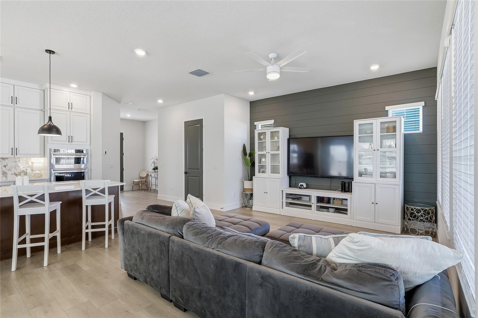 Built in 2025 by the highly respected David Weekley Homes, this exceptional new construction residence blends enduring craftsmanship with refined, magazine-worthy design—set in one of St. Petersburg’s most convenient and connected locations. At the heart of the home is an entertainer’s dream kitchen, thoughtfully designed to anchor everyday living and elevated gatherings. An oversized island with bar seating for four or more invites conversation, while a vented hood, expansive pantry, and beautifully appointed coffee and beverage bar deliver both form and function. Just beyond, the living room is enhanced by custom shiplap millwork, adding warmth, texture, and architectural interest that elevates the space and creates a polished focal point. The open floor plan allows the kitchen, living, and dining areas to flow seamlessly together, enhancing natural light and a sense of ease throughout. A highly desirable feature of the home is the main-level bedroom with an ensuite bathroom and step-in shower, ideal for guests, multigenerational living, or a private home office. Upstairs, the bedroom layout is equally impressive. The primary suite is generously scaled—large enough to comfortably accommodate a private sitting area—and is complemented by a dreamy ensuite bathroom and an idyllic walk-in closet designed for both luxury and organization. Additional bedrooms are well-proportioned and thoughtfully placed, while a versatile loft space provides the flexibility to serve as a secondary TV or game room, personal gym, music room, or art and craft studio. A true standout is the rear-entry, attached two-car garage, featuring exceptionally high ceilings ideal for large vehicles, additional storage, or future customization. Outdoors, the fully fenced yard offers ample space for play, relaxation, pets, and the opportunity to create your own custom pool oasis. Built for peace of mind as much as beauty, the home includes hurricane-resistant windows, durable Hardie board siding, and a remaining transferable builder’s warranty—a testament to David Weekley Homes’ stellar reputation for quality. Perfectly positioned less than 10 minutes from downtown St. Petersburg, and within walking distance to Whole Foods, parks, kayak and boat launches, this home delivers a lifestyle defined by thoughtful design, trusted construction, and refined Florida living.