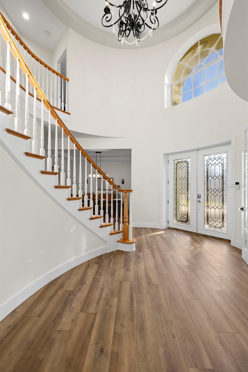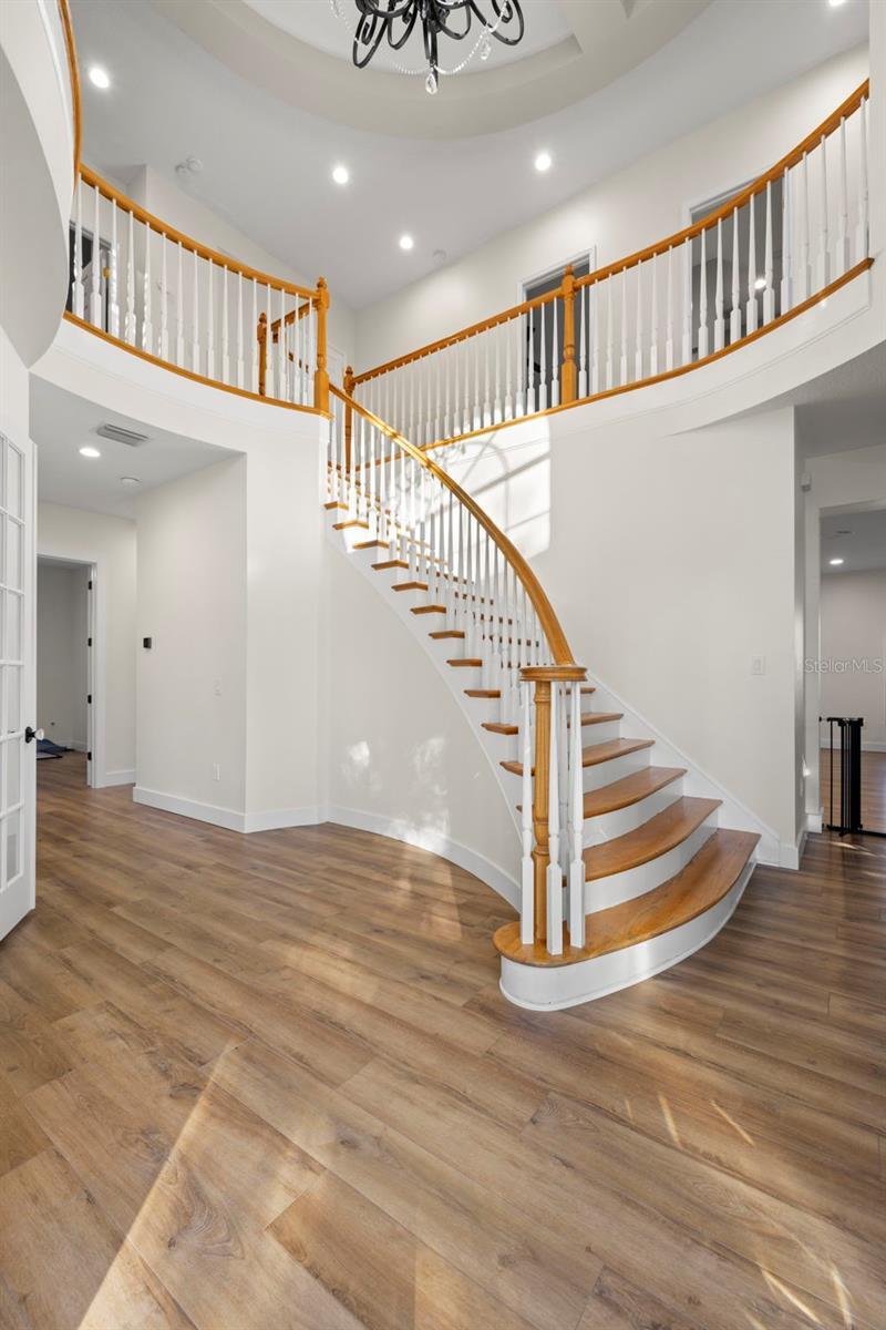 Welcome to Deer Creek! A highly desired, private gated community nestled in the heart of Carrollwood! Situated on one of the largest lots in the community, this meticulously crafted luxury home boasts a large pie shaped lot surrounded by conservation areas on two sides. As you pull onto the oversized driveway, you will notice the beautiful 8ft double door entry which leads into a stunning foyer complete with a 20ft ceiling, grand staircase, and sparkling chandelier. The showstopper of this home is the meticulously remodeled kitchen! Not a detail was missed with the high end stone counters, custom appliances, custom cabinets, extra sink added to the island, and modern fixtures to compliment. This 4,000sqft+ home has 5 oversized bedrooms, and 4 bathrooms well-spaced throughout. The first floor includes a private office with glass French doors, a large formal dining room with enough space to seat a table of 10, an eat-in gourmet kitchen, large family room, 2 bedrooms, with en-suite bathrooms, and first floor laundry! Up the beautiful wooden staircase, is an expansive loft overlooking the foyer, the primary suite which includes two walk-in closets, tray ceilings, a large bathroom with a soaking tub, walk in shower, and private water closet. Also on the second floor are two adjacent bedrooms and one guest bathroom. If the inside wasn't enough, the outdoors space is truly a tropical oasis. You can enjoy the Florida outdoors on the enormous screened in patio that comes equipped with a built-in outdoor kitchen (gas grill, beverage refrigerator, and sink) overlooking the crystal clear swimming pool with a gas heated spa feature. Pool features a salt system (major components replaced by the prior seller in 2020). An expansive backyard has plenty of space to spread out, enjoy the firepit, and there is also a storage shed for all of your toys & hobbies (electric connected). This magnificent home is turn key ready! Don't miss this opportunity to call 2102 Chestnut Forest Dr your home! Additional details: Plantation shutters throughout, electrical outlets & switches all replaced (2025), New downstairs floors (2024), New interior doors- first floor only (2025), New light fixtures throughout (2024), Epoxy garage floors (2025), whole house water softener system (2025), downstairs HVAC replaced (2025), upstairs HVAC (2018), UV light added to both HVAC systems, airduct cleaning (2024), tankless instant hot water heater (2024), roof (2018). Ranchio smart irrigation system. IAqualink web based pool system. Matterport Link: https://my.matterport.com/show/?m=4PPMooqnrme&brand=0&mls=1&