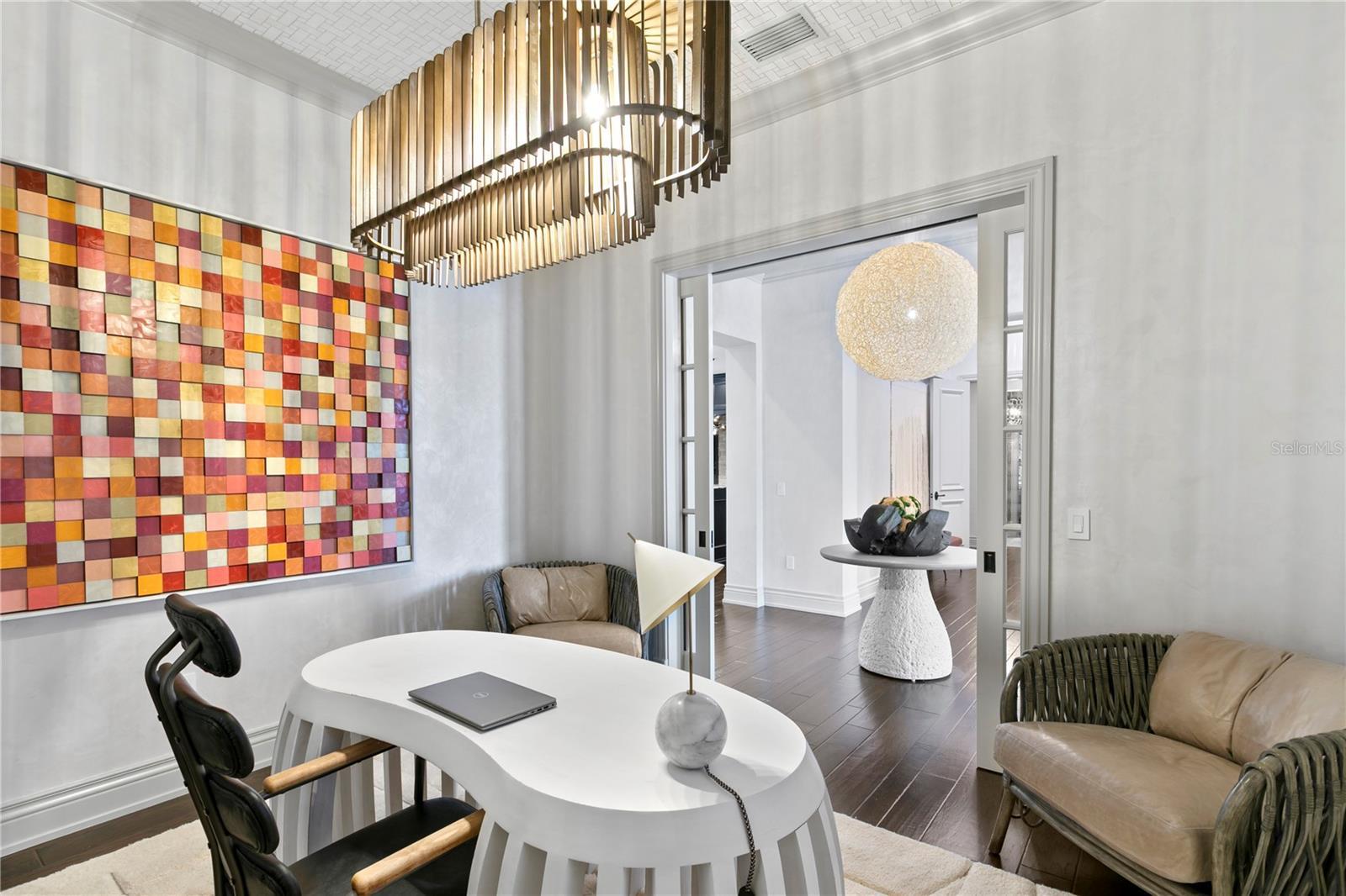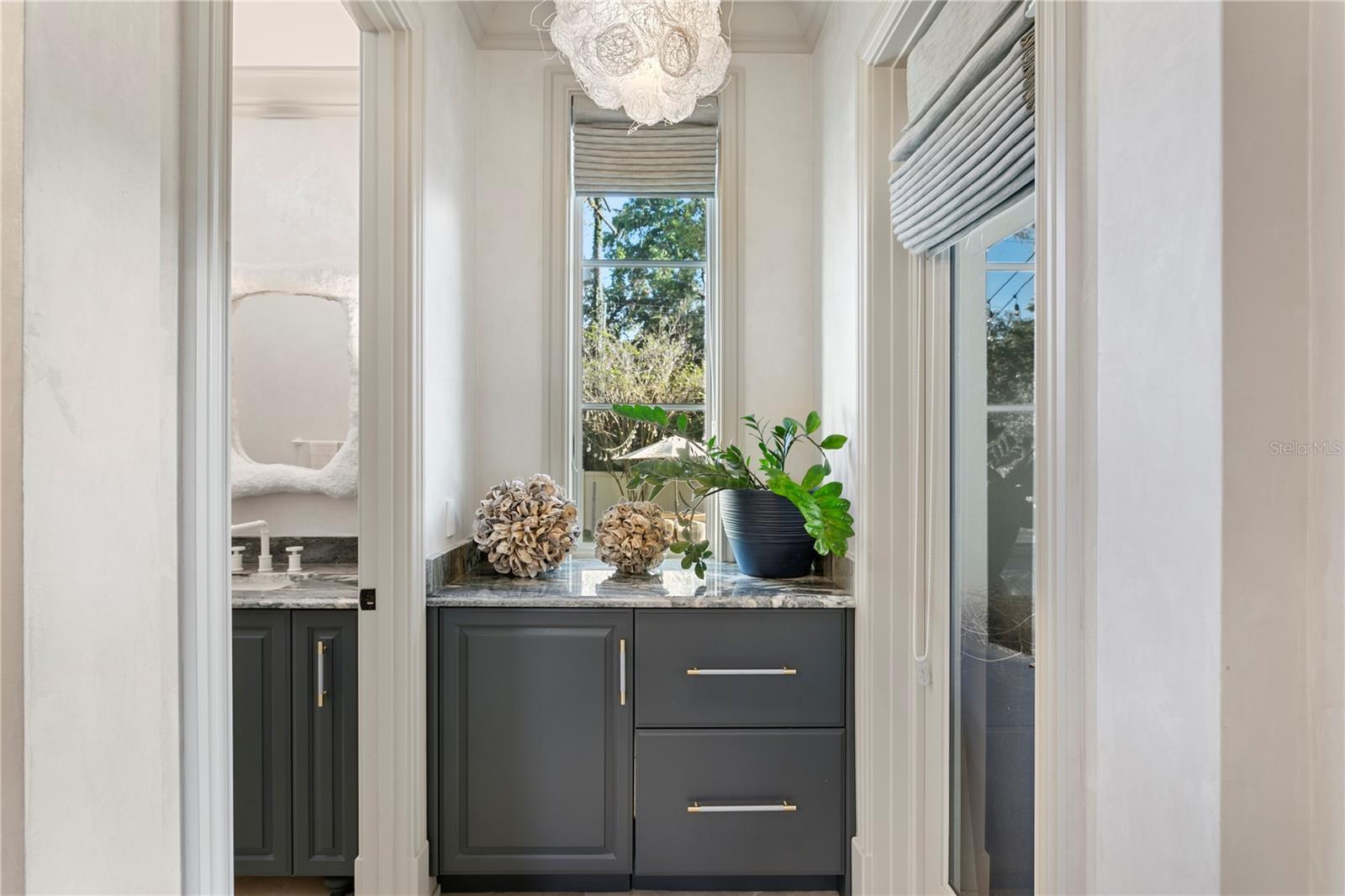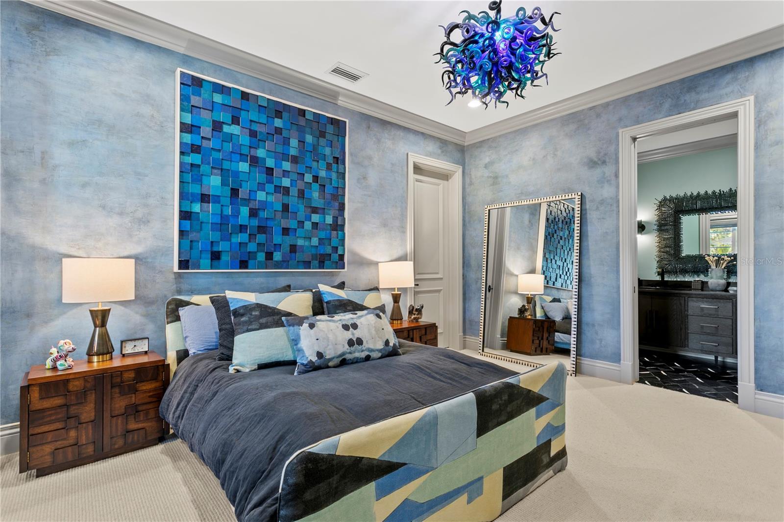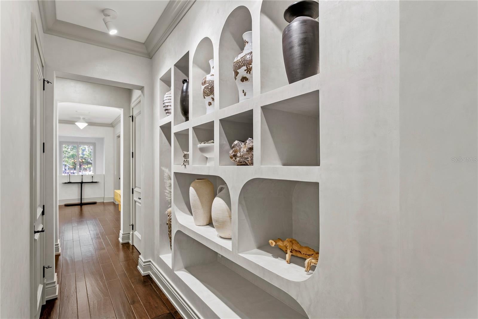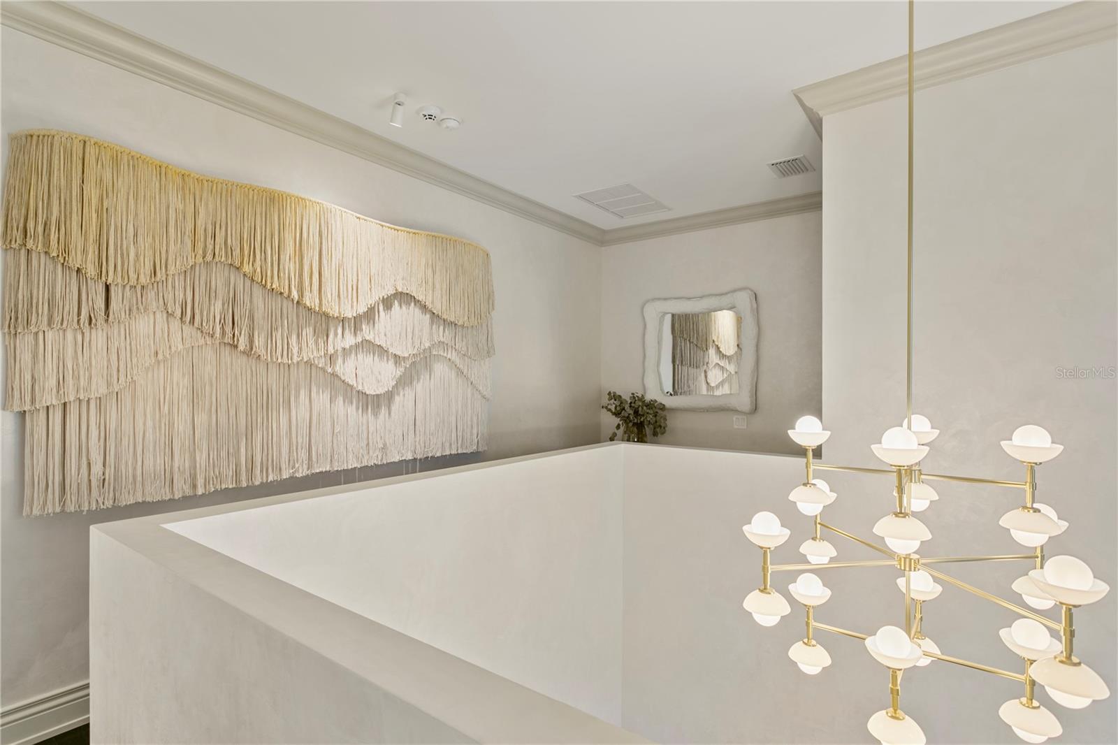 - Built-in Features, Ceiling Fans(s), Crown Molding, Eat-in Kitchen, Elevator, High Ceilings, Open Floorplan, PrimaryBedroom Upstairs, Solid Surface Counters, Solid Wood Cabinets, Stone Counters, Thermostat, Walk-In Closet(s), Window Treatments