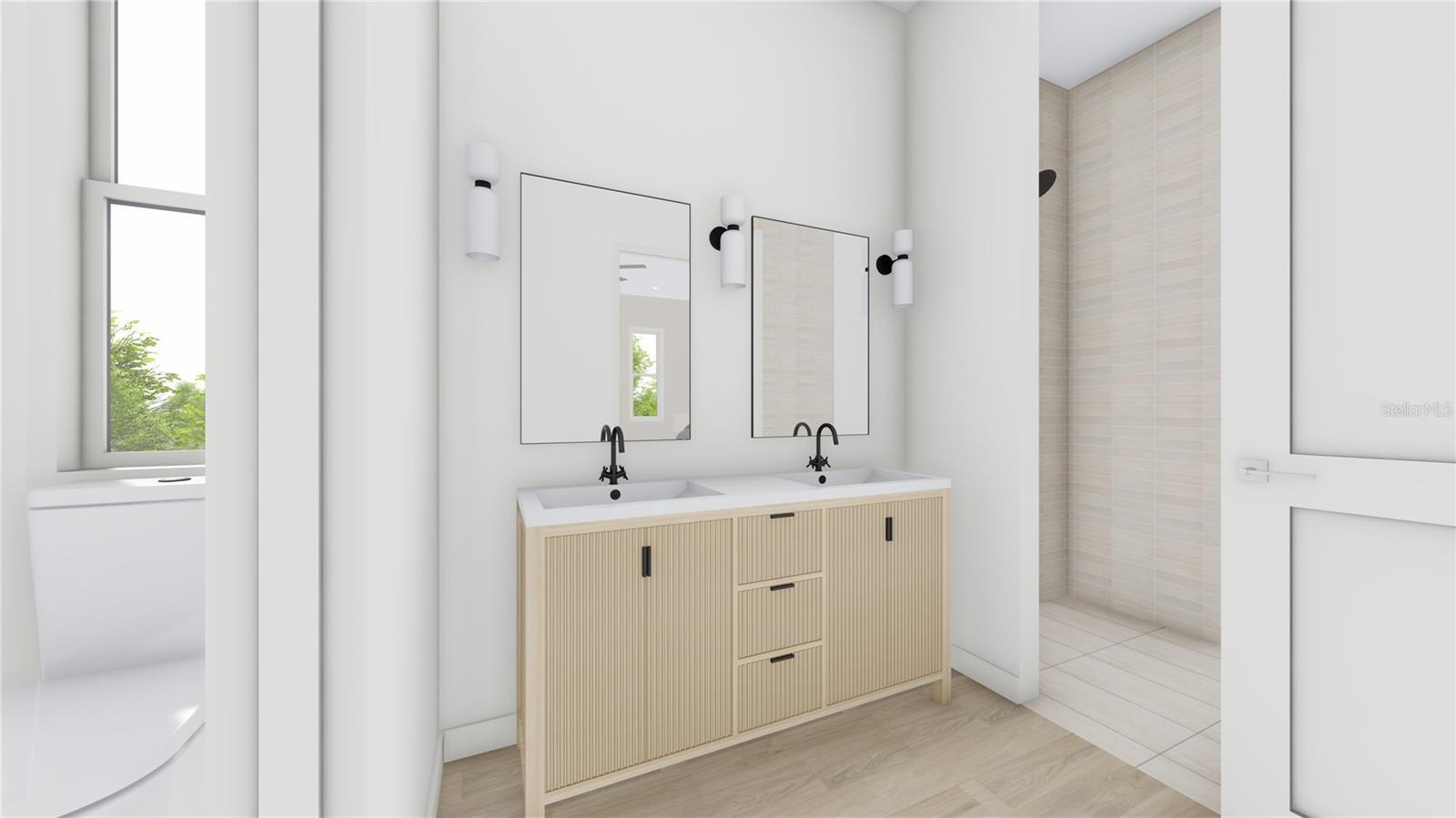 One or more photo(s) has been virtually staged. Under Construction. 1517 Escort Ave is a newly built modern residence that blends clean architecture with a warm, inviting interior palette. A dramatic two-story atrium sets the tone the moment you enter, filling the main living area with natural light and creating a sense of openness that carries throughout the home. The first floor features an effortless flow between the kitchen, dining, and living spaces, making it ideal for both everyday living and entertaining. The kitchen pairs soft, modern cabinetry with warm wood tones and a contemporary backsplash, creating a refined yet comfortable centerpiece for the home. Wide-plank French oak flooring runs throughout, complemented by matte black accents and a cohesive neutral color scheme that feels both current and timeless. Upstairs, the primary suite offers a spacious retreat with dual closets and a beautifully finished bathroom, while three additional bedrooms—including one with its own ensuite—provide flexibility for family, guests, or a dedicated office. A loft adds another layer of usable space, perfect for a lounge, play area, or work zone. Thoughtful tile selections and clean, modern finishes define each bathroom, and the powder room adds a boutique touch with its vertical accent wall. Outside, the home presents a soft, modern façade with layered siding textures and a balanced, coastal-inspired palette. With 2,530 square feet of living space, a two-car garage, and a quiet location with quick access to Tampa’s key destinations, this home delivers a refined living experience with the convenience of new construction. Plans and a full finishes lookbook are attached for reference.