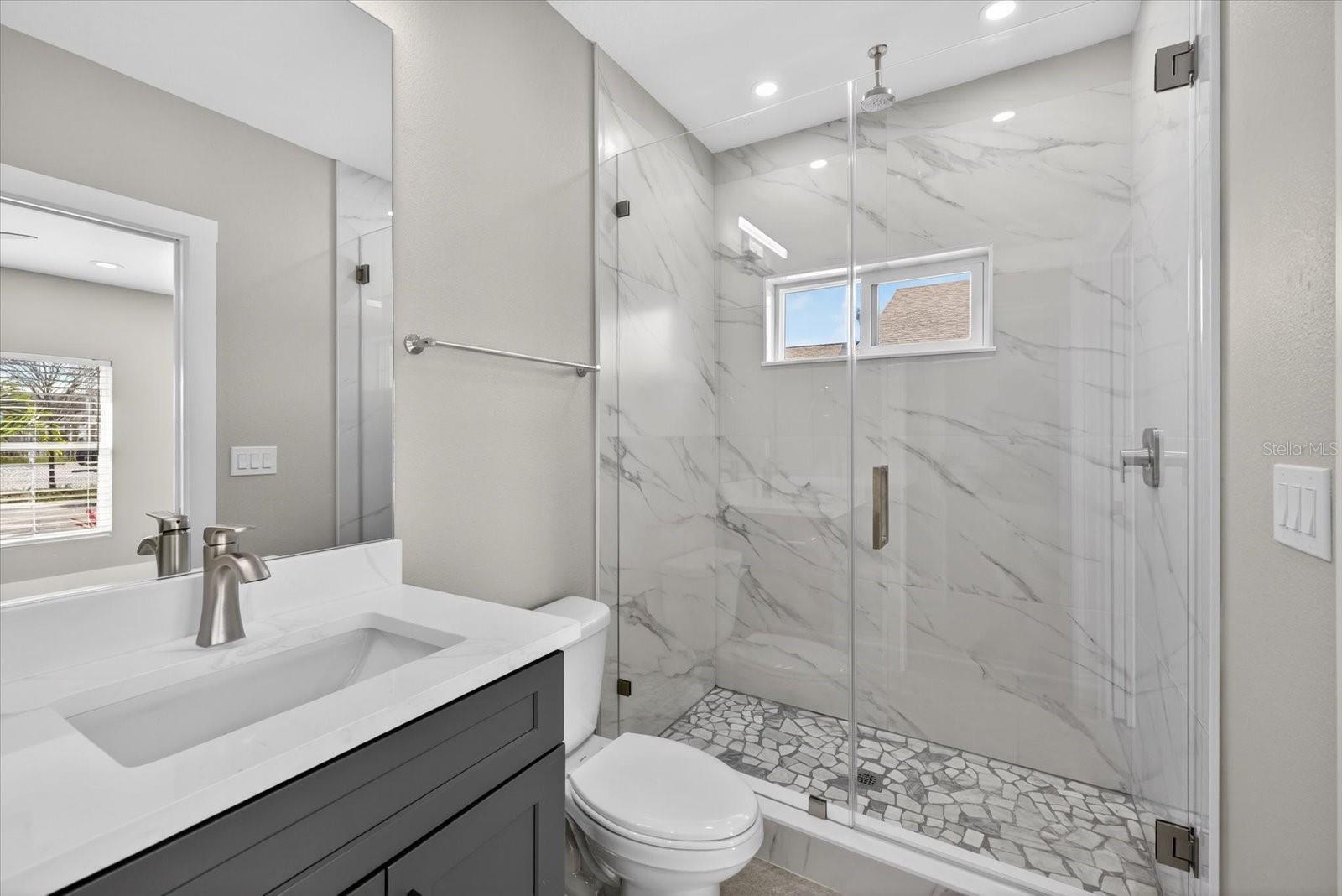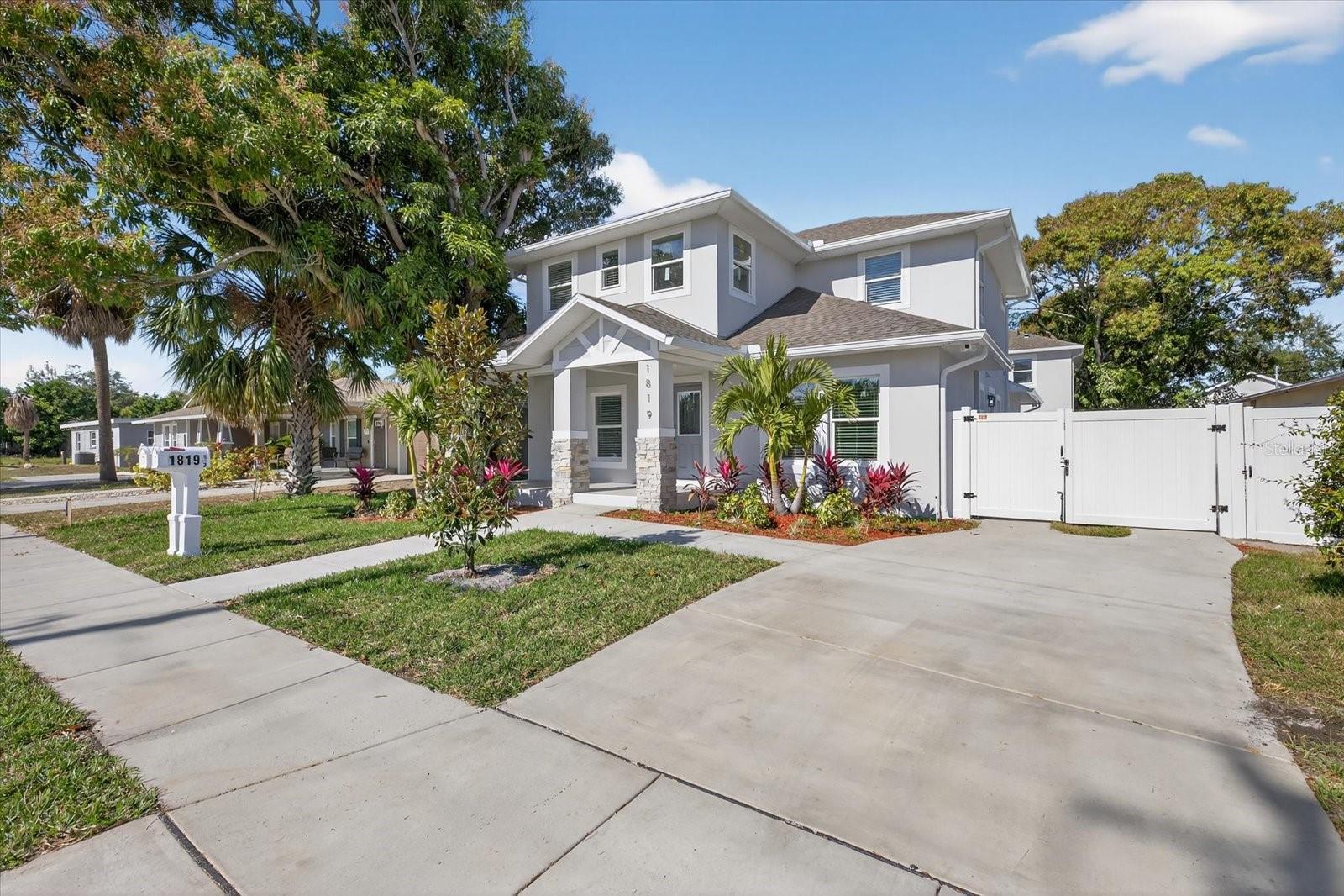 For your consideration [SEE BELOW]: Welcome to an exceptional investment opportunity in the heart of St. Petersburg. This new construction property features a main house with 5 bedrooms and 5.5 bathrooms, complemented by a detached two-car garage with a private Accessory Dwelling Unit (ADU) above. Conveniently located, the home is just one mile from Downtown St. Petersburg and Tropicana Field, and less than a mile from Bayfront Health and Johns Hopkins Hospital. Additionally, the property is situated outside of a flood zone and is only 10 miles from St. Pete Beach. The main house offers a functional open floor plan with luxury vinyl plank (LVP) flooring and abundant natural light. The first floor includes a master suite and a guest suite with walk-in closets, ideal for multi-generational living. The master bath features a dual quartz vanity, a dedicated makeup station, and a glass-enclosed wet area with a freestanding tub and rain head shower. The gourmet kitchen is equipped with wood cabinetry, quartz countertops, stainless steel appliances—including a separate cooktop, hood, and wall oven-microwave combo—an undercounter wine cooler, and a spacious walk-in pantry. French doors lead to a covered rear patio featuring a custom-built outdoor kitchen. The second floor offers a common loft and three additional bedrooms, each with private bathroom access. The detached ADU is a full one-bedroom apartment with an integrated washer/dryer. It features its own address, private access, and separate electric and water meters, making it an ideal rental opportunity. The property is fully enclosed by a six-foot vinyl privacy fence and includes two remote-access garage doors. Don’t miss the chance to explore this beautiful home. Please note that previous property taxes were based on a vacant lot. For an accurate assessment of taxes for this new construction, please contact Pinellas County.