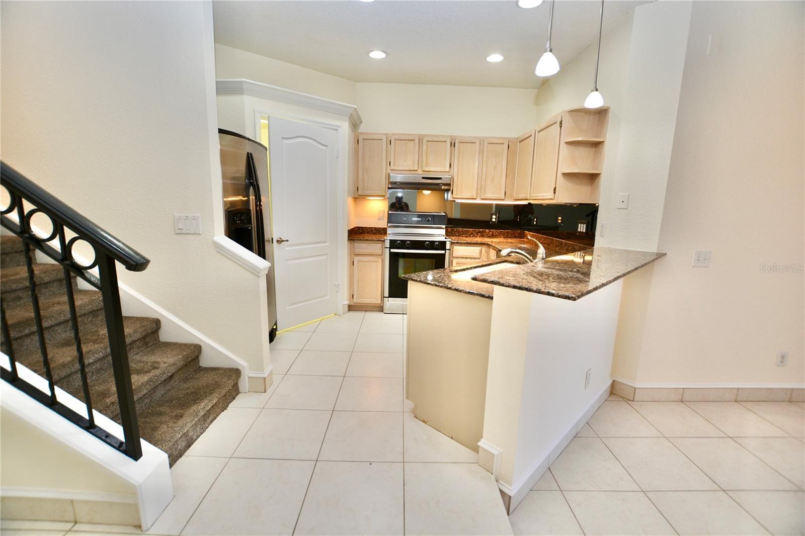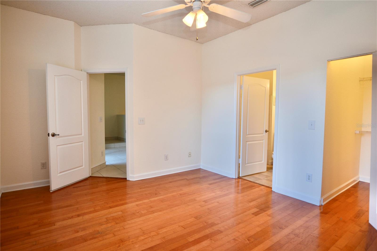 - Built-in Features, Cathedral Ceiling(s), Ceiling Fans(s), Eat-in Kitchen, High Ceilings, Kitchen/Family Room Combo, Living Room/Dining Room Combo, Open Floorplan, Primary Bedroom Main Floor, Solid Surface Counters, Solid Wood Cabinets, Split Bedroom, Thermostat, Vaulted Ceiling(s), Walk-In Closet(s)