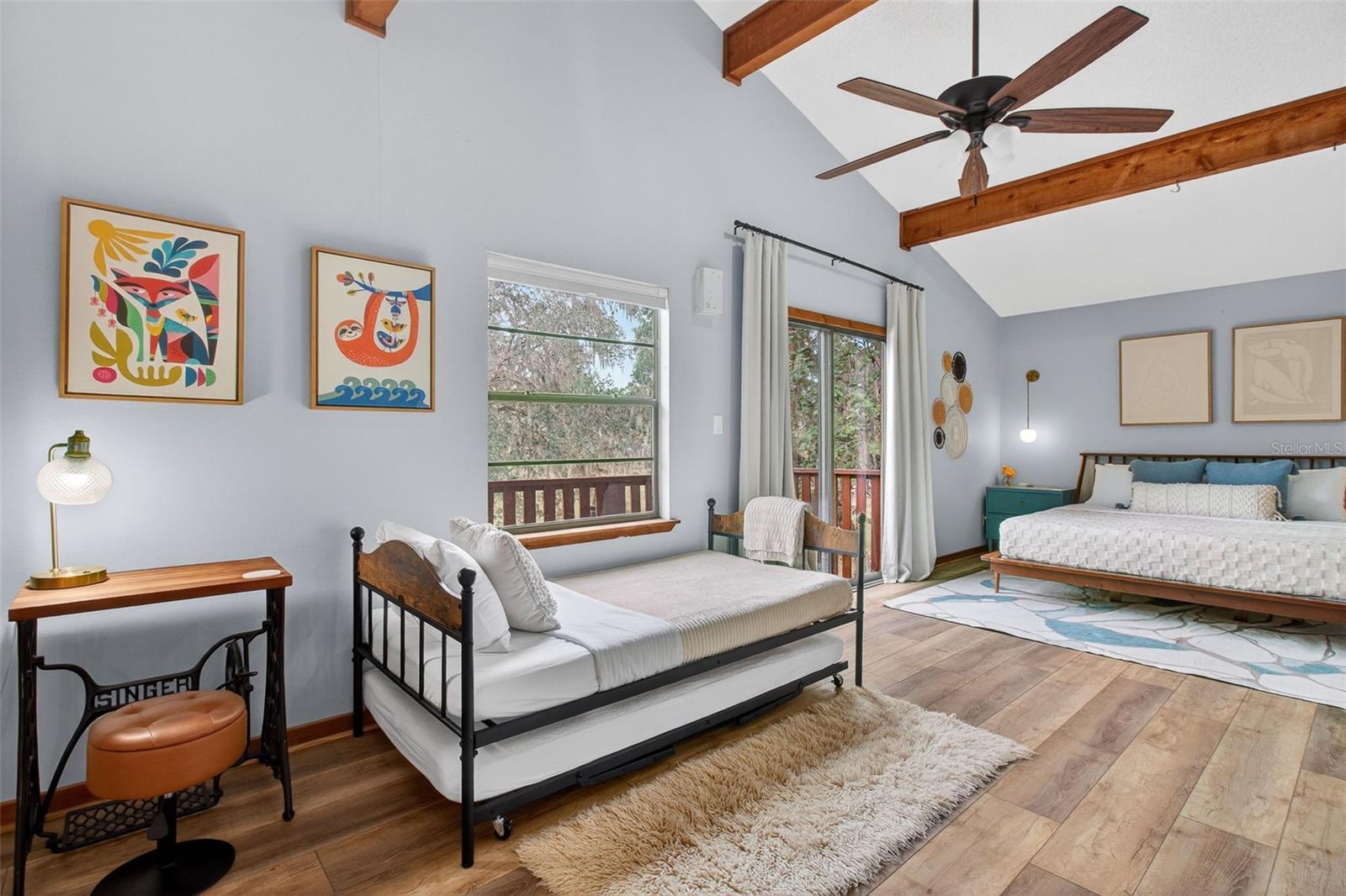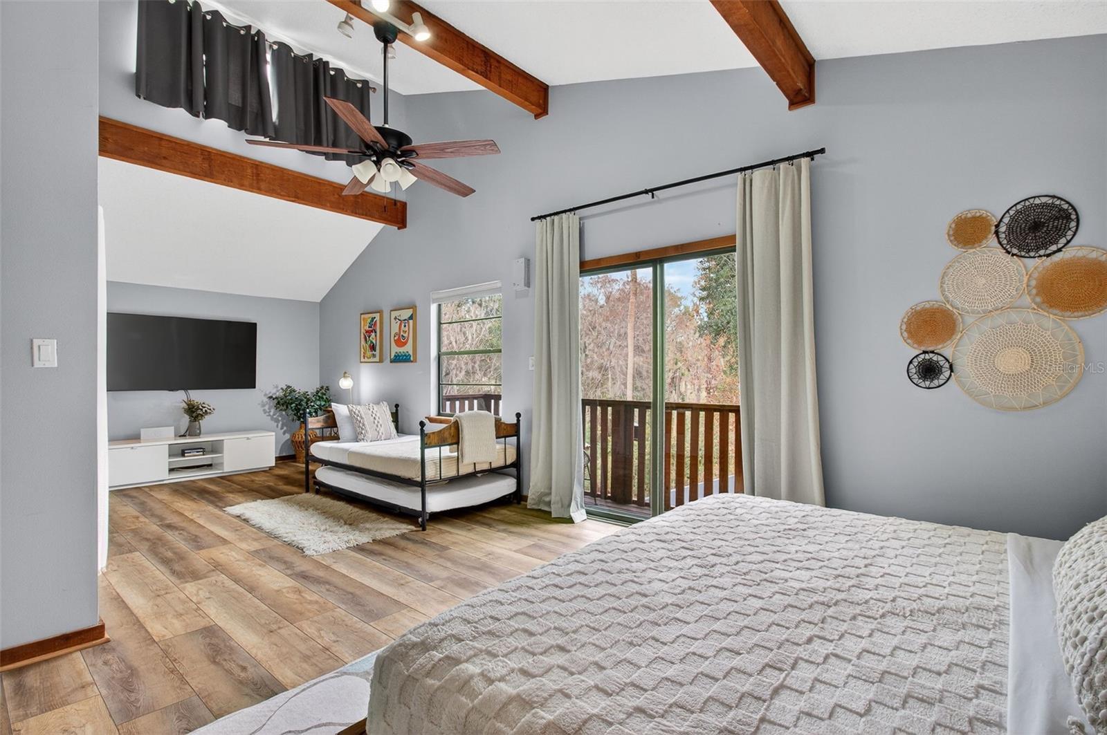 Under contract-accepting backup offers. Just 35 minutes from Tampa, down a quiet drive and behind a private gate, awaits a rare and remarkable retreat: 10.1 secluded acres with no HOA, a fully stocked pond, creek, and wildlife - all wrapped around a lovingly maintained, one of-a-kind custom home. And yes, it even comes with its own ATV and trailer included with the sale. This property is currently a vacation home and is offered fully furnished and turnkey, making it ideal as an income-producing short-term rental, private retreat, or multigenerational compound. Prefer a clean slate? The home can also be sold unfurnished, depending on the buyer’s vision. Built in 1982 and owned by two families, this peaceful property welcomes you with the warmth of a well-loved home and the magic of true Florida nature. Grab your fishing pole and head out to the pond, where tilapia and bass await. Wade through the gentle creek that winds behind the home, or blaze your own trails beyond it - on foot or ATV. With man-made berms along the rear boundary, wide-open fields, and towering trees, the land itself invites you to slow down, breathe deep, and start living. The home rises across three levels, beginning with a ground floor that includes garage space, a carport, and ample storage. The main living area sits on the second floor, where the kitchen, dining, living, and family room flow together with large windows and doors opening to panoramic views. A bedroom with its own bathroom and an additional guest bath make this level ideal for everyday living or multigenerational needs. In 2009, a spacious suite and bath were added to this level (not yet reflected in public records), enhancing comfort and privacy. Upstairs, you'll find three more bedrooms - including the serene primary retreat with its own private balcony and treetop views, along with one shared bathroom. Throughout the second and third floors, vaulted ceilings, exposed wood beams, and new vinyl plank flooring give the home a fresh yet rustic charm. Step outside to the screened-in sitting room or one of two open-air balconies to watch wild life by - and, on rare days, perhaps even a Florida panther. The elevator lift, located next to the carport, provides added ease between two levels. Recent updates totaling over $50,000 include new electrical mains ran, EV charger, outlets and switches, interior paint, ceiling fans, light fixtures, custom blinds, hardware, and both garage and exterior doors + a whole-house water softener and filtration system with reverse osmosis in the kitchen ensures clean, safe water at every tap. Outside, the property continues to shine with a metal roof, three sheds, and a 50-amp RV hookup under the home. The crown jewel? A huge, custom-built pole barn with full electric - perfect for events, weddings, gatherings, RV storage, or your next big project. And for electric vehicle owners, an EV charger is already installed. From hosting friends under the stars to wandering the woods in total quiet, this home is more than a place - it’s a feeling. Private. Peaceful. Free. Yet somehow still just a short drive from city life, shopping, dining, and beaches. Acreage like this, with updates, charm, and soul - so perfectly nestled between Tampa and Orlando - is truly a rare find. Come get your slice of paradise and make it yours - however you want! Schedule your private showing today!