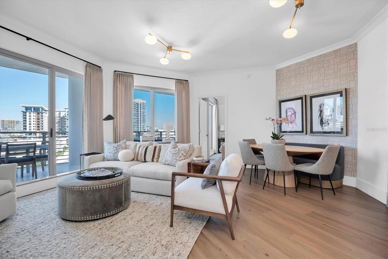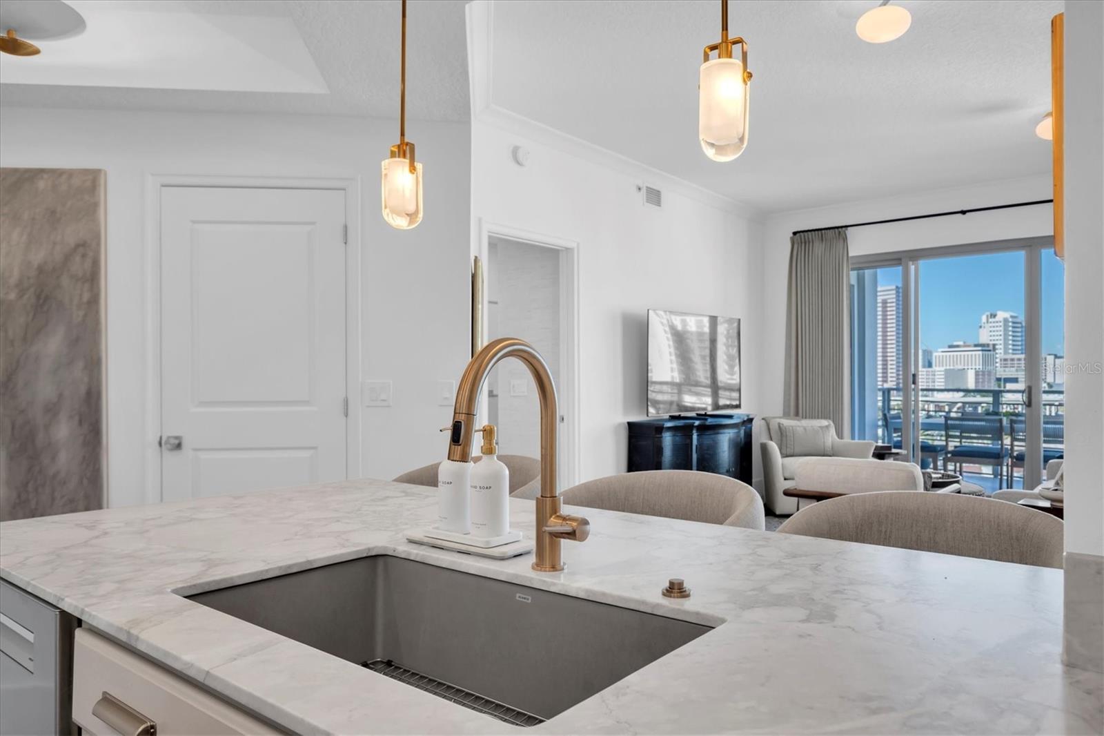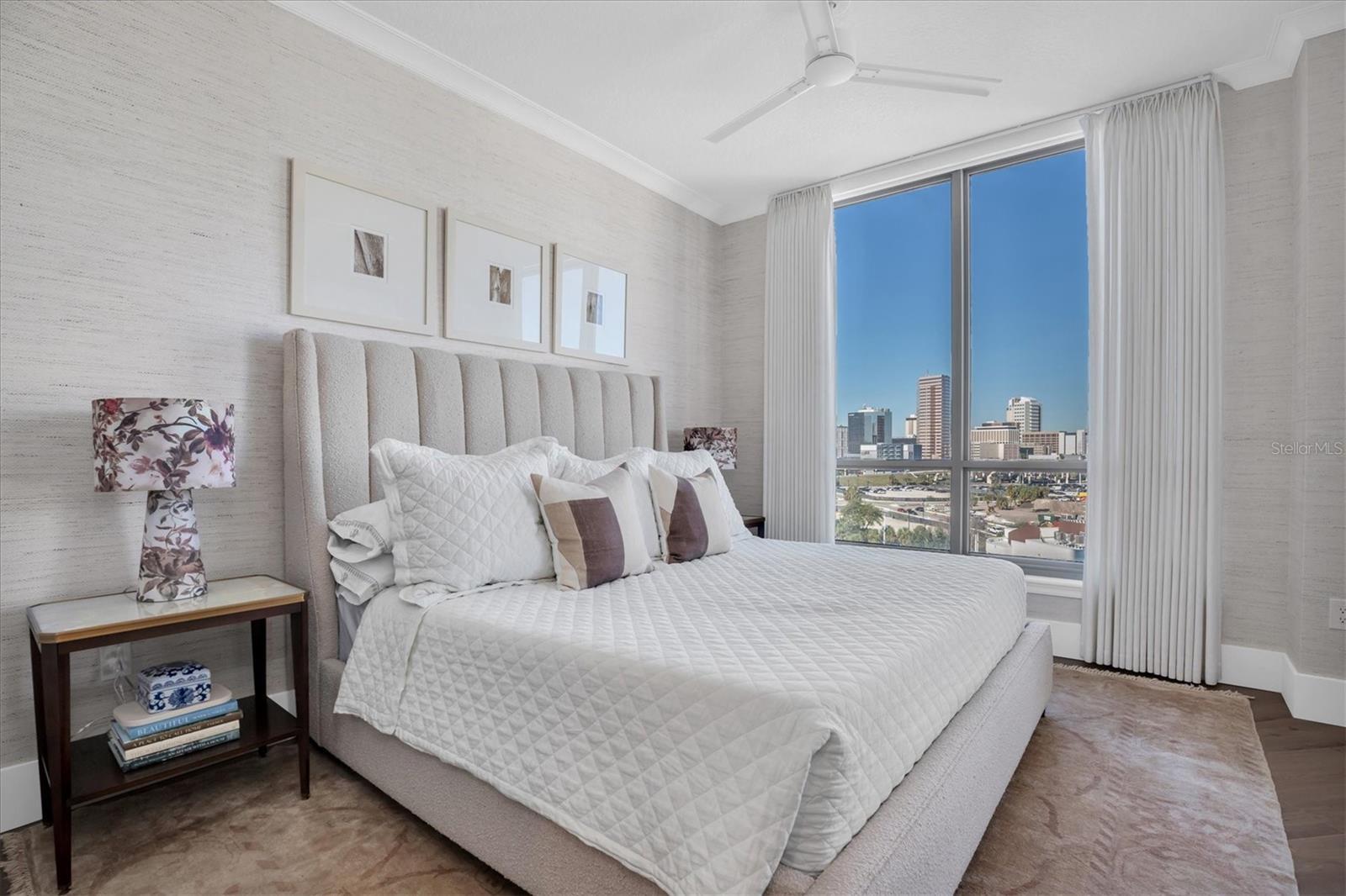 Experience luxury urban living in the heart of Tampa’s vibrant Channelside District. This stunning high-rise condominium is offered TURN-KEY and FULLY FURNISHED, featuring panoramic views of downtown Tampa and the port from floor-to-ceiling doors and a private balcony. The spacious, open-concept layout includes two bedrooms, two bathrooms, and a powder room with designer wallcovering. The modern kitchen is equipped with Bosch stainless steel appliances, an induction range, marble countertops, and designer finishes throughout. This professionally managed complex features fully funded reserves and fully paid assessments for upcoming lobby renovations. Building amenities include a resort-style pool and grotto waterfall, two secure parking spaces, a community room, and a fitness center (coming soon). Located just steps from Sparkman Wharf, the Tampa Riverwalk, and Amalie Arena, this home puts you at the center of the city's best dining and entertainment. Schedule your private tour and experience Channelside luxury for yourself.