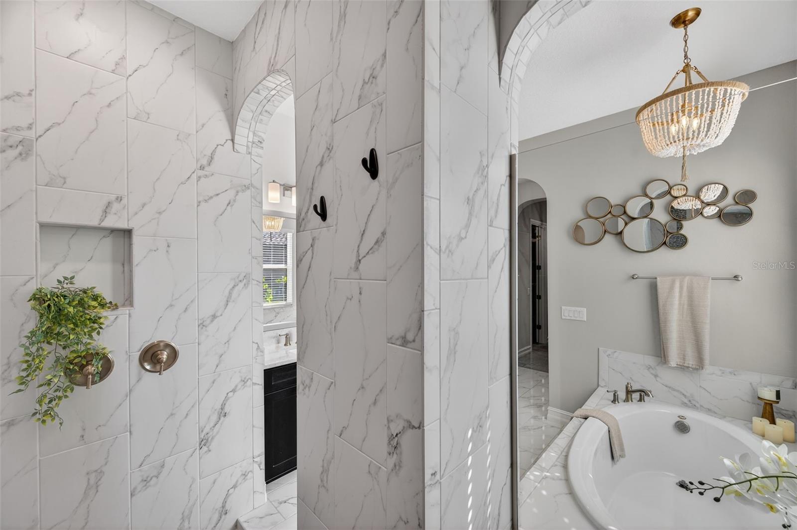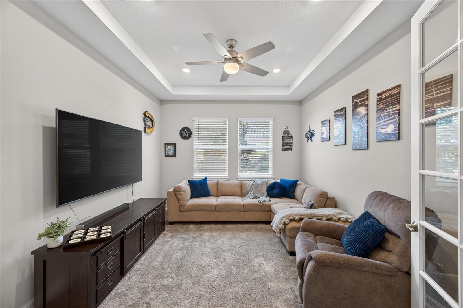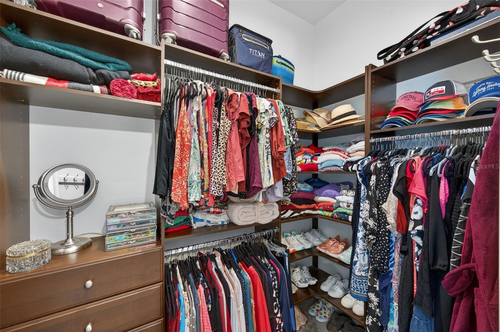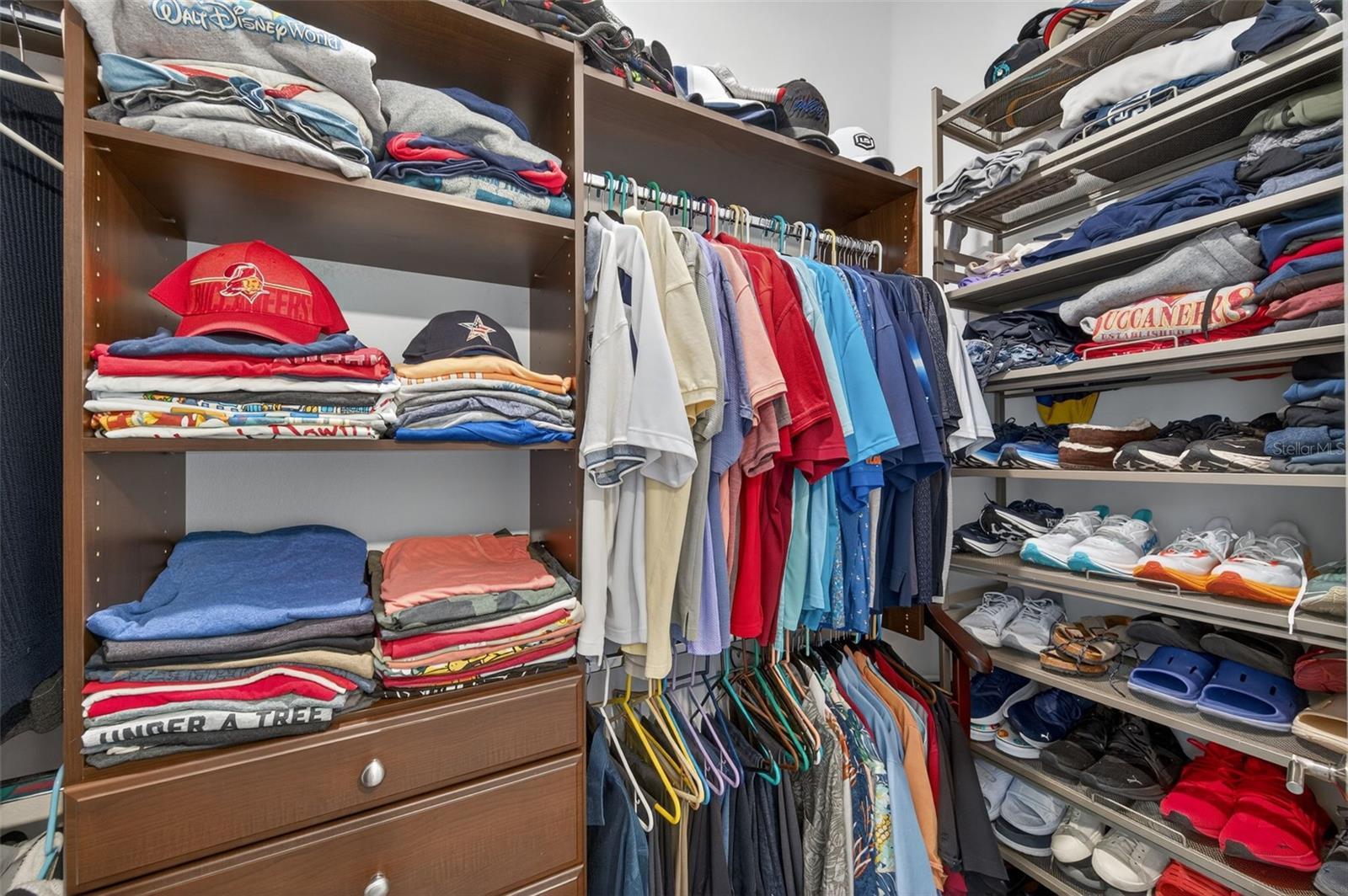 - Built-in Features, Ceiling Fans(s), Eat-in Kitchen, High Ceilings, In Wall Pest System, Kitchen/Family Room Combo, Open Floorplan, Primary Bedroom Main Floor, Thermostat, Tray Ceiling(s), Walk-In Closet(s)