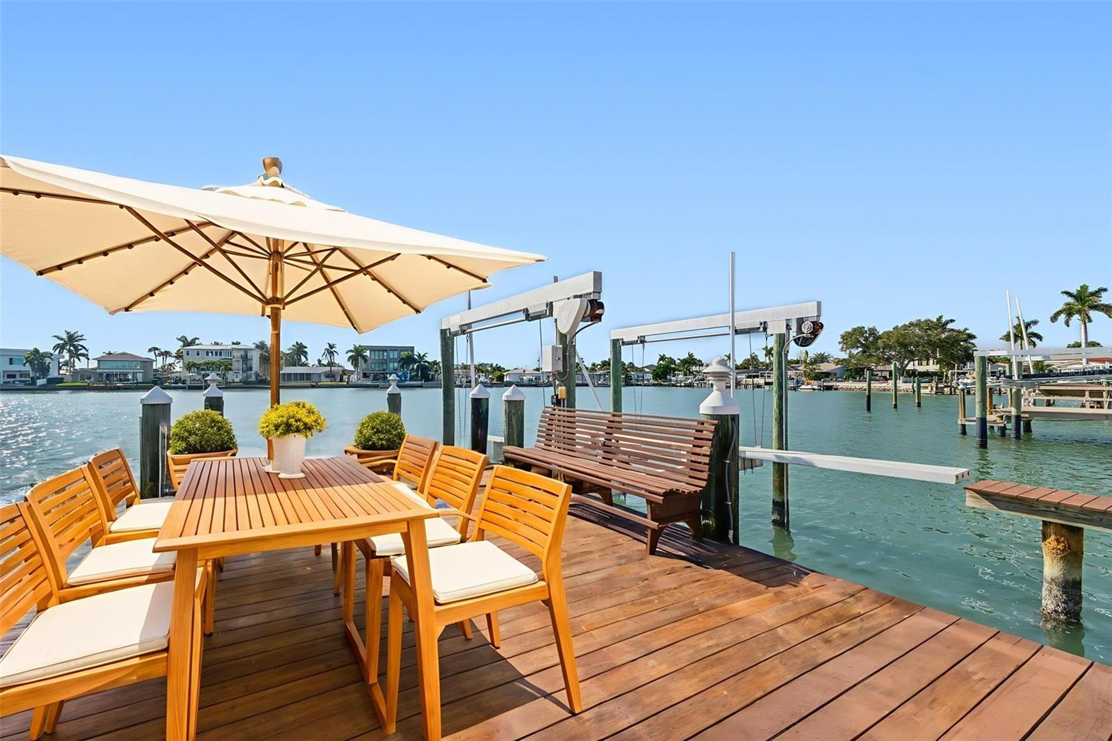 One or more photo(s) has been virtually staged. An exceptional waterfront offering in the desired Yacht Club Estates of St. Petersburg, this fully remodeled coastal residence defines refined Florida living. Encompassing three bedrooms and two baths, the home boasts 70 feet of deep-water frontage with direct access to the Gulf and no fixed bridges, offering a seamless boating lifestyle. A private dock with a 13,000-pound boat lift invites effortless cruising to Egmont Key, Shell Key, and celebrated waterfront destinations. Interiors are thoughtfully designed with open-concept living, elevated finishes, and an effortless indoor-outdoor flow. Outdoors, a resort-style pool and spa, travertine terrace, covered lanai, and professionally curated landscaping create a private sanctuary ideal for entertaining and everyday luxury. A paver drive and two-car garage complete the home’s elegant arrival. Ideally just minutes from Treasure Island’s white sand beaches and the cultural, culinary and nightlife offerings of downtown St. Pete, this residence delivers a rare combination of sophistication, privacy and premier waterfront access.