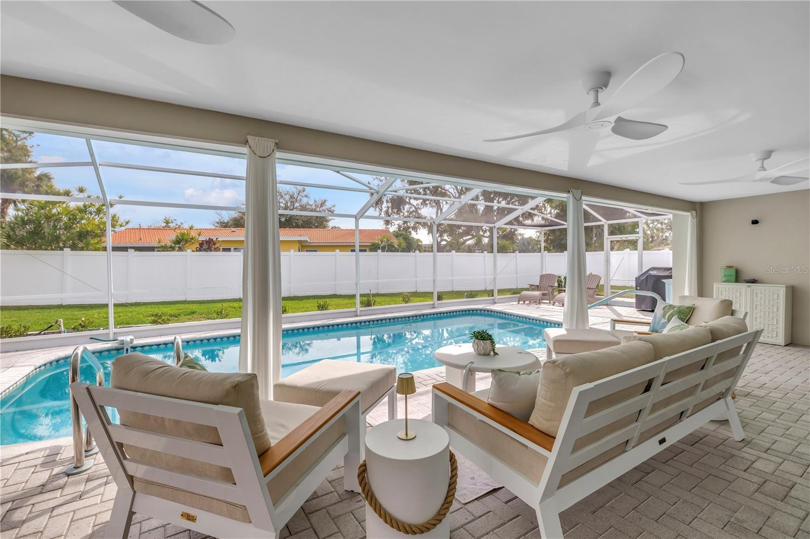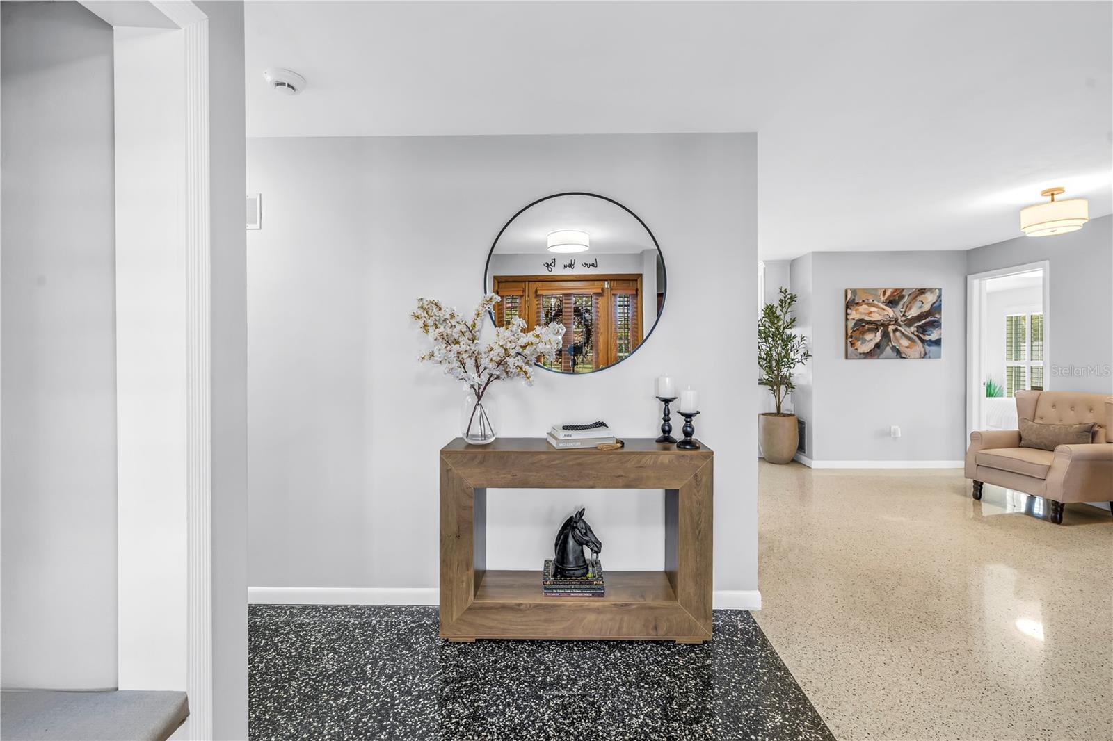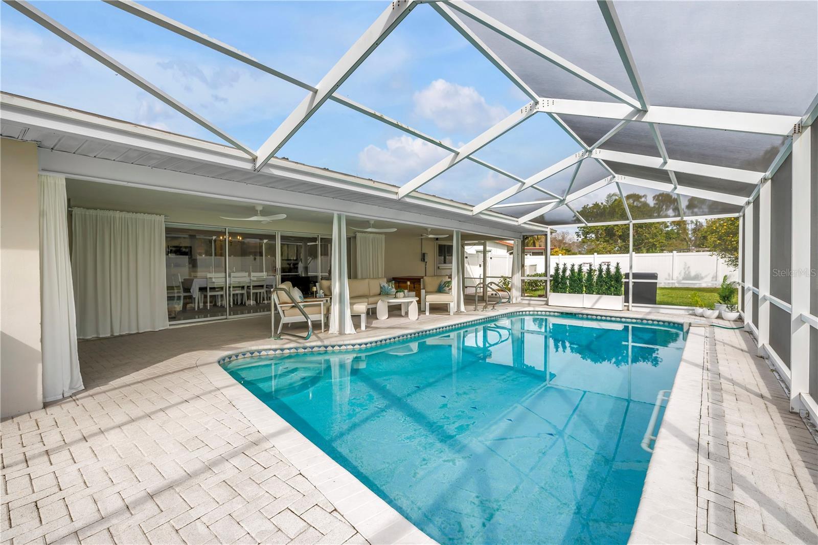 Under contract-accepting backup offers. Welcome to 14546 Anchorage Circle, a beautifully updated, single-level residence offering four bedrooms, three bathrooms, and classic Florida style throughout. Set on one of the largest lots in Imperial Point, this home features gleaming restored terrazzo floors, impact windows, and an elegant tile roof, all designed for comfort, durability, and peace of mind. From the moment you enter through the stained wood, leaded-glass front door, the home feels warm and inviting. The foyer opens to a spacious family room accented by plantation shutters and terrazzo floors that flow through the main living areas. Pocketing glass sliders frame serene views of the screened pool and backyard, creating a seamless indoor-outdoor connection ideal for everyday living and entertaining. The kitchen is both functional and stylish, featuring maple cabinetry, granite countertops, and stainless steel appliances. Its open sightlines allow you to easily watch activity in the pool, hot tub, and backyard, making it a perfect gathering space. The primary suite offers a private retreat with a generous bedroom, a large walk-in cedar closet, and an additional wall of closets. The en suite bathroom, accessible from the pool area, includes dual vanities with ample storage, a walk-in shower with glass tile accents, and a large skylight that fills the space with natural light. The suite is further enhanced by its own mini-split air conditioning system and a dedicated hot water heater. Additional highlights include a large interior laundry room, a whole-house generator installed in 2024, and solar panels that efficiently heat the pool. The property also features a well that supplies the sprinkler system, helping keep the lush landscaping maintained. Major improvements completed in 2017 include the tile roof, flat roof, and pool-heating solar system. The home is located in a non-flood zone and within the highly regarded Seminole school district. Imperial Point residents enjoy access to optional HOA amenities, including a waterfront clubhouse on the Intracoastal Waterway, a community pool, tennis courts, a weight room, library, playground swings, yoga classes, and an impressive range of social and recreational activities. Additional amenities include a boat dock and boat ramp, creating a true coastal lifestyle with something for everyone. This exceptional home offers thoughtful upgrades, quality craftsmanship, and an outstanding lifestyle in one of Seminole’s most desirable neighborhoods.
