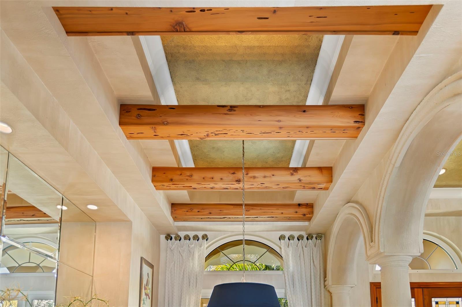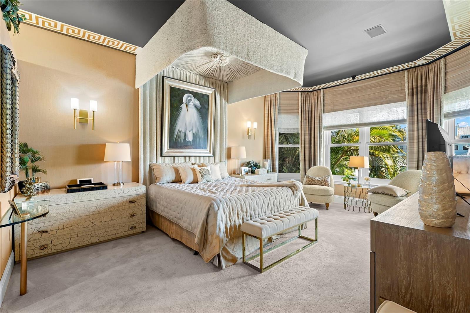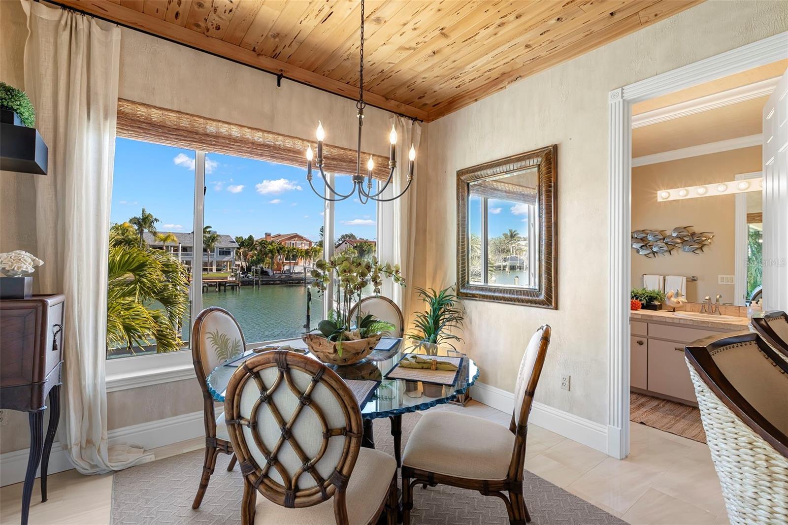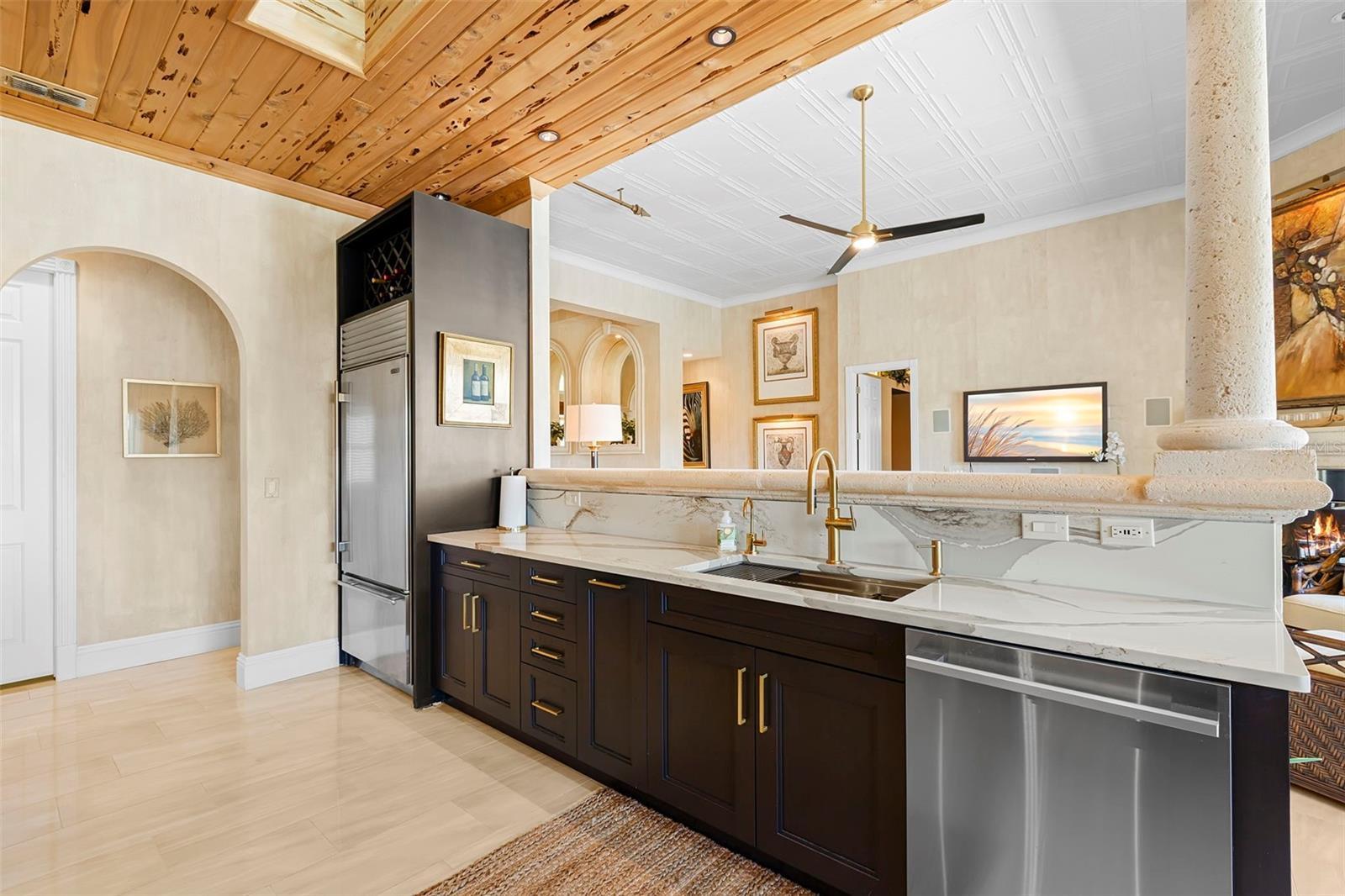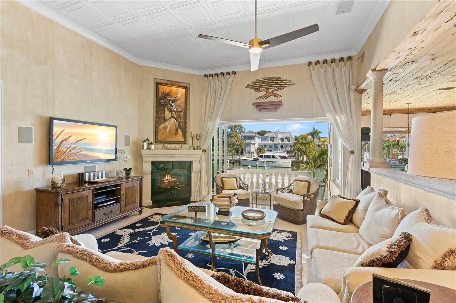 Under contract-accepting backup offers. Perfectly positioned on protected waterfront, this beautifully built custom single-story residence in Tierra Verde redefines easy living with an inviting yet impressive design that truly lives larger than its square footage. Thoughtfully curated for both everyday comfort and effortless entertaining, the home welcomes you with an expansive open great room crowned by soaring 13-foot ceilings and dramatic floor-to-ceiling pocket sliding doors, seamlessly blending indoor and outdoor living. At the heart of the home, the remodeled chef’s kitchen is a striking statement of style and function, featuring rich charcoal shaker cabinetry, a stunning pecky cypress ceiling, and exquisite Cambria Britannica Gold countertops. Top-of-the-line appliances include a Wolf induction cooktop, Sub-Zero refrigerator, beverage fridge, and a built-in Miele coffee system, all overlooking the great room and casual waterfront dining—perfect for hosting or unwinding with the water as your backdrop. The formal dining area is also highlighted with exquisite pecky cypress beams. Designer finishes are found throughout, from fabulous statement lighting to 12x24 tile porcelain tile flooring in the main living areas, custom window treatments, refined trim work, and elegant moldings—every detail thoughtfully selected. The split bedroom floor plan offers privacy and comfort, highlighted by a serene waterfront primary suite with an indulgent, spa-inspired en suite bath. Two beautifully appointed guest bedrooms each enjoy access to their own baths, while a large office or optional fourth bedroom adds flexibility for guests or working from home. Outdoor living has been completely reimagined with expanded composite decking, stainless steel cable railings, and refreshed spaces designed for relaxing, entertaining, and enjoying the coastal lifestyle. Upgrades include a multi-zoned A/C system (2022), refinished PebbleTec pool, hurricane windows, generator, and a newer roof (2018), offering peace of mind and modern efficiency. Boaters will appreciate the updated composite dock, featuring a wet slip accommodating a 45-foot vessel and an additional 13,000-pound lift, providing a safe haven with easy access to the Gulf of America and Tampa Bay. The home’s curb appeal is equally impressive with Chicago paver driveways and walkways, mature tropical landscaping, and a welcoming arrival that sets the tone for what lies beyond. Thoughtfully updated, impeccably maintained, and truly move-in ready—this waterfront home is a must see!