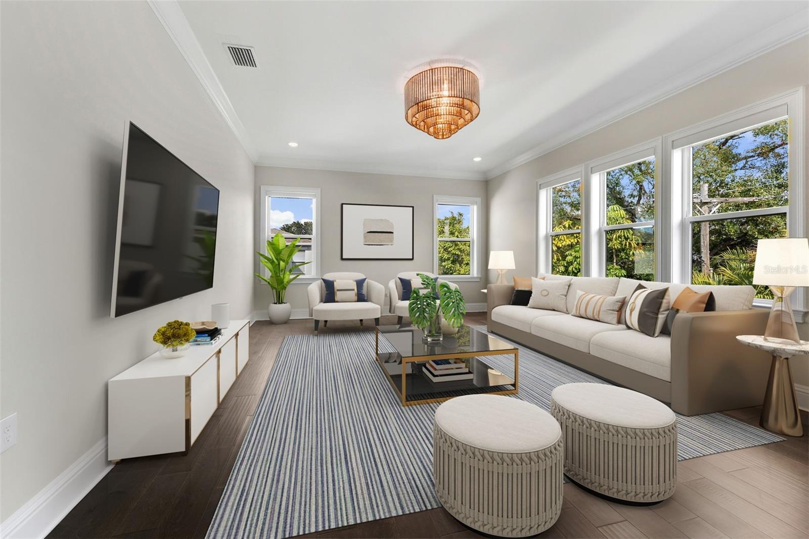One or more photo(s) has been virtually staged. Welcome to 481 W Davis Boulevard, an exceptional luxury residence located on the highly coveted Davis Islands. Built in 2021, this thoughtfully designed home offers over 5,800 square feet of refined living space. It features five bedrooms, five-and-a-half bathrooms, a dedicated office, an upstairs bonus/flex room, laundry rooms on both levels, a split climate-controlled three-car garage, and a dedicated elevator shaft for future installation. Upon entry, you are greeted by a two-story foyer and grand staircase, setting the tone for the refined design throughout. The first floor features 11-foot ceilings and expansive open-concept living and dining areas. Massive 10-foot sliding glass doors in the living room, kitchen, and downstairs suite create a seamless indoor-outdoor flow and flood the home with natural light and fresh air. The gourmet kitchen is outfitted with Wolf and Sub-Zero appliances, a built-in coffee/espresso maker, custom cabinetry, and an oversized island topped with a single solid slab of quartz—perfect for entertaining and everyday living alike. The downstairs suite includes a private entrance and kitchenette, offering exceptional flexibility as an in-law suite, secondary primary, guest quarters, or club room with convenient backyard and future pool-bath access. Upstairs, the home features the primary retreat, three additional bedrooms, a laundry room, and a spacious flex/bonus room. The primary suite is accessed through a private hallway and offers two custom walk-in closets, tray ceilings, and a private balcony. The spa-inspired primary bathroom includes a dual-head walk-in shower, soaking tub, and double vanity. All additional upstairs bedrooms feature en-suite bathrooms and walk-in closets. The backyard offers a large covered lanai, outdoor kitchen with natural gas grill and beverage refrigerator, low-maintenance turf, and space for a custom pool. This home is already equipped with high-end upgrades, including a whole-home generator, impact-rated windows and doors, water softener and filtration system, rare climate-controlled split 3-car garage, 2 EV charging station, Restoration Hardware light fixtures, custom California Closets, reflective privacy film and motorized shades throughout. Seller has provided professionally designed pool renderings, offering future owners the opportunity to add a custom pool if desired. Located in one of Tampa’s most exclusive waterfront communities, Davis Islands offers a truly unmatched lifestyle with walkability to village shops and restaurants, the yacht club, marina, and Peter O’Knight Airport. Just minutes from Bayshore Boulevard, the Tampa Riverwalk, Tampa General Hospital, top-rated schools, and Tampa International Airport. Top rated school zone, Gorrie, Wilson, Plant. Notably, this home sustained no damage or water intrusion from recent storms. Seller’s assumable NFIP flood insurance policy is approximately $1,000 annually.