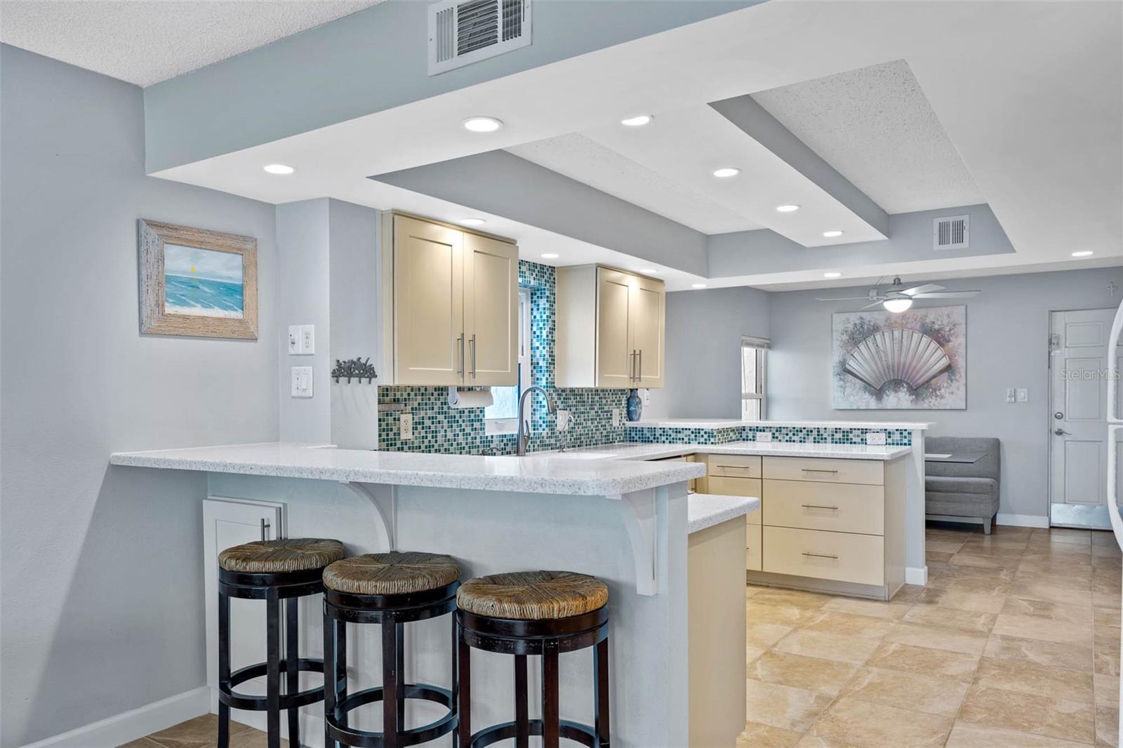 - Ceiling Fans(s), Eat-in Kitchen, Kitchen/Family Room Combo, L Dining, Open Floorplan, Solid Surface Counters, Window Treatments