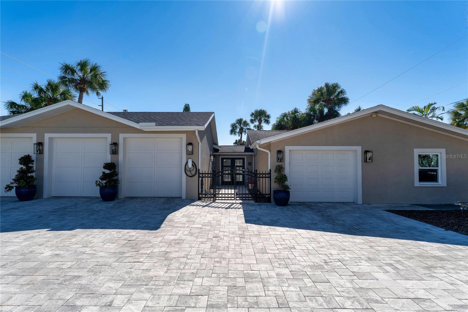 This exceptional North Clearwater Beach residence delivers rare scale, privacy, and infrastructure only a short walk away from North Beach access. About 60 steps from the powder-white sands of the Gulf, this completely reimagined and expanded coastal living oasis awaits you! Situated on a double-sized lot with resident-only parking, the property has been thoughtfully transformed into a private coastal retreat offering flexibility, luxury, and unmatched beachside functionality. Designed for both everyday living and large-scale entertaining, the home features a spacious, open-concept floor plan anchored by dramatic 20 feet of glass panel slider doors that open seamlessly to the rear porch and resort-style courtyard. At the heart of the home is a gourmet entertainer’s kitchen, outfitted with a 48” gas range with 8 burners, dual full-size refrigerators, and a massive center island - ideal for hosting family and friends after a day at the beach. The main residence features three spacious bedrooms, each with en-suite bathrooms, generous closets, and private exterior access to individual patios or seating areas. Complementing the main living space is a dual-entry, private in-law suite, adjacent to the home’s gourmet kitchen, that functions as a fully integrated yet independent living area. Complete with its own bedroom (Bedroom #4), the independent living in-law suite includes a: private bathroom, living area, laundry, exterior access, and dedicated one-car garage, making it ideal for multi-generational living, guests, or extended stays. Extensively upgraded (Permit records available), the home includes newly added garage spaces with a redesigned driveway, two Tesla charging stations, and half-bath addition, resulting in a total of six bathrooms and two separate garages offering four-car parking and ample off-street parking - an exceptionally rare and coveted feature in a beach community. Additional recent improvements include impact-resistant windows and doors throughout, a fully fenced yard, and security camera systems, providing peace of mind without sacrificing the relaxed coastal lifestyle. Lush tropical landscaping surrounds the paver-lined courtyard style backyard, creating a serene, private outdoor environment rarely found this close to the water. Enjoy an unbeatable location just steps to North Clearwater Beach, a leisurely 20-minute or so walk to Frenchie’s Rockaway Grill, the soon-to-be Crabby Bills, or a stroll along the shoreline to Caladesi Island, one of Florida’s most celebrated natural beaches with no vehicle access! This one-of-a-kind property offers the ultimate combination of walkability, privacy, parking, and flexibility.