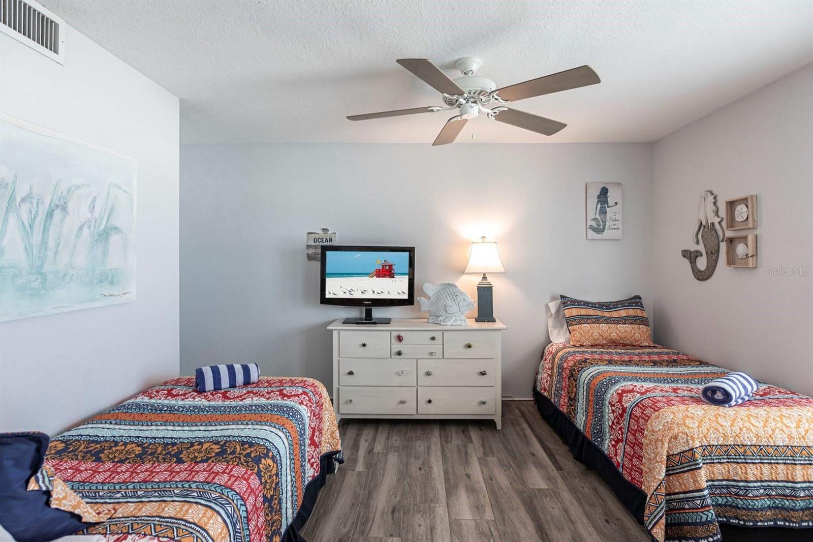Completely remodeled in 2019. Endless Gulf views from every room. TWO queen sized beds in Master, two twins in second bedroom means plenty of space for your family, and everything is new and sparkling clean! Additional Person fees may apply. Enjoy a dip in one of the largest pools on Siesta Key! This second floor apartment has direct gulf views for stunning sunsets of the only beach to be voted #1 twice by Dr. Beach! Walk to Crescent Beach. Village restaurants and shops, with Siesta Key Village just a short drive north on the key.