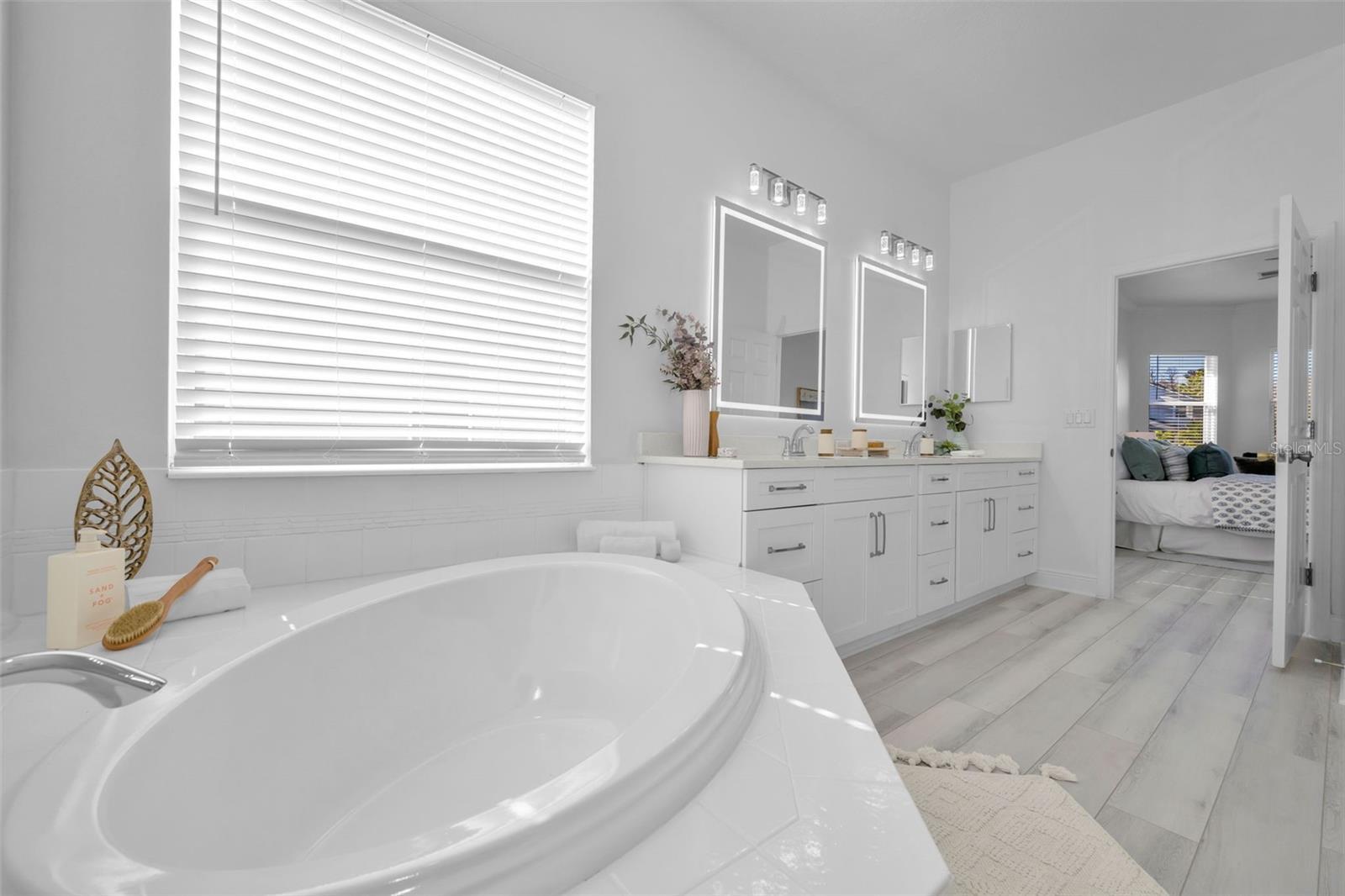 Under contract-accepting backup offers. Experience modern luxury in this stunning, fully remodeled 4-bedroom, 3.5-bathroom estate with heated pool & spa nestled within a premier gated community with top-rated schools. Spanning 3,300 sq. ft. of pristine living space, this home seamlessly blends contemporary design with ultimate peace of mind. The light-filled interior features fresh paint, brand-new luxury vinyl plank flooring, and elegant high baseboards throughout. At the heart of the home is a chef’s dream kitchen, boasting new custom cabinetry, quartz countertops, and a premium stainless steel appliance package with a gas range. The split floor plan leads to a massive first floor primary suite featuring spacious his-and-hers closets and a spa-inspired bathroom equipped with new vanities and anti-fog LED mirrors. Step outside to your private oasis where classic brick pavers surround a sparkling pool and spa, all overlooking a tranquil water view. This home is truly "turn-key" with significant recent capital improvements, including a new roof (2023), dual AC units (2021), and so much more! Combining designer finishes with a functional layout and an unbeatable location, this home offers the lifestyle you’ve been searching for. Schedule your private showing today!