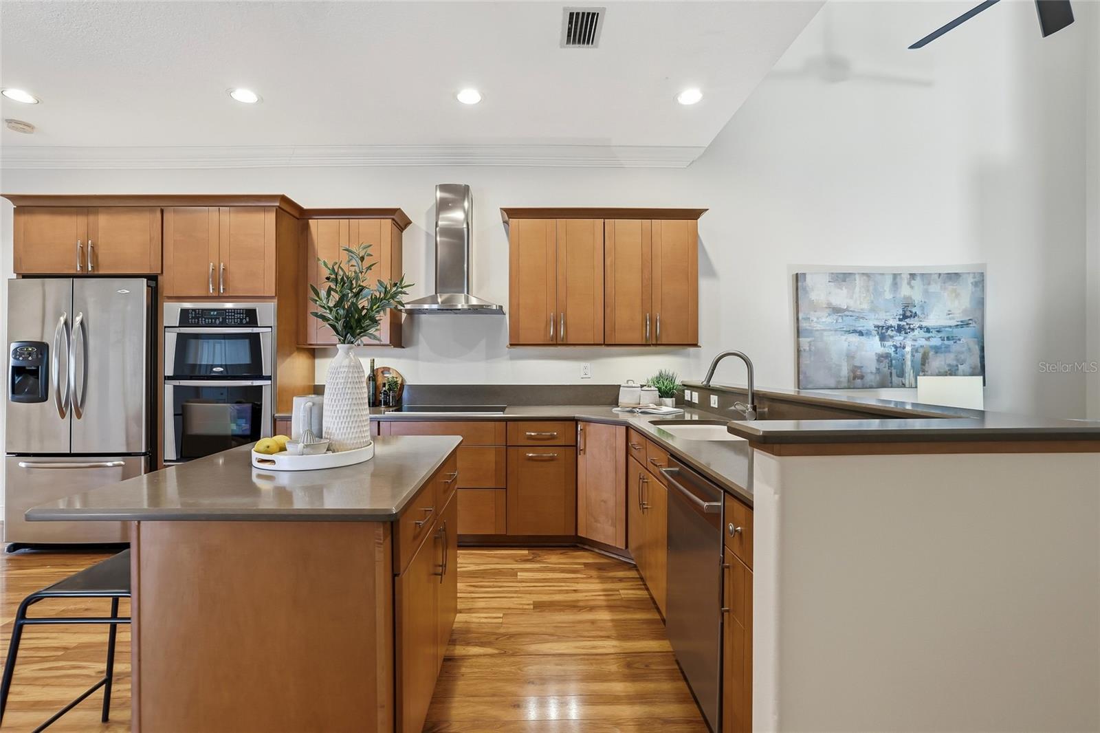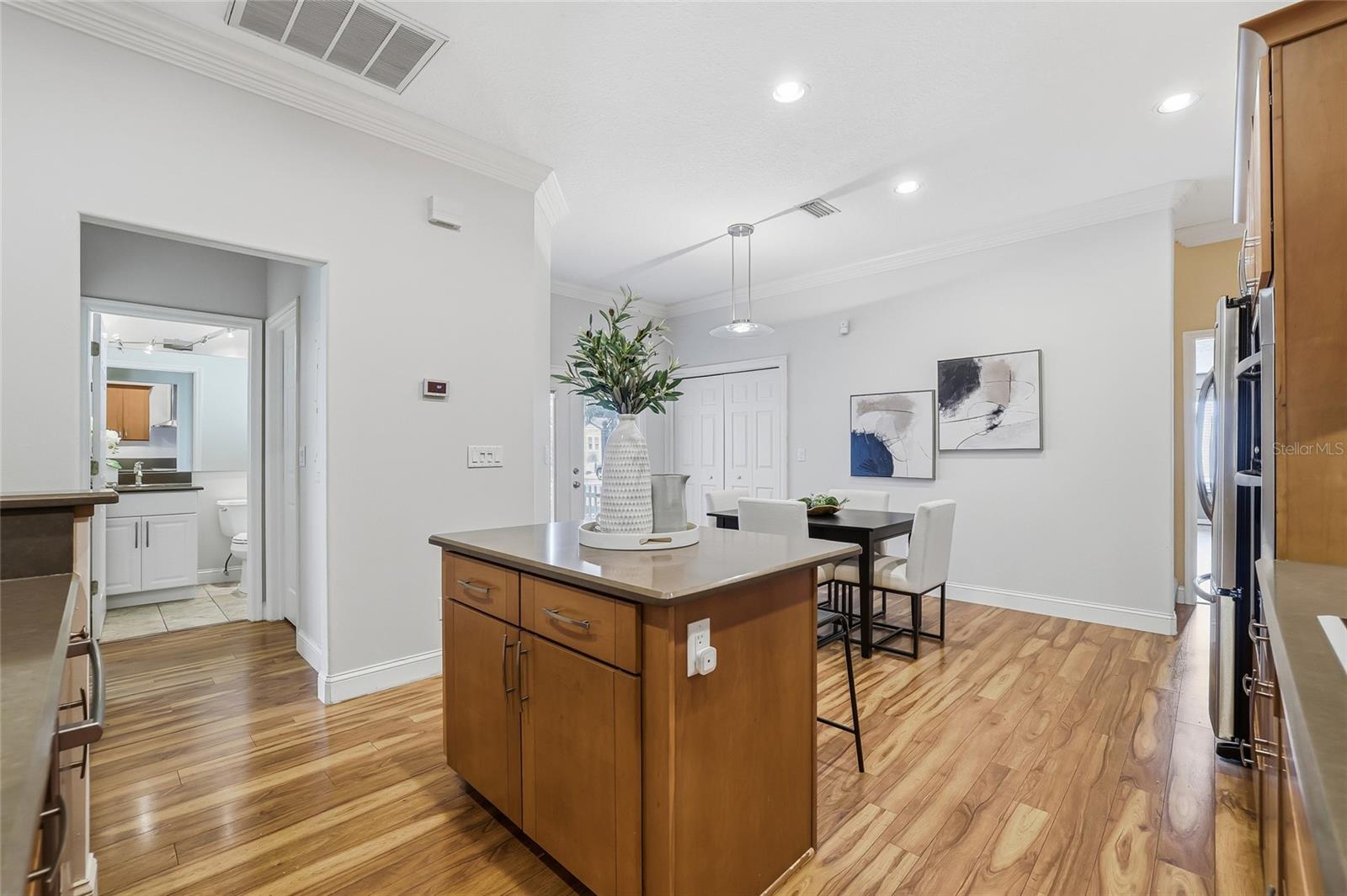 Under contract-accepting backup offers. Located in the heart of downtown Dunedin, this exceptional townhome offers a rare blend of coastal charm, refined updates, and unmatched walkability—just steps from Main Street, the Marina, and the Pinellas Trail. Designed for effortless living. The residence features three bedrooms, two-and-a-half baths, and a versatile bonus room zoned Commercial, ideal for a private office, studio, boutique retail, or a professional business. The light-filled main living area showcases an open layout with high ceilings, crown molding, and a thoughtfully designed kitchen with stainless steel appliances, solid-surface countertops, a center island, and generous cabinetry. French doors open to a private screened porch, creating a seamless indoor-outdoor connection perfect for entertaining or quiet evenings at home. Recent enhancements include updated flooring, fresh interior and exterior paint, a newer HVAC system, and roof replacement, offering both style and peace of mind. The primary suite provides a serene retreat with an en-suite bath and ample closet space. Set within a pet-friendly, low-maintenance community, this residence places you moments from fine dining, boutiques, waterfront parks, festivals, and the vibrant lifestyle that defines Delightful Dunedin—an exceptional opportunity to own a sophisticated home with flexible-use space in one of the area’s most desirable downtown locations!!! Make this your new Home Sweet Home!