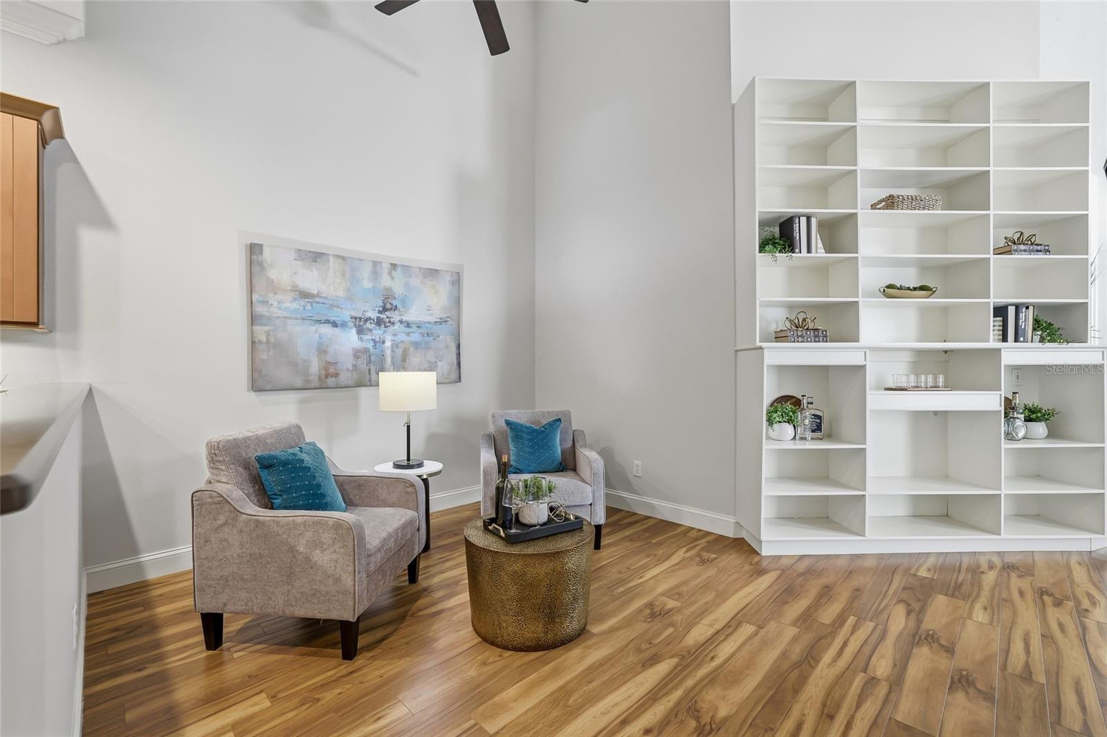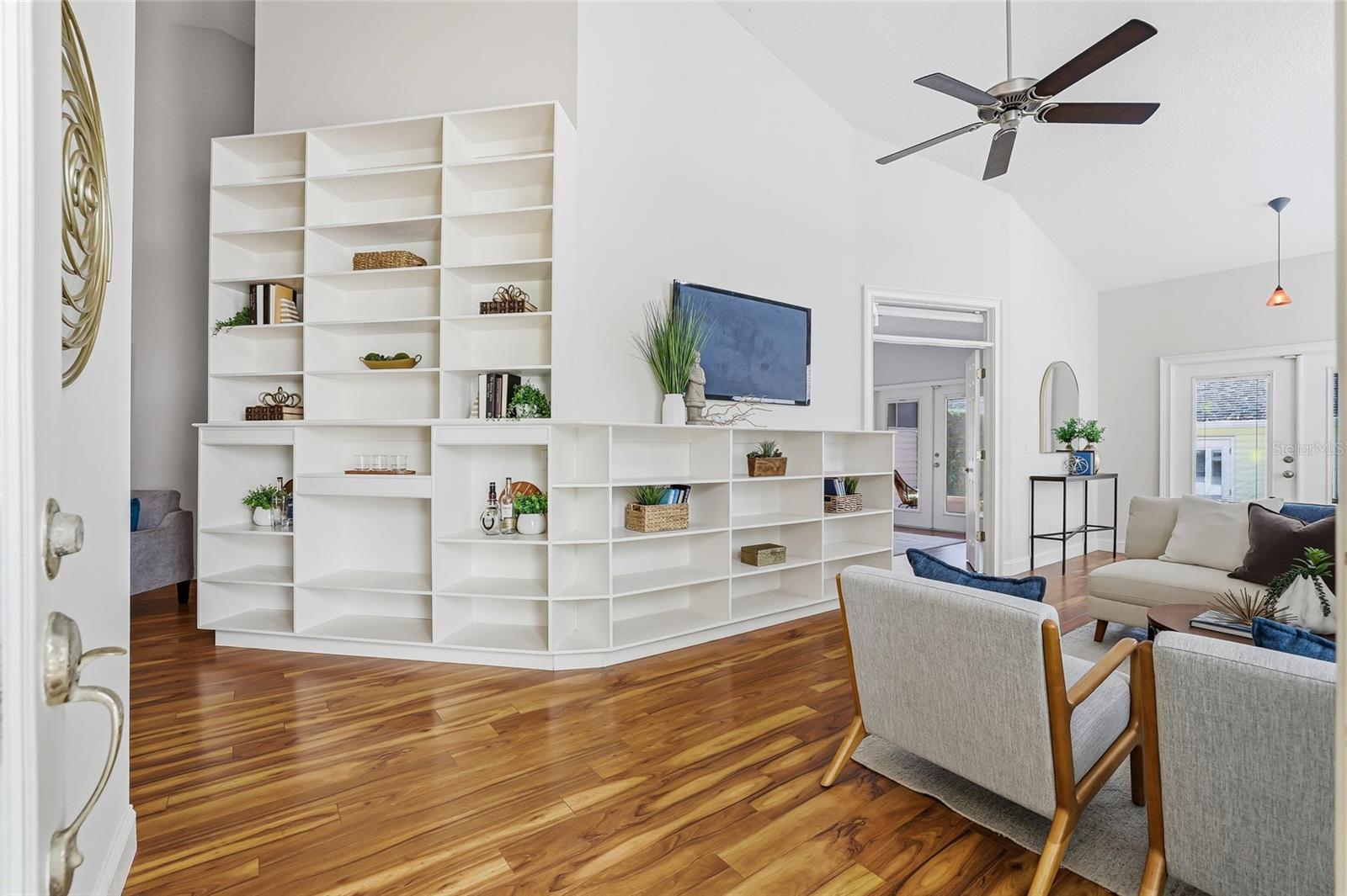 - Built-in Features, Cathedral Ceiling(s), Ceiling Fans(s), Eat-in Kitchen, High Ceilings, Open Floorplan, Primary Bedroom Main Floor, Solid Surface Counters, Solid Wood Cabinets, Vaulted Ceiling(s), Walk-In Closet(s), Window Treatments