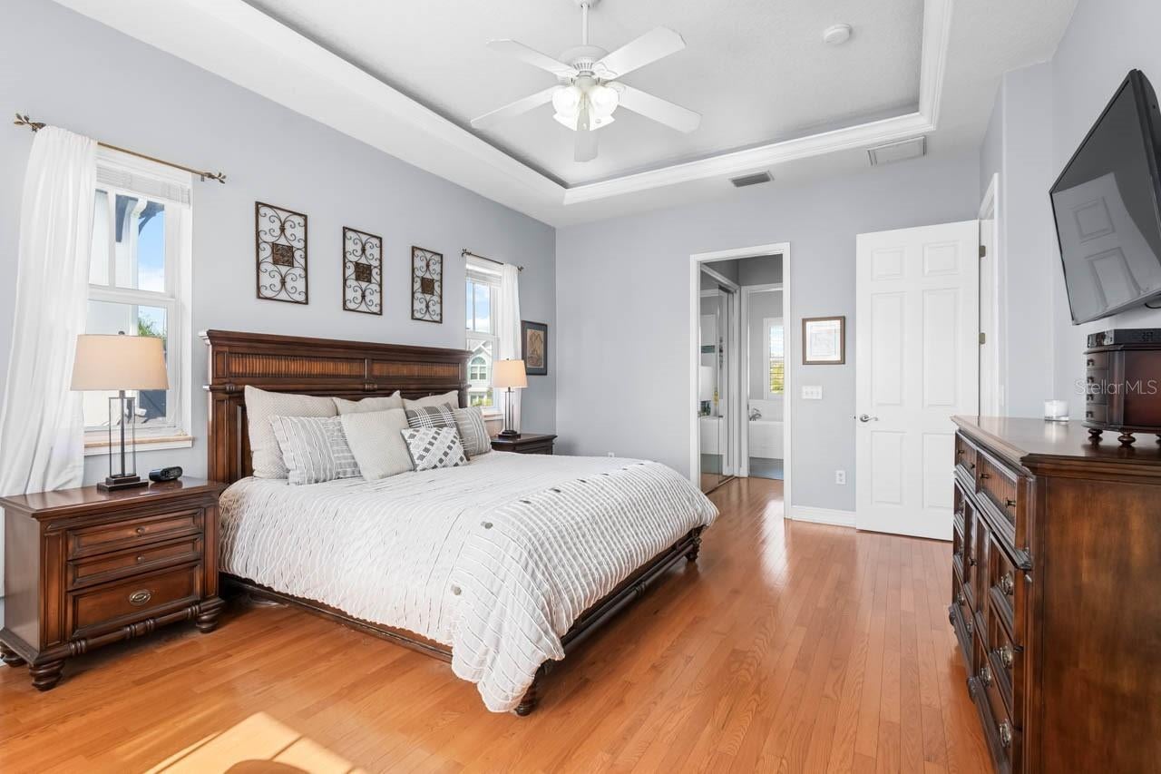 - Ceiling Fans(s), Eat-in Kitchen, High Ceilings, Solid Wood Cabinets, Split Bedroom, Stone Counters, Thermostat, Tray Ceiling(s), Walk-In Closet(s), Window Treatments