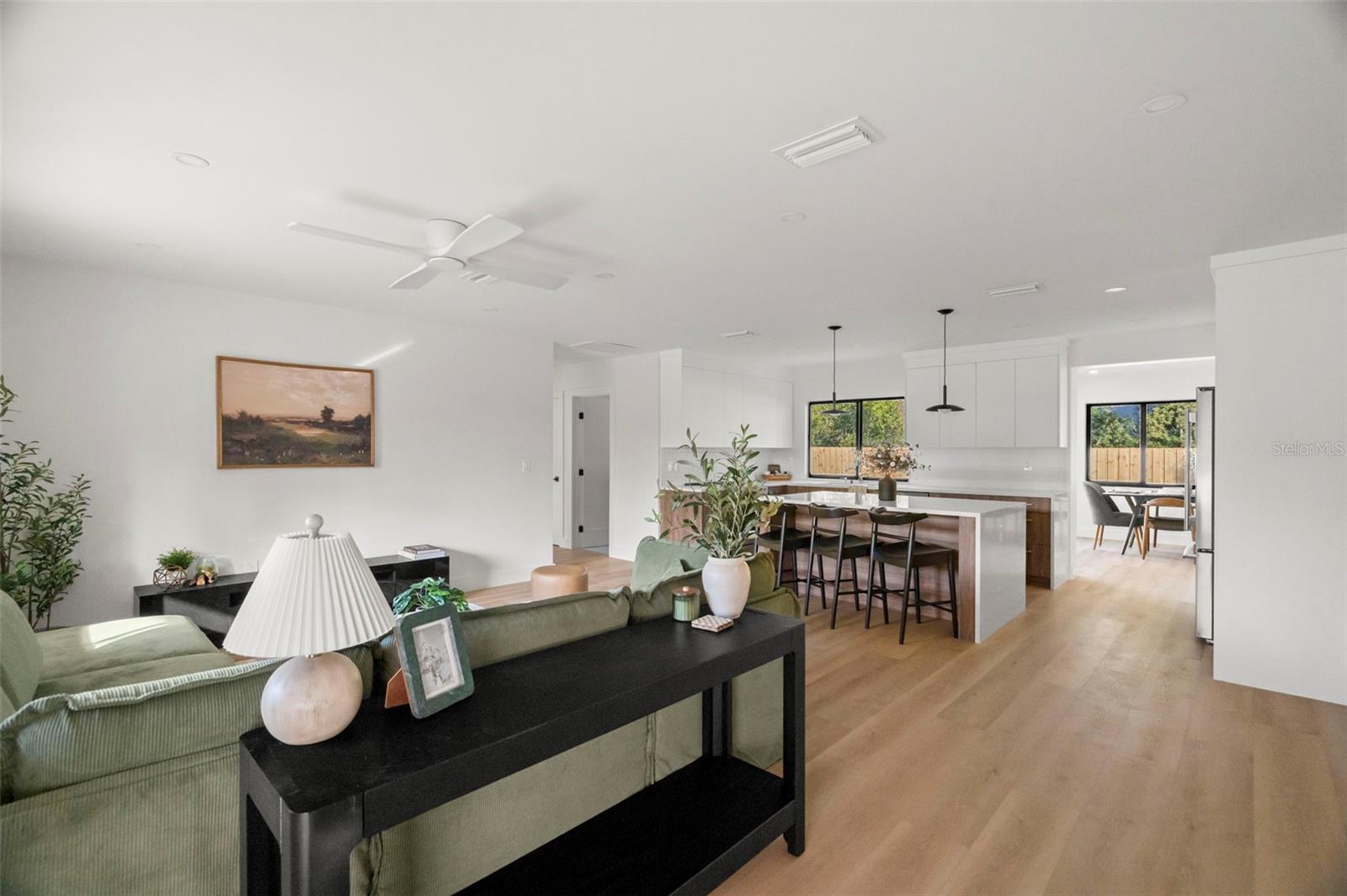 - Ceiling Fans(s), Eat-in Kitchen, Kitchen/Family Room Combo, Open Floorplan, Primary Bedroom Main Floor, Solid Surface Counters, Split Bedroom, Thermostat
