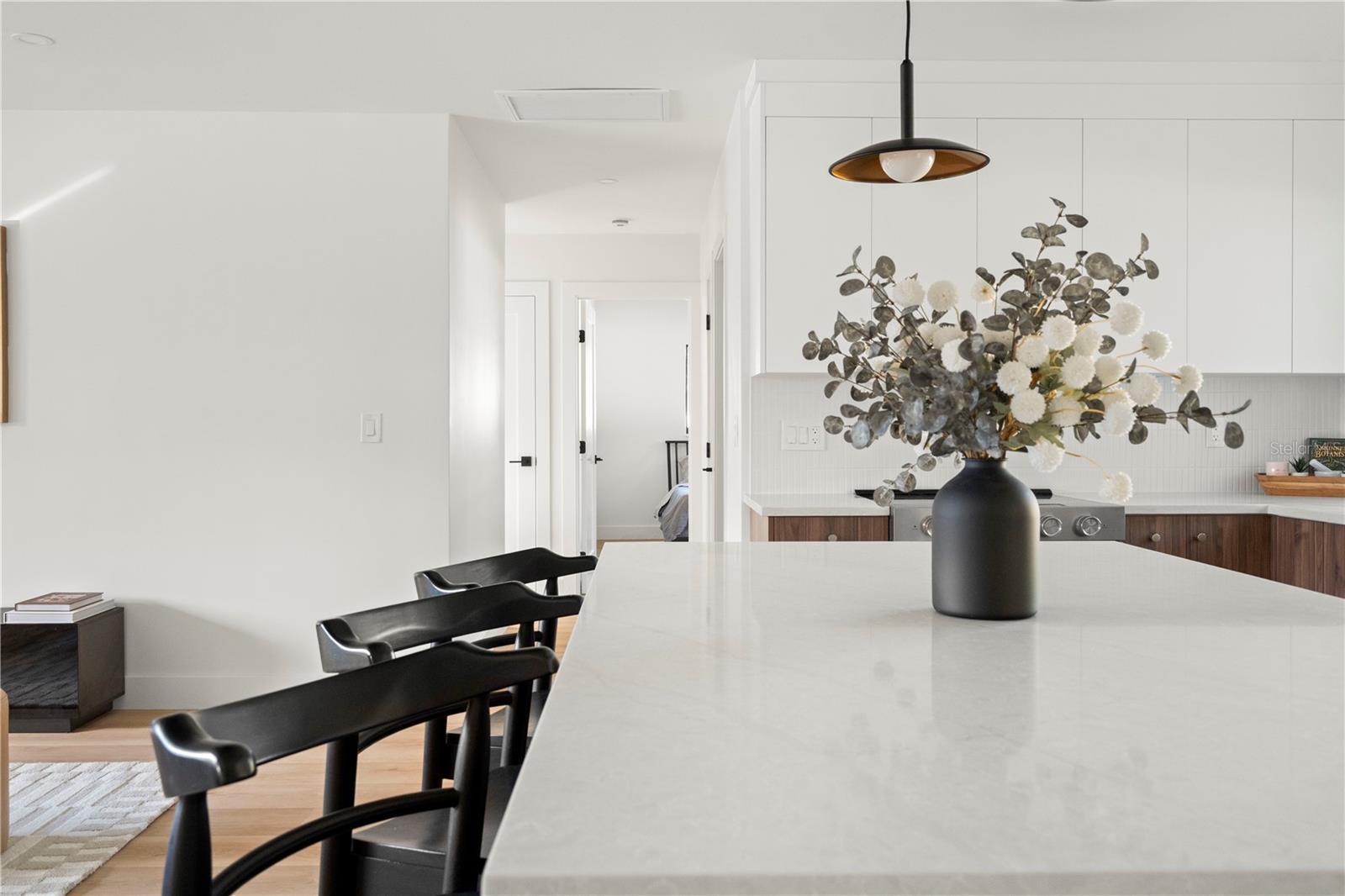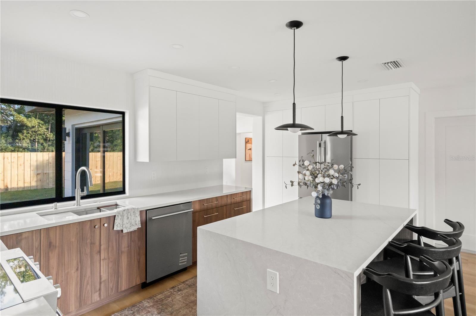Under contract-accepting backup offers. Welcome to this beautifully reimagined home right in the heart of Gulfport’s coveted Marina District. Sitting high and dry, this 3-bedroom, 2-bath home is not in a flood zone and was safe from both 2024 hurricanes. Having been renovated inside and out, it blends timeless mid-century modern design with today’s expectations for comfort, efficiency, and functionality. Just steps from the marina, dog park, and local pickleball courts, the location perfectly captures the Gulfport lifestyle. A quick bike ride brings you to the waterfront downtown area, while any given day is ideal for cycling the Pinellas Trail, enjoying live music and even better beer at Gulfport Brewery, dinner at Pia’s Trattoria, or coffee at Sumitra Espresso Lounge. With all that Gulfport has to offer, downtown St. Petersburg is just eight minutes away and the beaches are less than seven. Originally a 2-bedroom, 2-bath the home has undergone extensive renovations and a 231 square foot addition. This is as close to new construction you'll get in the area while still maintaining the charm and character Gulfport is all about. Clean lines, intentional flow, and abundant natural light define the interior. The open-concept kitchen anchors the home, seamlessly connecting the living and dining spaces for everyday living and entertaining. A built-in pantry surrounds the refrigerator, maximizing storage while maintaining a sleek, integrated look. Top-of-the-line KitchenAid appliances, level-8 quartz countertops, and two-tone cabinetry create a warm, modern palette that feels both elevated and inviting. The dining area comfortably accommodates an 80” table and six chairs, while expansive aluminum impact-rated windows give you maximum energy efficiency and peace of mind from any storm. From the kitchen and dining room, impact sliders open to a 30-foot deck overlooking a spacious backyard that is ideal for indoor-outdoor living and future pool potential. To scale backyard renderings have already been completed, making it easy to bring the vision to life. Out front, a covered porch with a tongue-and-groove cedar ceiling adds a welcoming architectural touch to the entry. These high-end details carry throughout including push-to-open cabinetry, fluted glass accents, and level-5 drywall. The primary bedroom is a true retreat, featuring custom built-in closets with automatic lighting, and a spa-like en-suite bath with dual vanities, a zero-entry shower with dual shower heads and wands, and an LED-lit niche. The third bedroom doubles beautifully as a home office with backyard views. The laundry room is fully built-out and includes generous counter space, a sink, and new Samsung washer and dryer. Beyond the finishes, the systems have been comprehensively updated: full re-wire and re-plumb, new electrical panel, brand-new architectural shingle roof plus TPO flat roof, a 2019 water heater with new conduit connections, new blown-in R-38 attic insulation, and all new air ducts, returns, and supplies. Outside, new sod, 40+ podocarpus hedges, fresh fencing, and thoughtfully designed plant beds provide privacy and curb appeal that perfectly complement the home’s modern character. This is a rare opportunity to own a truly turn-key, design-forward home in one of Gulfport’s most desirable neighborhoods—where lifestyle, location, craftsmanship, and peace of mind come together effortlessly. Opportunities like this don’t come along often in Gulfport. Schedule a tour today!
