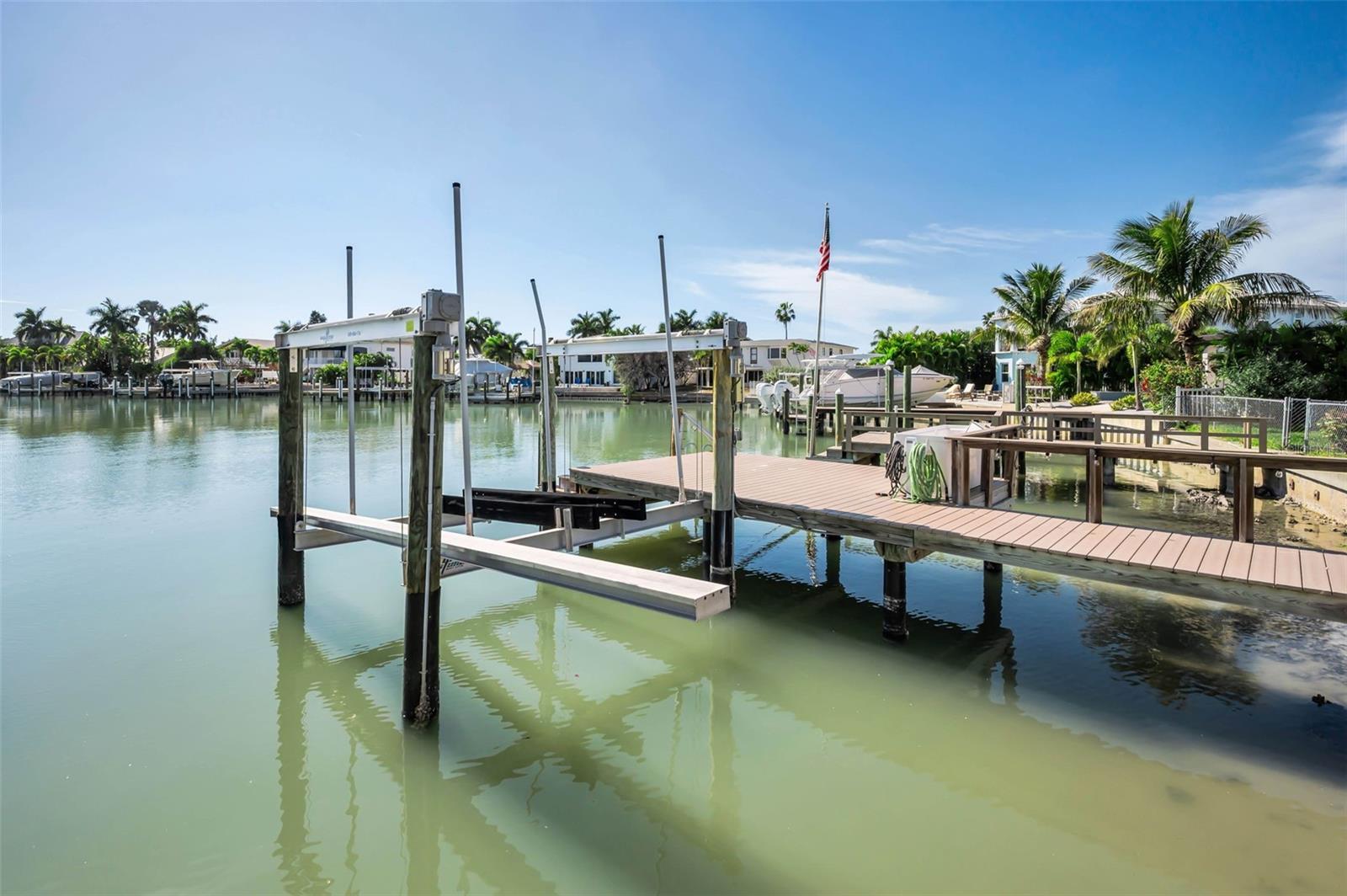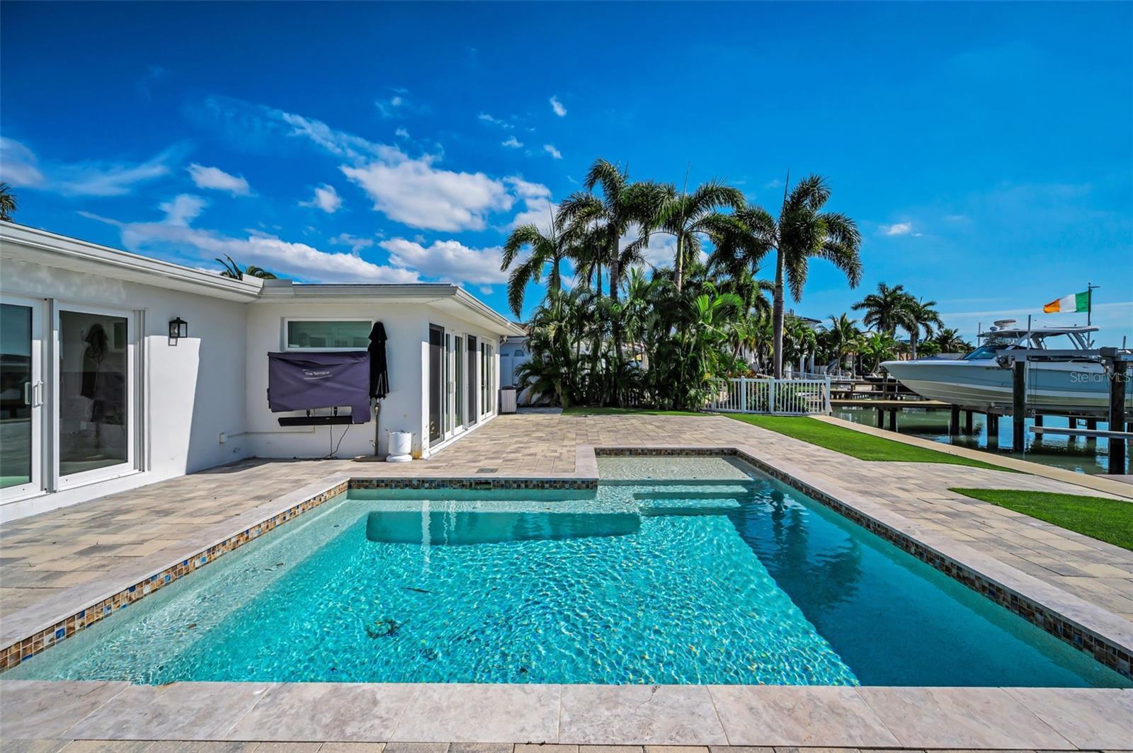 Under contract-accepting backup offers. PARADISE ISLAND IN TREASURE ISLAND! Amazing opportunity here to either renovate or build new. Gorgeous landscaped lot with 97ft of road frontage by 135ft deep and 50ft on the water. Floor plan consists of two bedrooms, two baths, 1,966sf. of living area, inside laundry, and a two car garage. Major renovations occurred in 2017 with a beautiful new inground heated pool, stylish pavers in front and rear, newer seawall, newer dock and lift, and all new impact windows and sliders. The entire home including kitchen, bathrooms, flooring, lighting, window treatments and more was completely renovated prior to Hurricane Helene flooding the home. The home was professionally remediated and is ready for the next project. The newer pool has a large sun shelf, seating around the perimeter, and pavers with travertine coping. New pool pump installed after the storm and pool heater is operational. Beautiful private backyard with easy to maintain artificial turf. Exceptional overall location and only minutes to the white sandy beaches of the Gulf of Mexico, shopping, restaurants, a Golf and tennis club and more! Vibrant downtown St. Petersburg only 20 minutes away. For the boating enthusiast, easy access within minutes to two major passes leading to the Gulf of Mexico! Exquisite footprint here with a solid foundation to take this to the next level to make your perfect dream home!