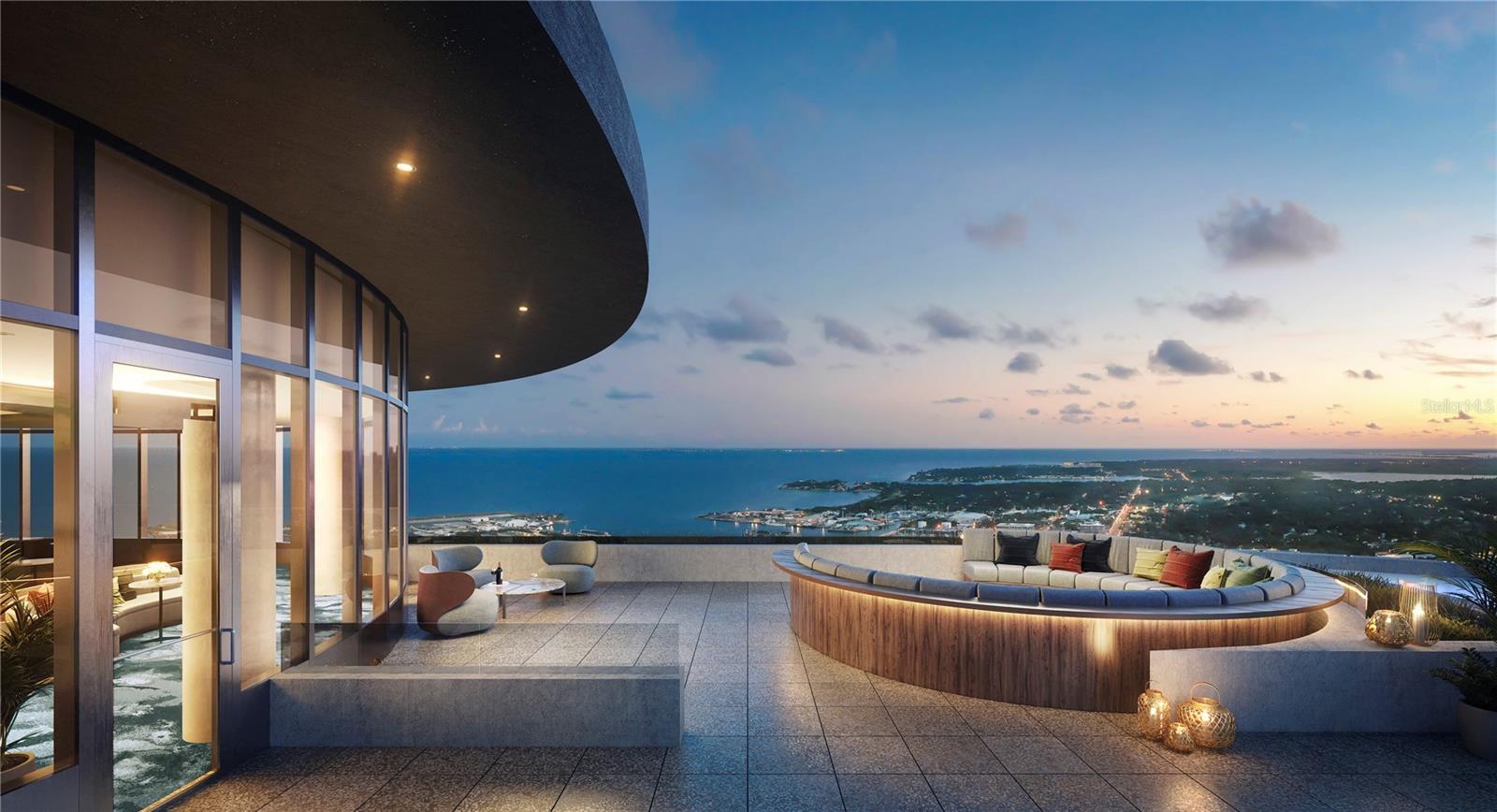 An iconic design from award-winning firm Arquitectonica with interiors and amenities by New York based Celano Design Studio. 400 Central offers an elevated approach to luxury city living, unlike anything seen before in St. Petersburg. Enjoy 10’ ceilings with walls of glass allowing for an abundance of natural light in this well-designed 3-bedroom 3.5-bath residence. The extensive terrace runs the entire length of the residence, providing outdoor living and panoramic views from the living/dining room and every bedroom. The gourmet kitchen features Italian cabinetry with undercabinet lighting, quartz countertops in Desert Silver, and stainless-steel JennAir appliances, including a 36" gas cooktop, wall oven/microwave, dishwasher, and a 36" refrigerator with bottom freezer. Other highlights include generous owners’ suite bathrooms with enclosed glass showers, multiple shower heads with bench seats, Grohe plumbing fixtures, and a Calacatta Gold pattern accent wall. Whirlpool washer/dryer. Along with Prestige Dolomiti porcelain tile. On the 7th level, an amenity deck with over 36,000 square feet of indoor and outdoor opportunities for health and wellness plus a theater lounge and private dining room. Enjoy the resort-style heated pool or the state-of-the-art fitness center. Lounge in the zen garden or in a poolside cabana. On the 45th floor, the Sky Lounge and Observatory showcase an unobstructed 360-degree view of the city, Tampa Bay, and the Gulf of Mexico. Residences at 400 Central provides the convenience of the maintenance-free, lock-and-leave, condominium lifestyle in the heart of St. Petersburg.
